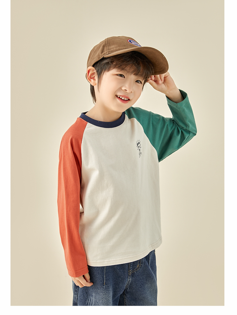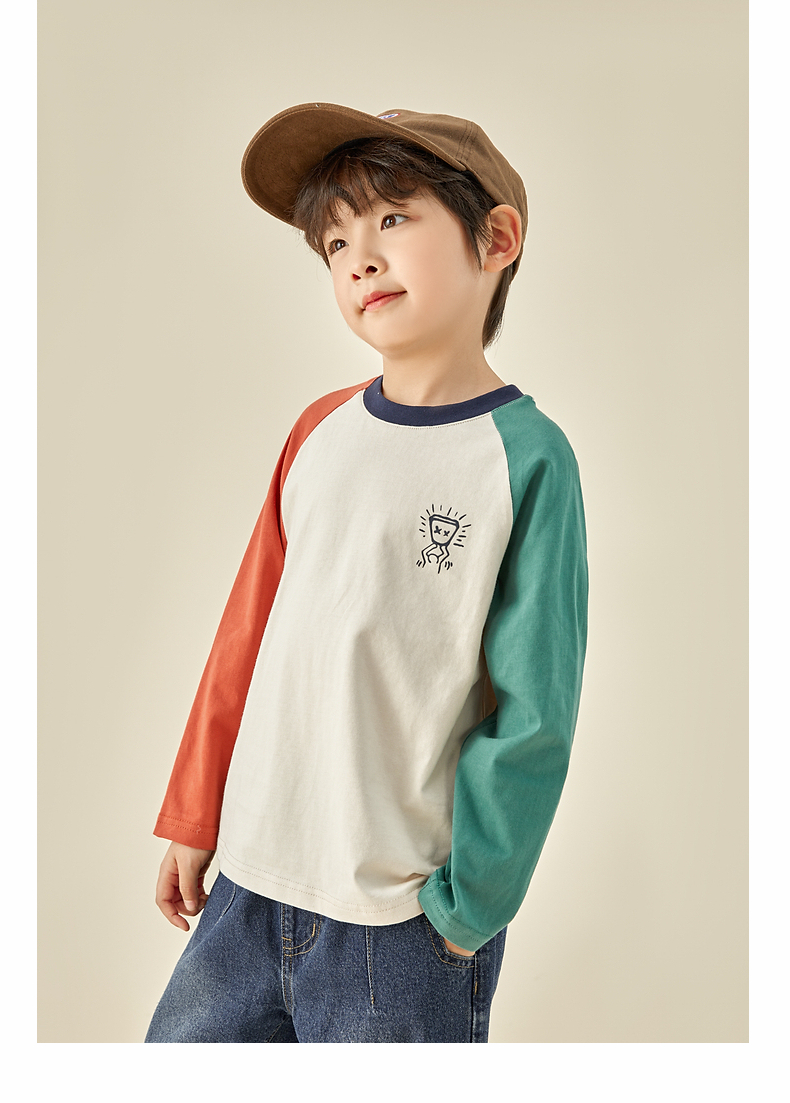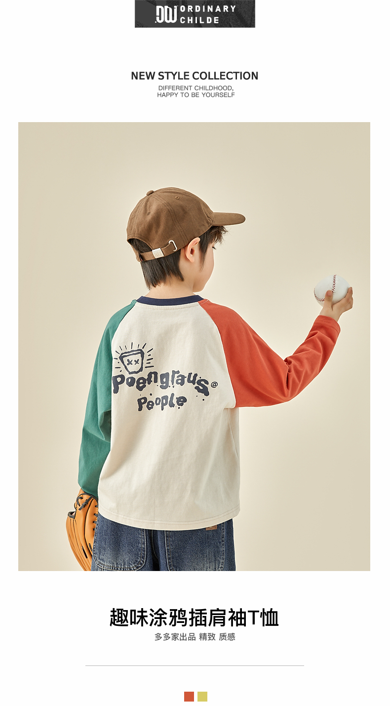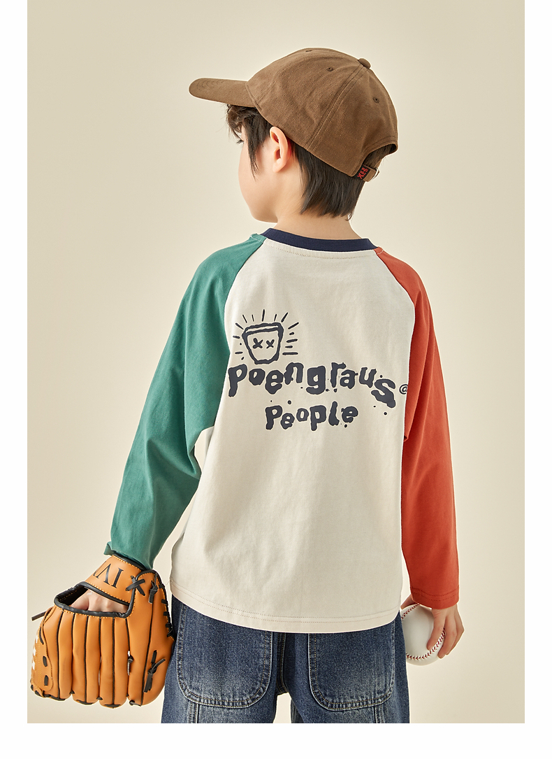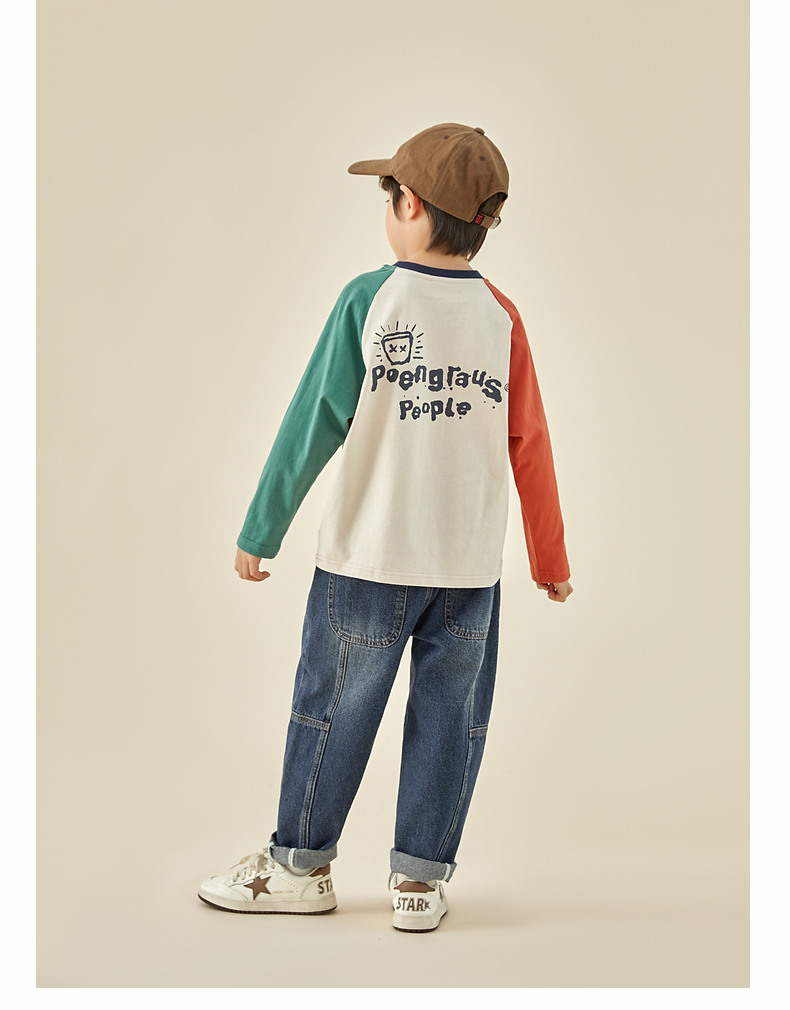 【团购价29.9元】多多家儿童长袖T恤2024春秋新款撞色图案插肩袖上衣儿童中大童潮9098