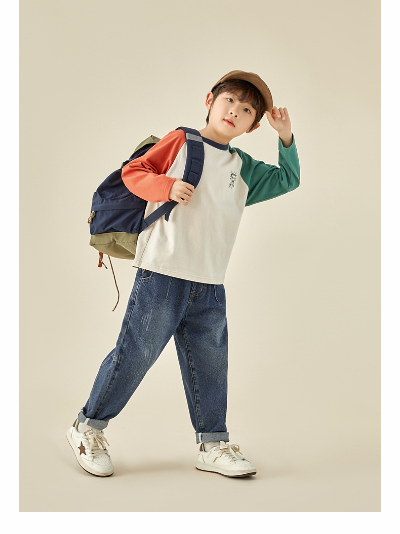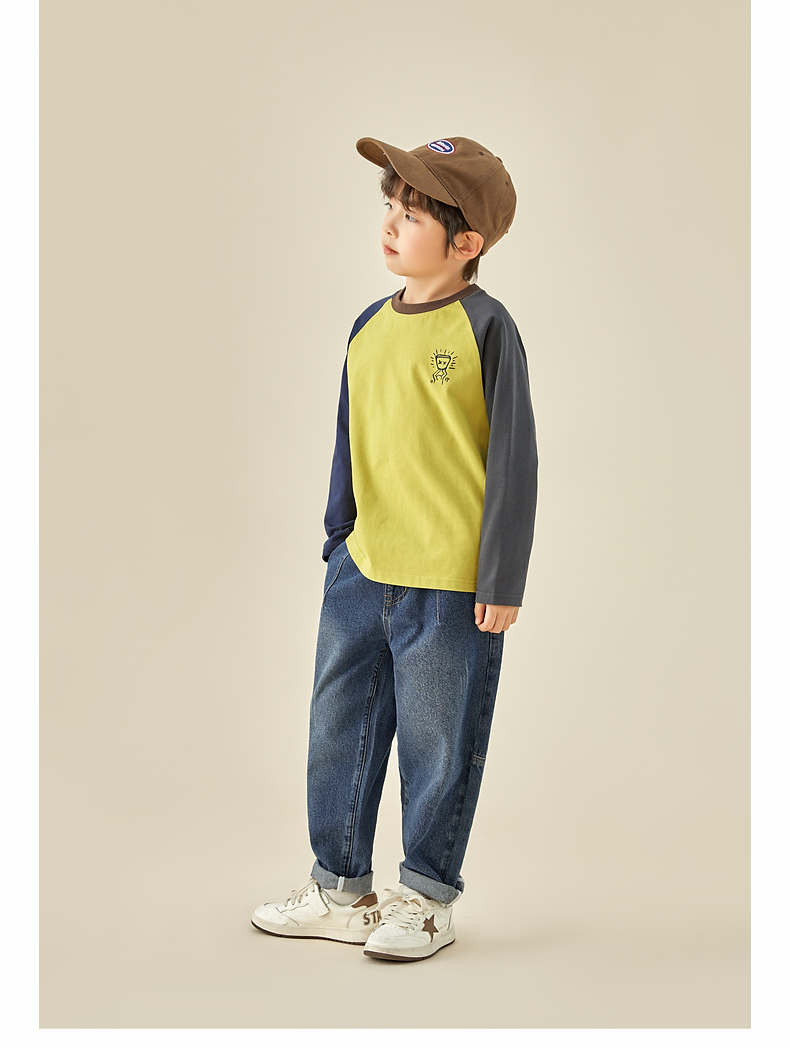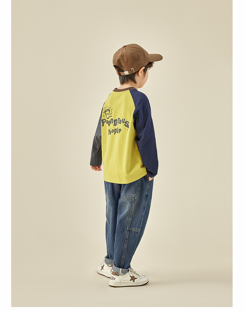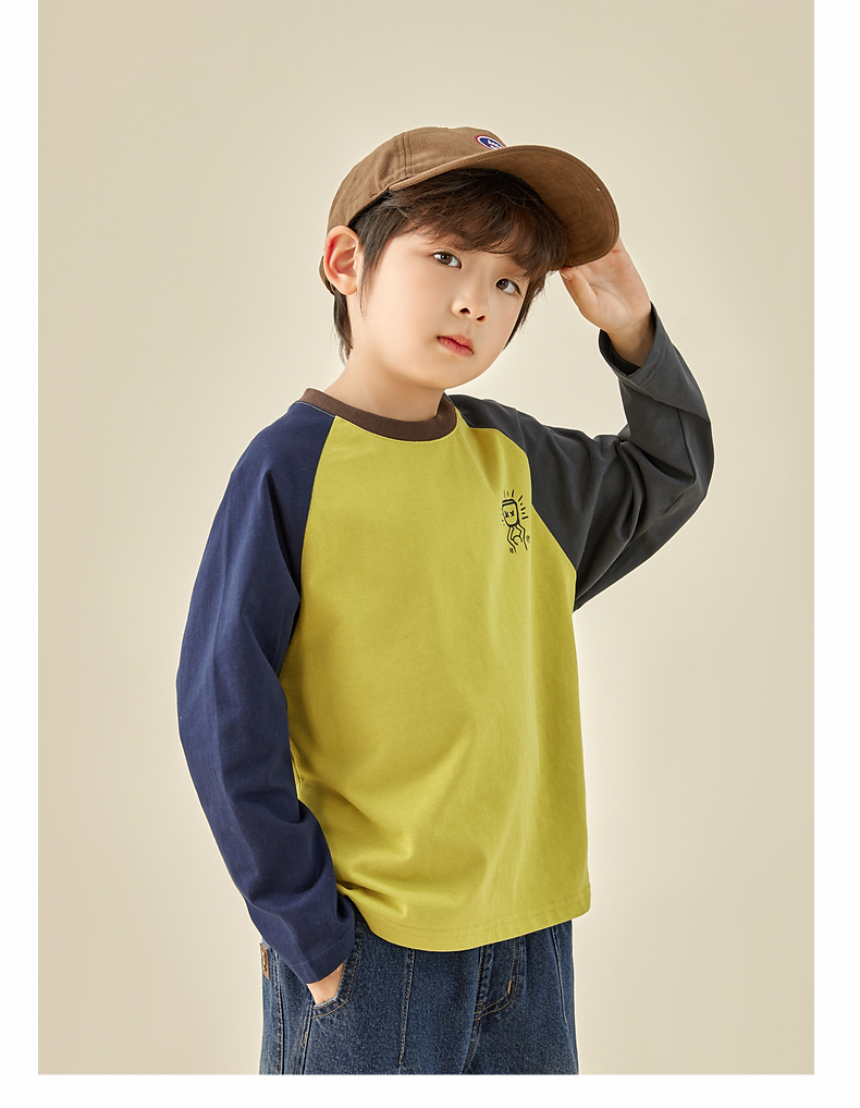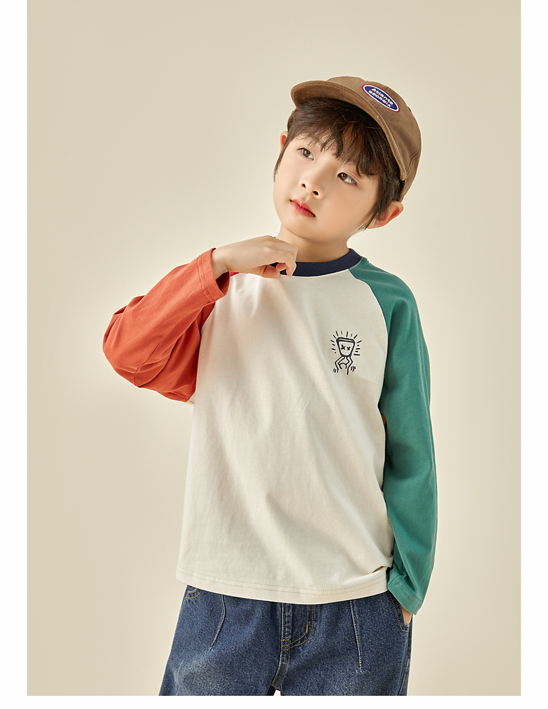 【团购价29.9元】多多家儿童长袖T恤2024春秋新款撞色图案插肩袖上衣儿童中大童潮9098