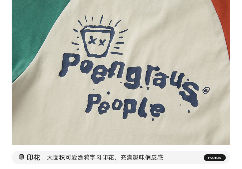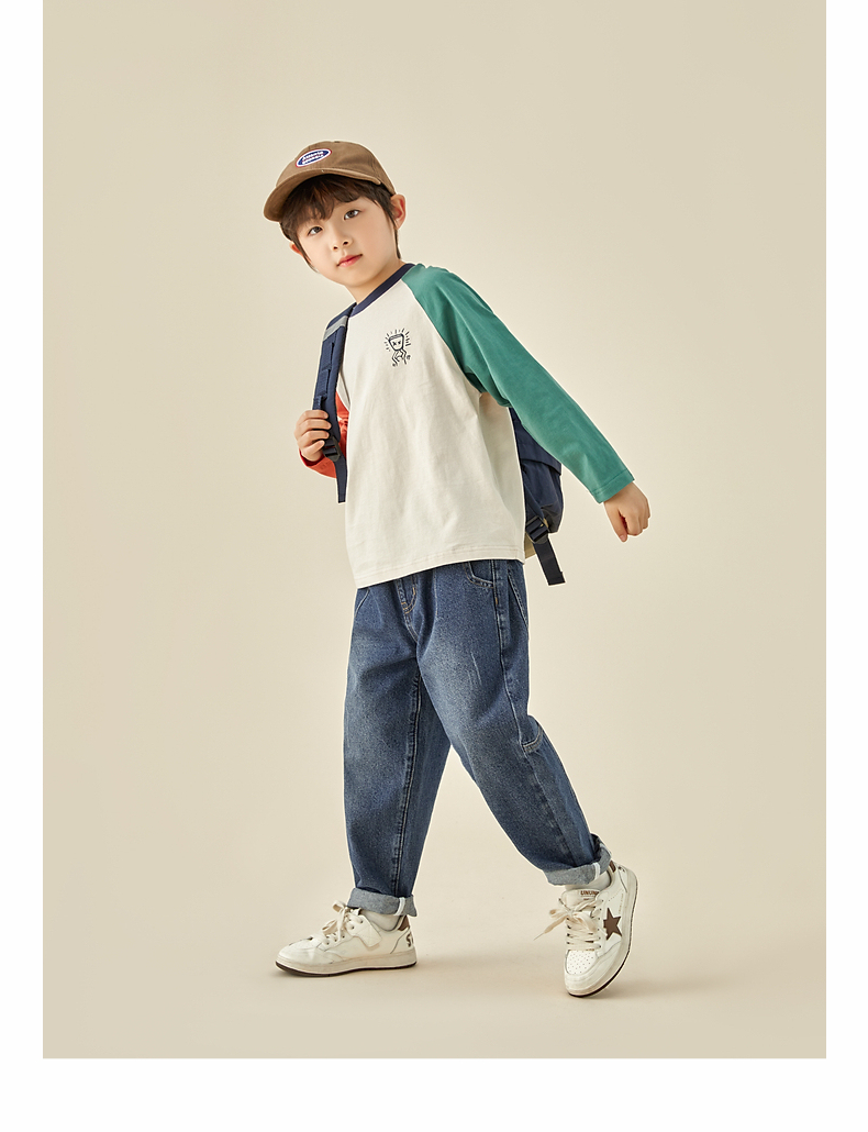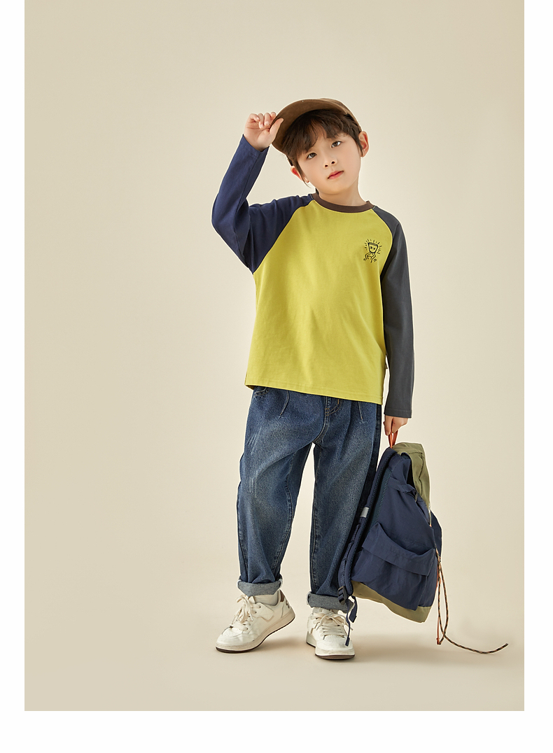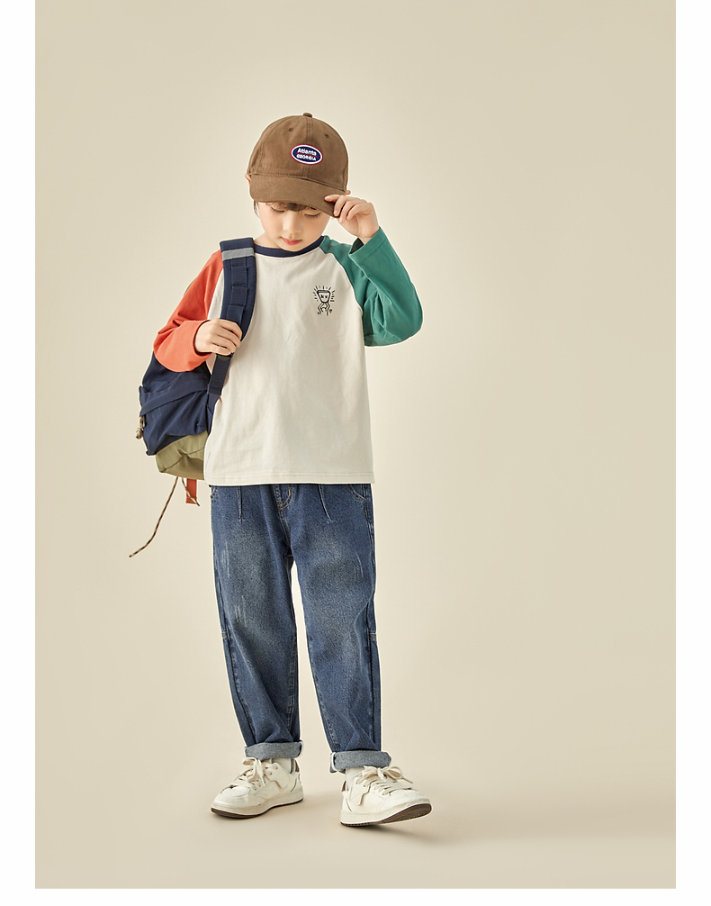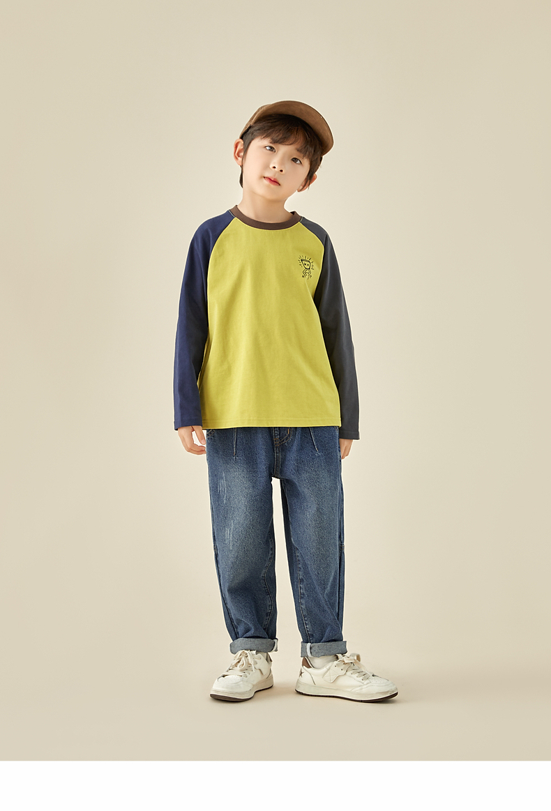 【团购价29.9元】多多家儿童长袖T恤2024春秋新款撞色图案插肩袖上衣儿童中大童潮9098