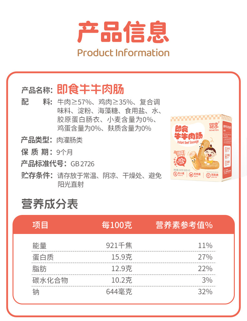 婴享即食肉肠儿童早餐零食火腿烤肠热狗35g*6