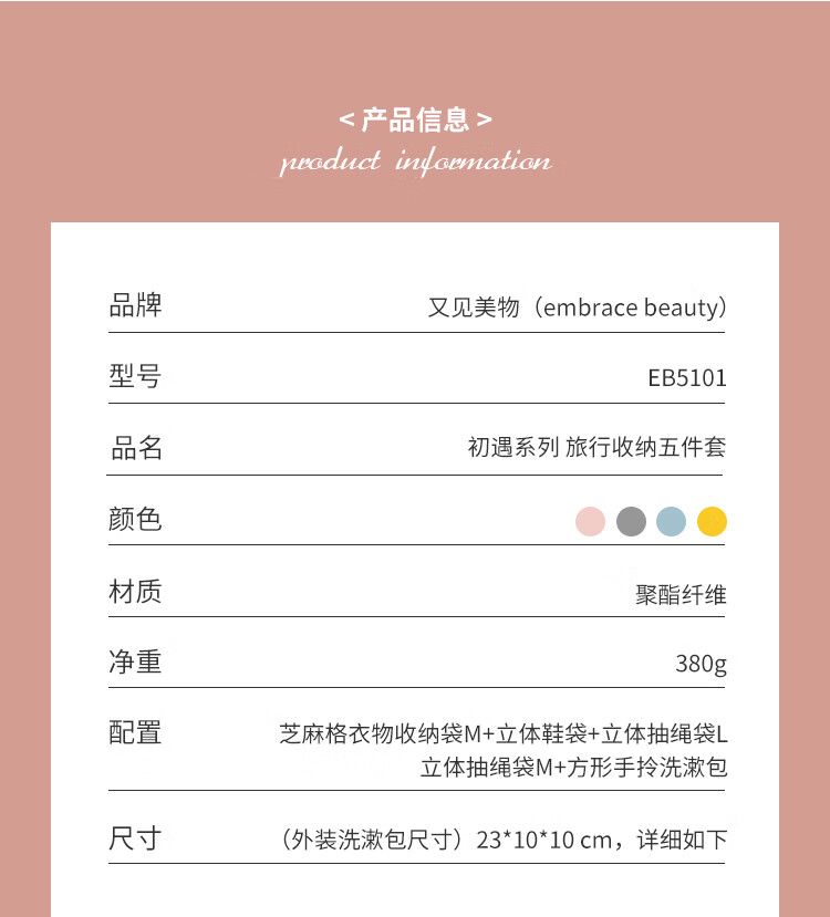 又见美物 EB5101 初遇系列旅行收纳五件套