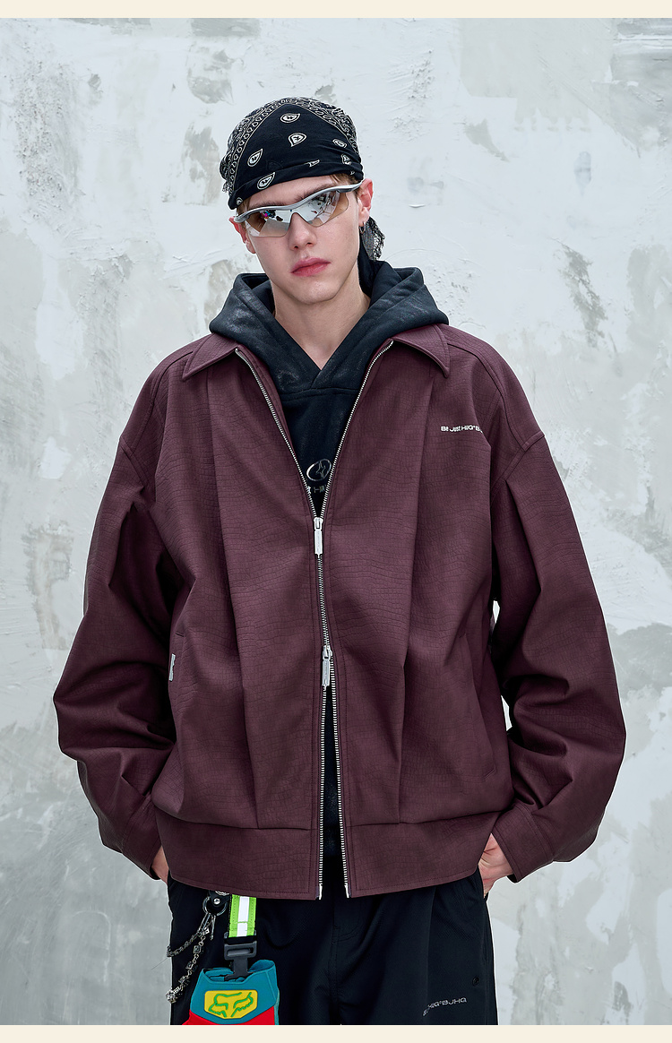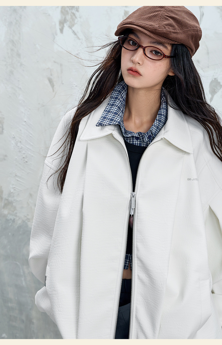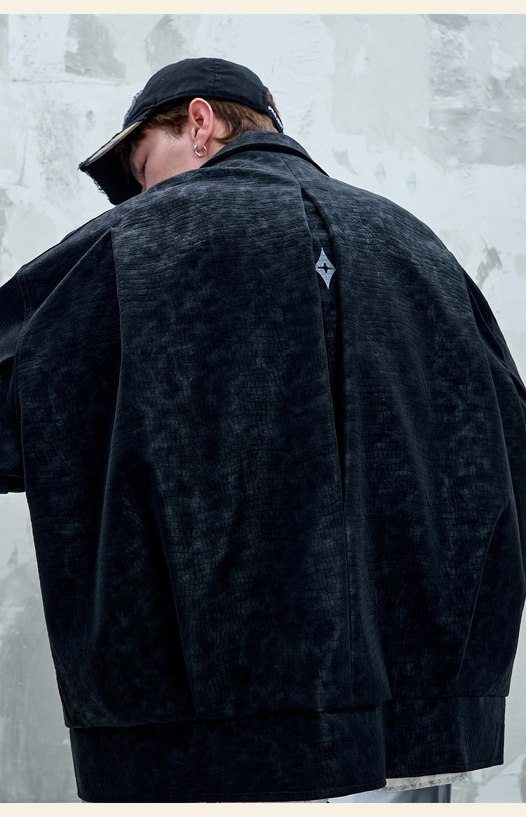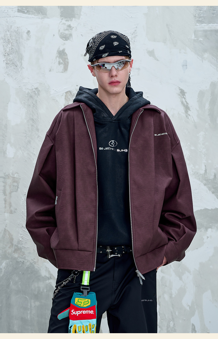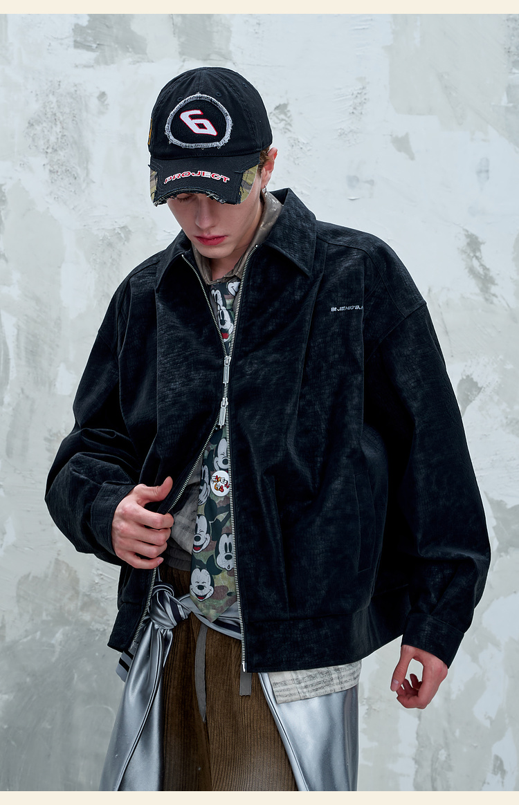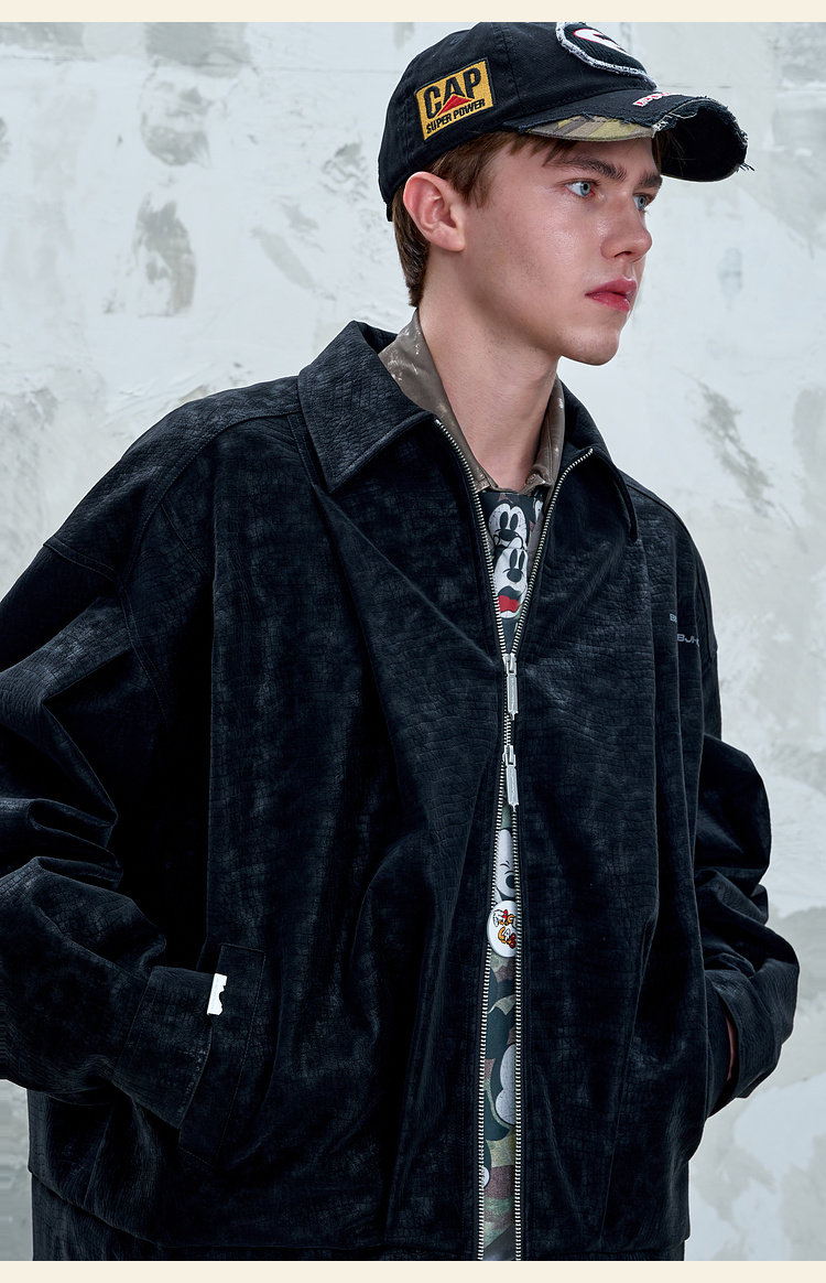 BJHG不计后果鳄鱼纹PU皮休闲夹克外套男款秋美式复古设计感皮衣女