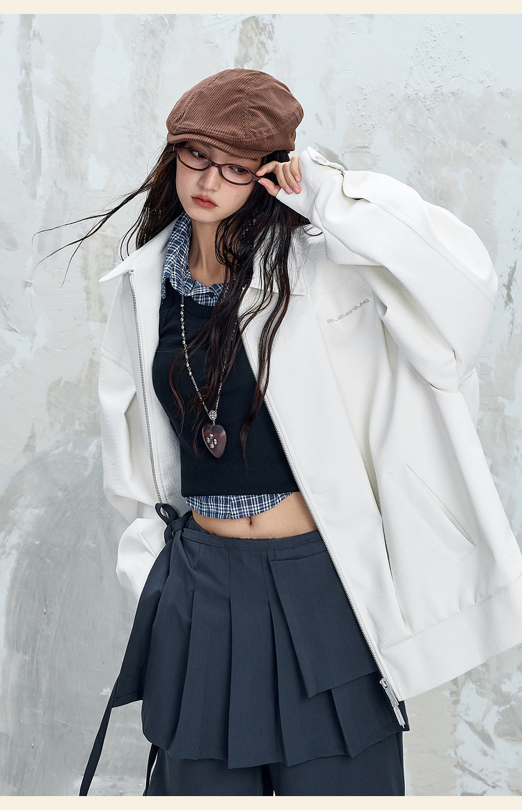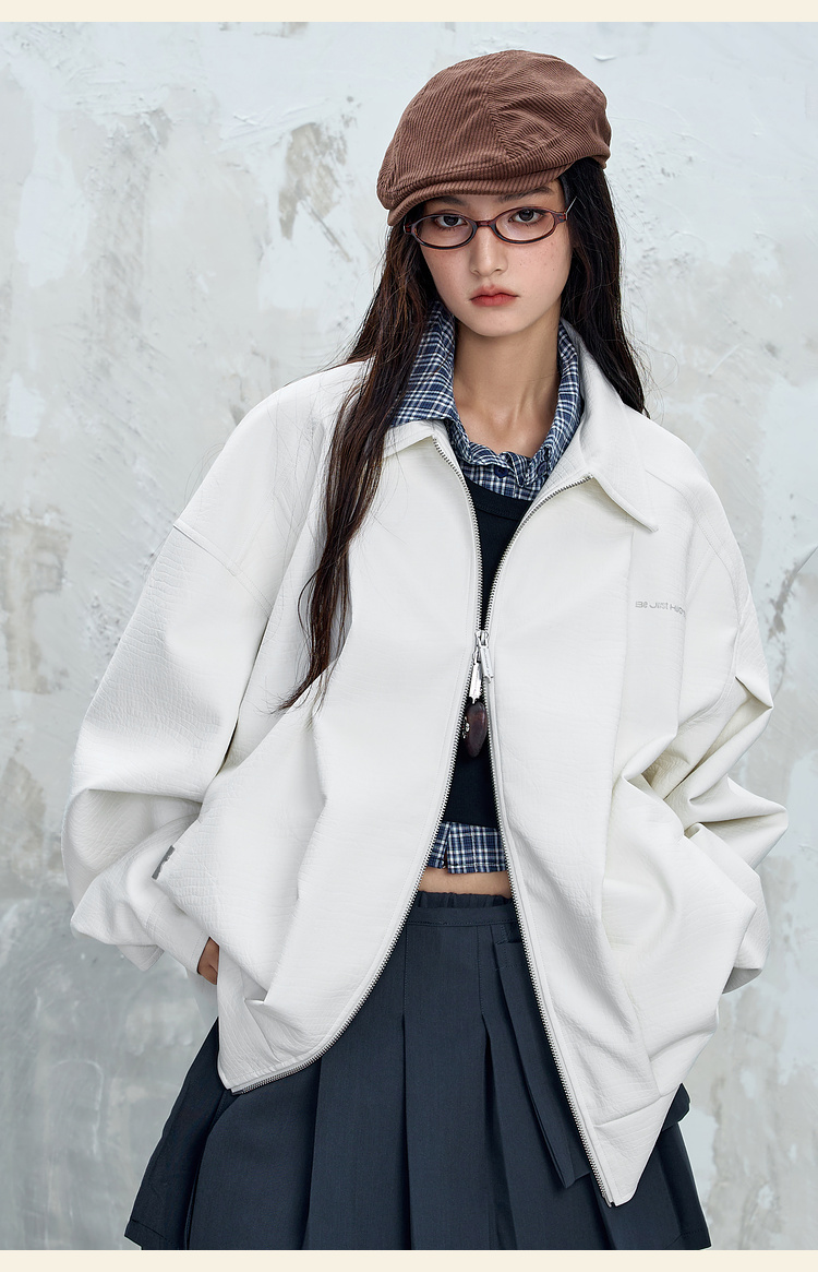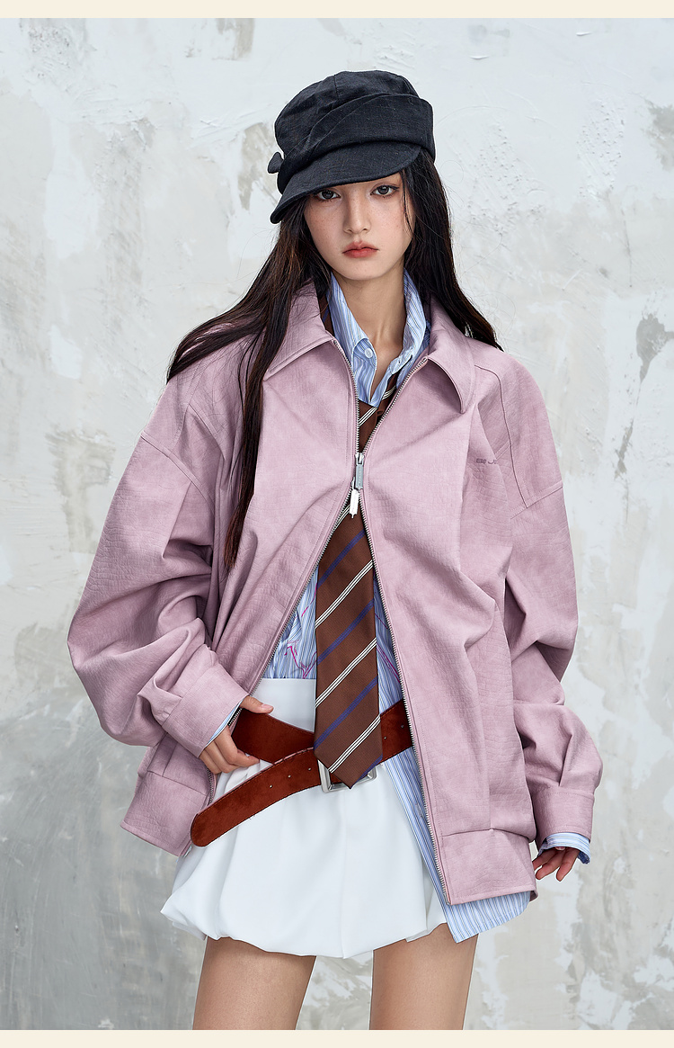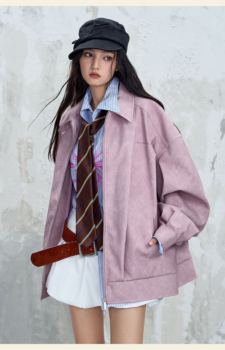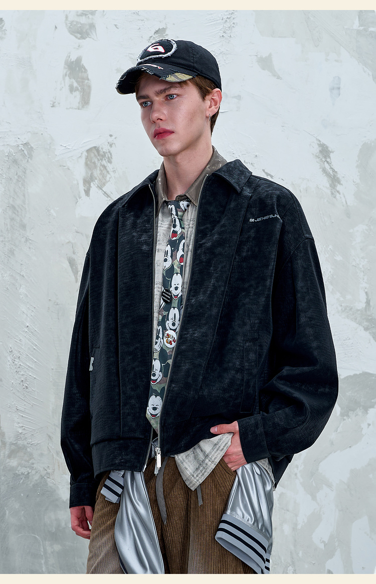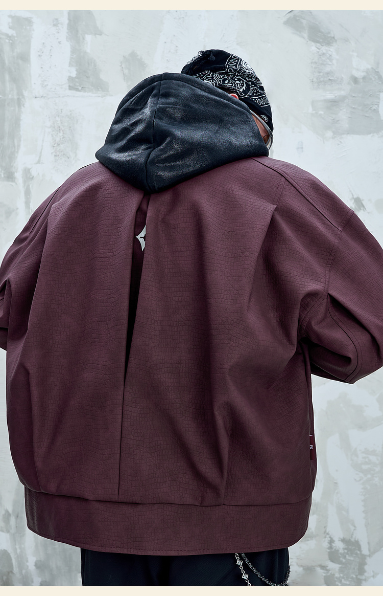 BJHG不计后果鳄鱼纹PU皮休闲夹克外套男款秋美式复古设计感皮衣女