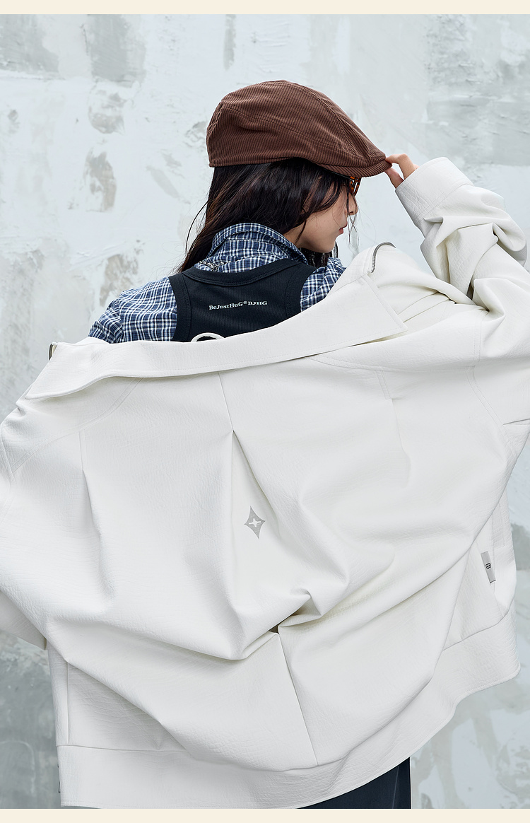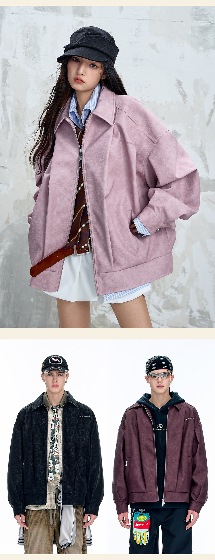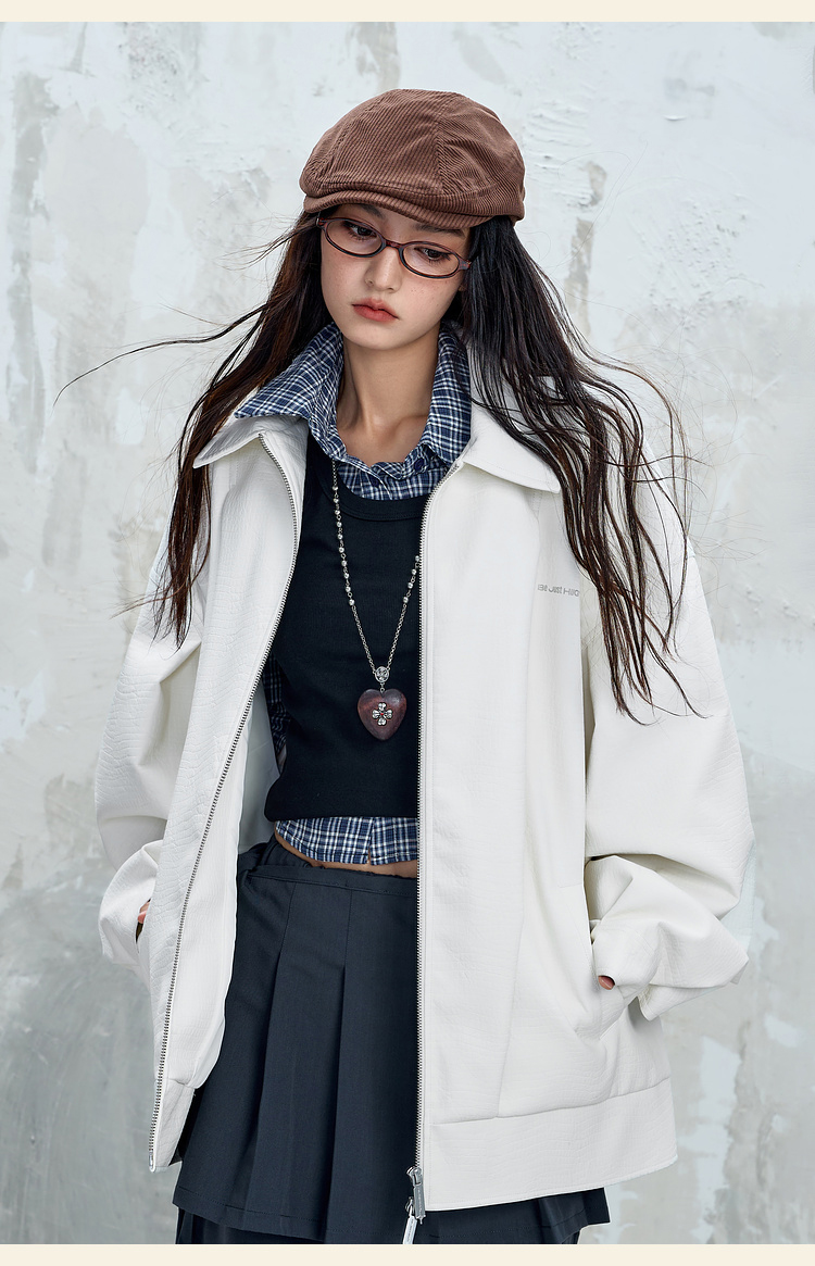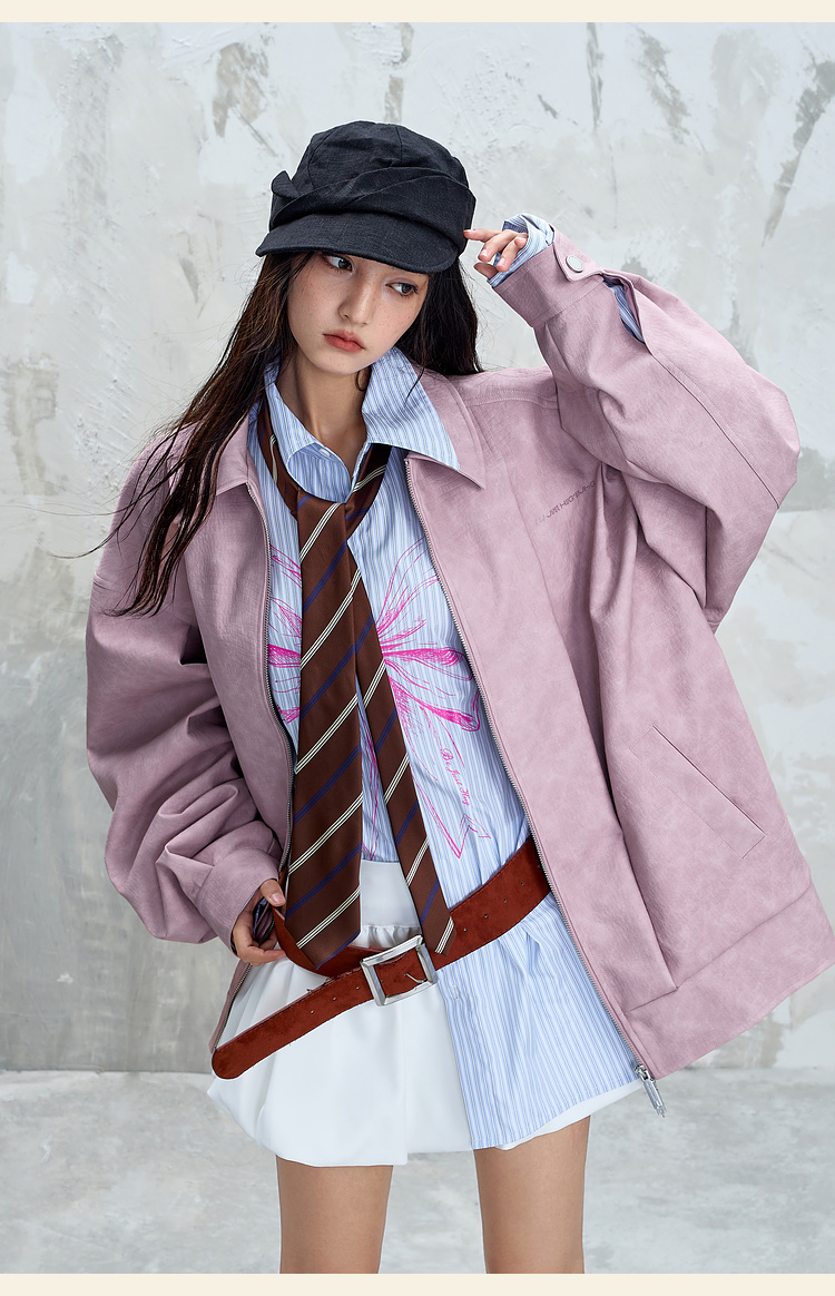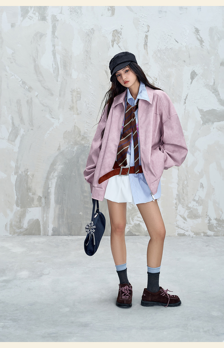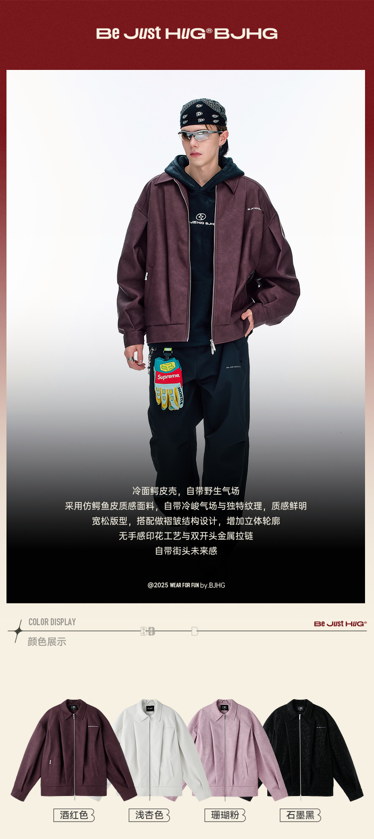 BJHG不计后果鳄鱼纹PU皮休闲夹克外套男款秋美式复古设计感皮衣女