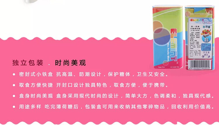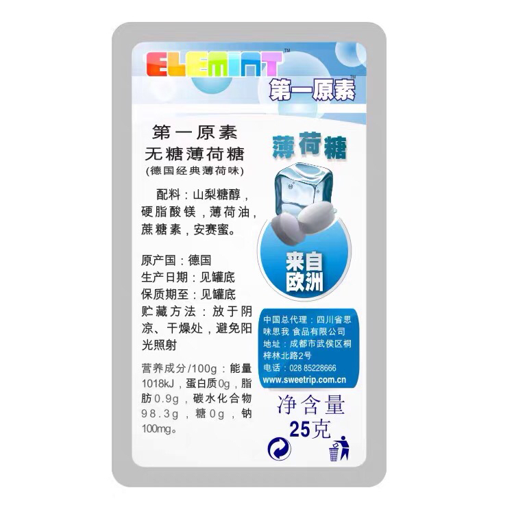 德国进口第一原素无糖薄荷糖什锦水果味25g清新口气糖果-会员6折