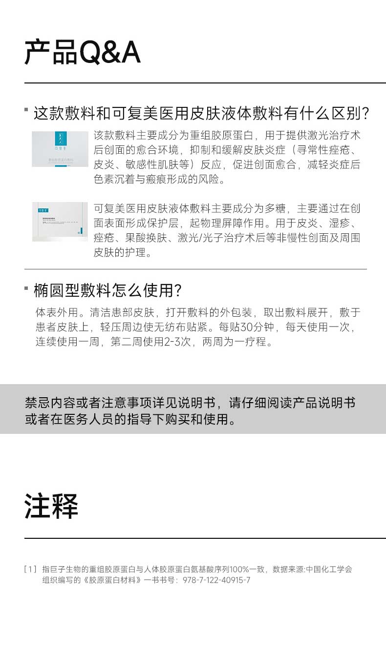 【可复美重组胶原蛋白敷料】椭圆型5片/盒