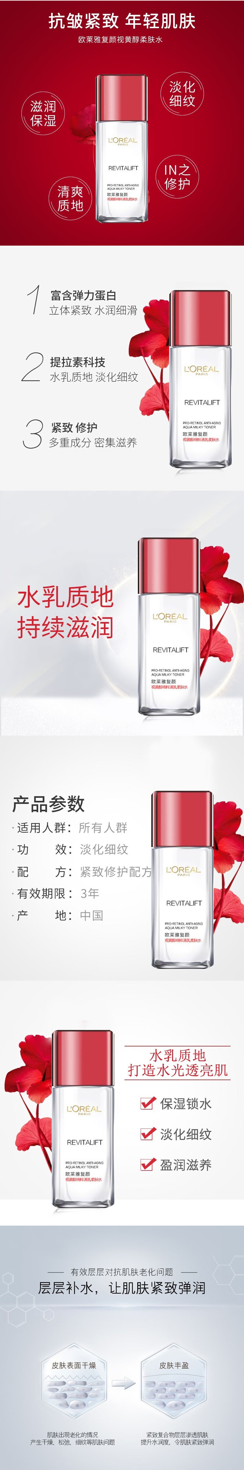 【49元会员福利】欧莱雅复颜视黄醇精粹清乳柔肤水65ml(中小样)