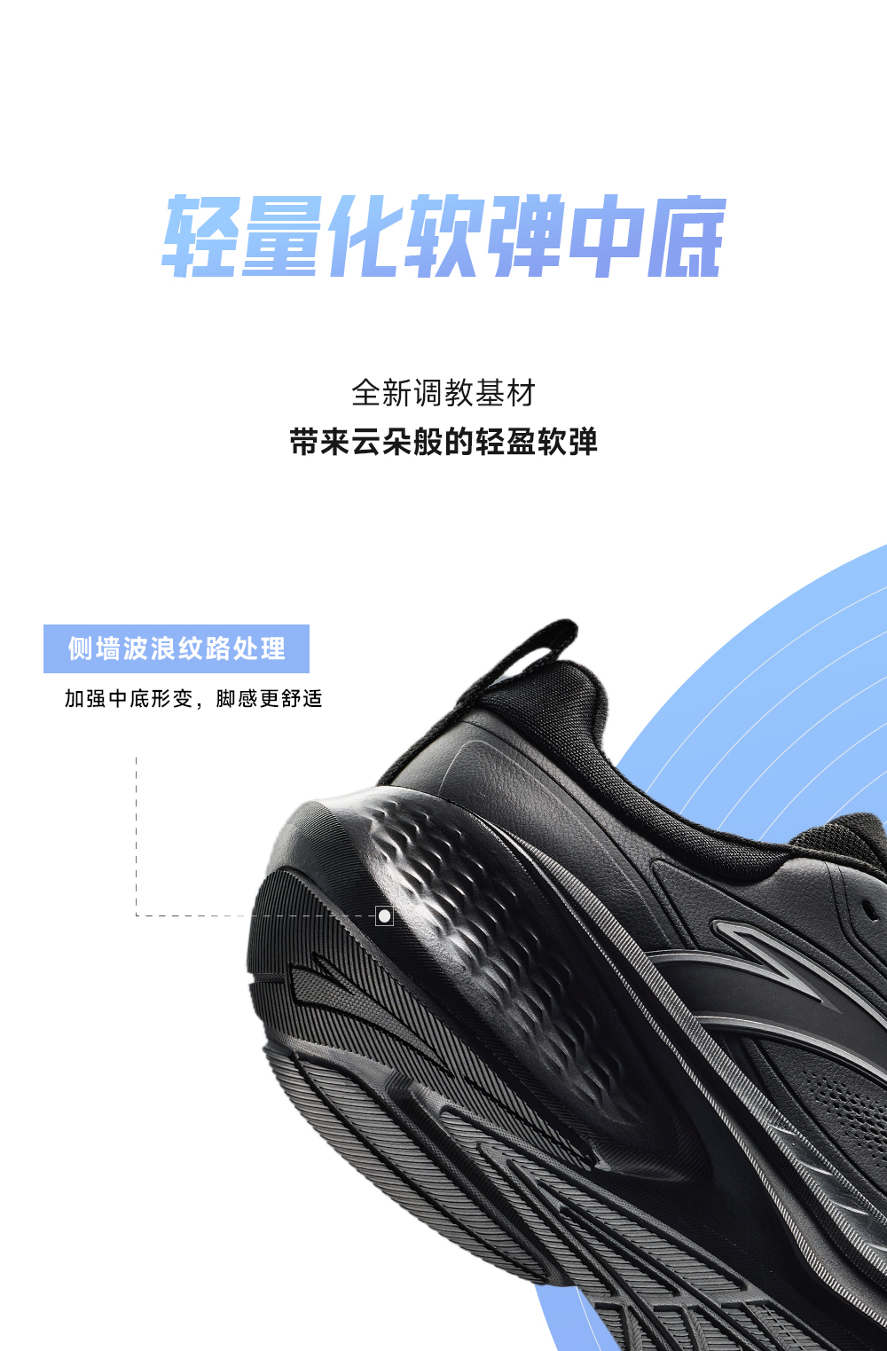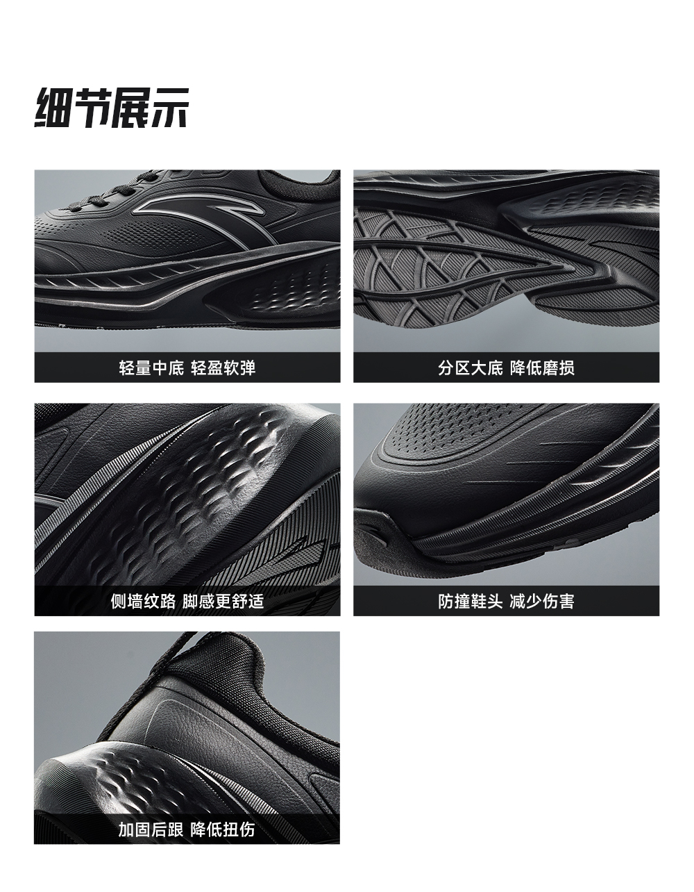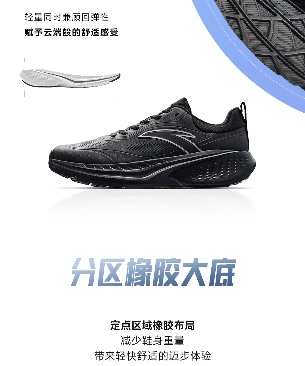 安踏云途丨轻质回弹缓震跑步鞋男子黑色跑鞋 112545519-2