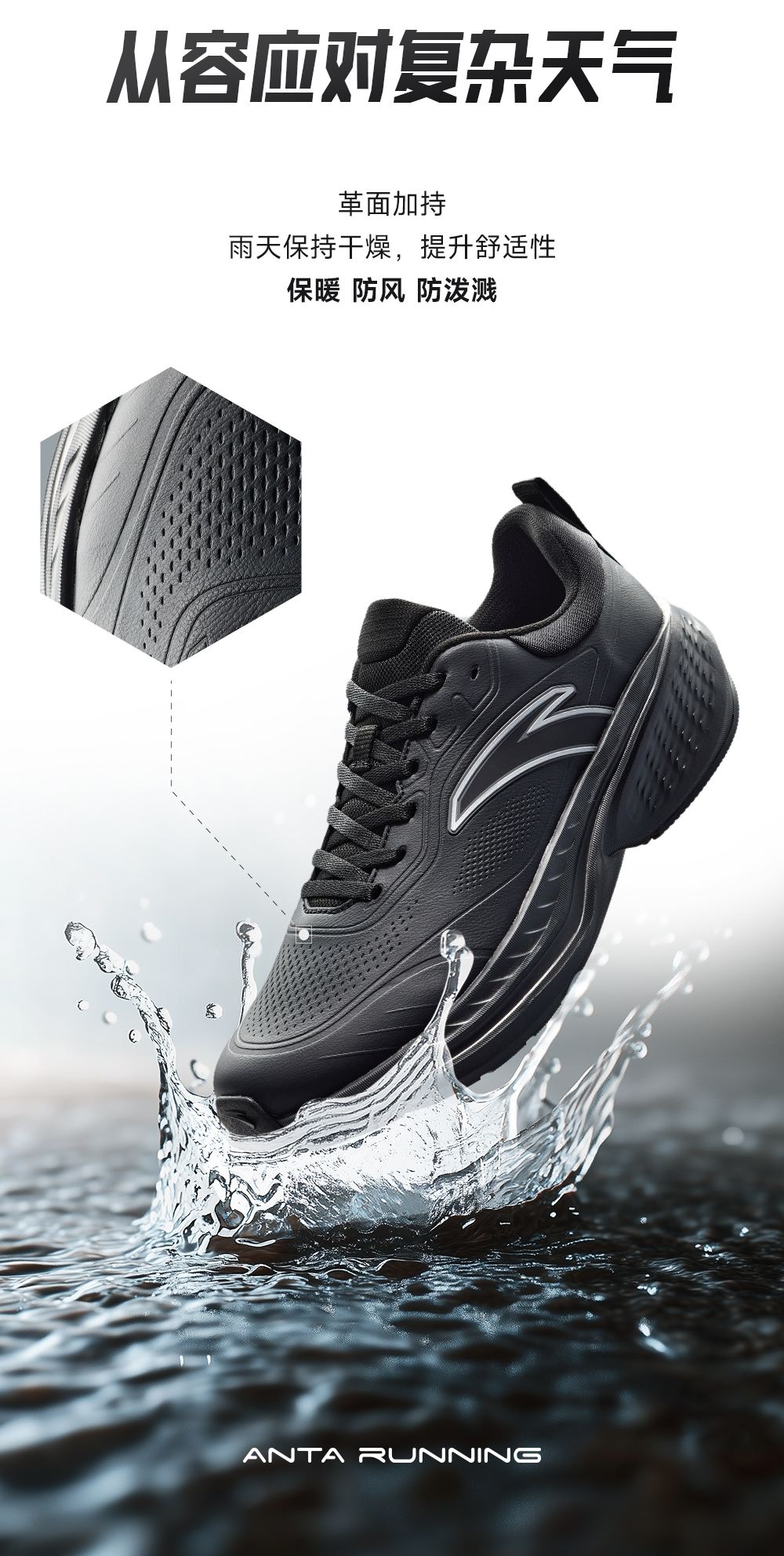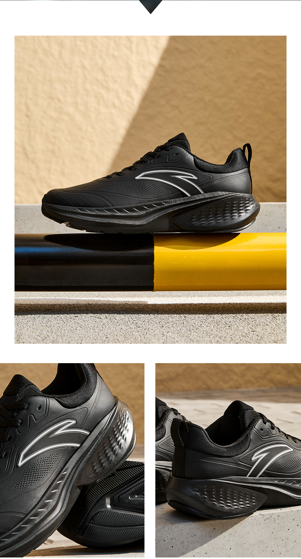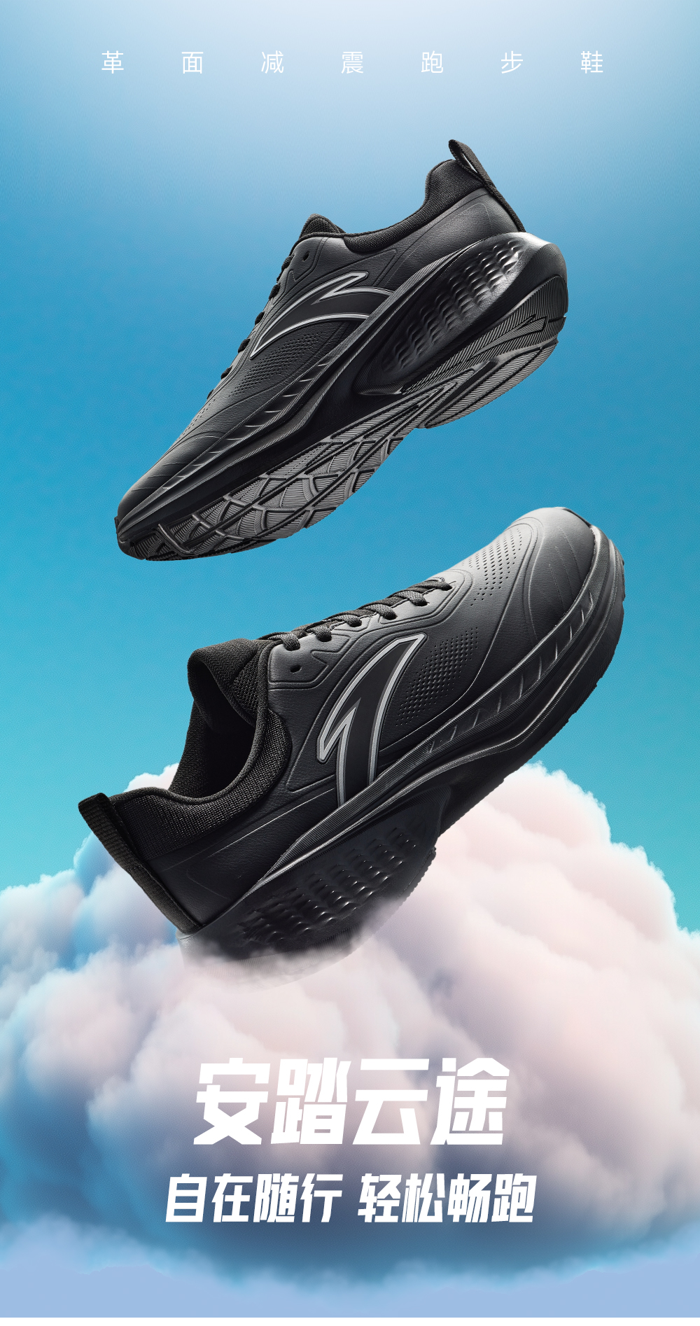 安踏云途丨轻质回弹缓震跑步鞋男子黑色跑鞋 112545519-2