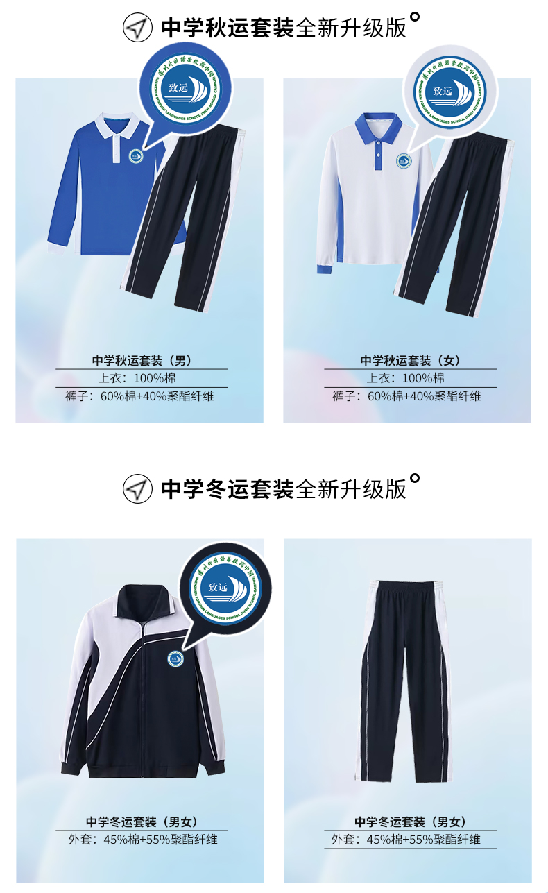 【浅色】深圳小学冬季运动服经典版、升级版、高级版(注意:特惠款不送校徽)