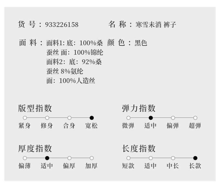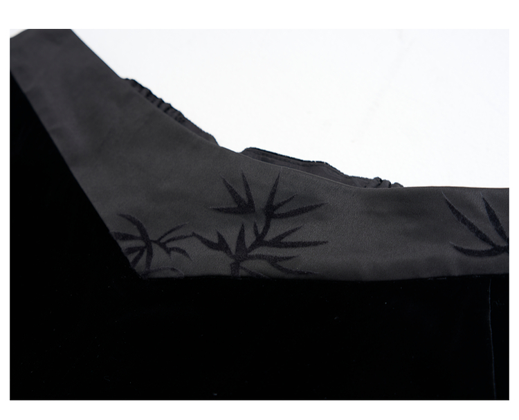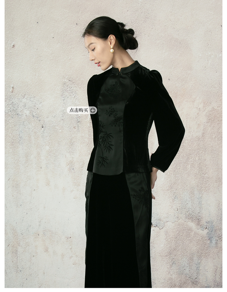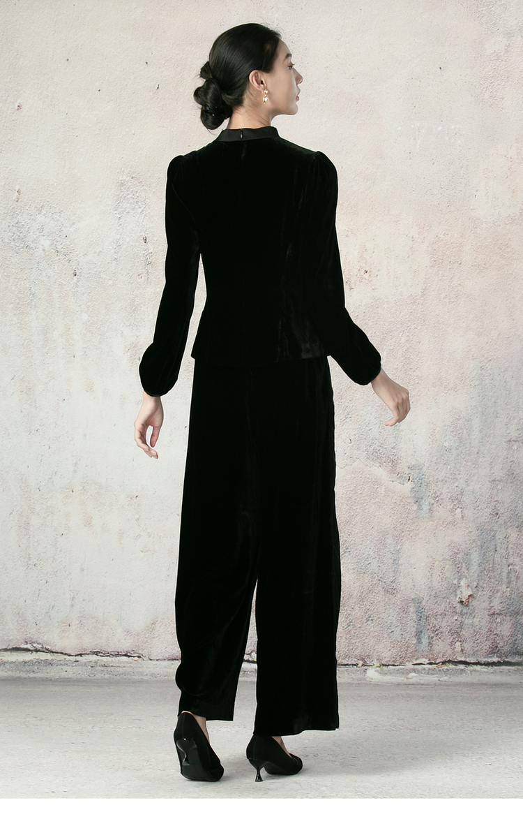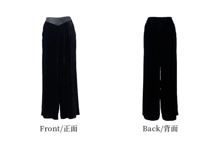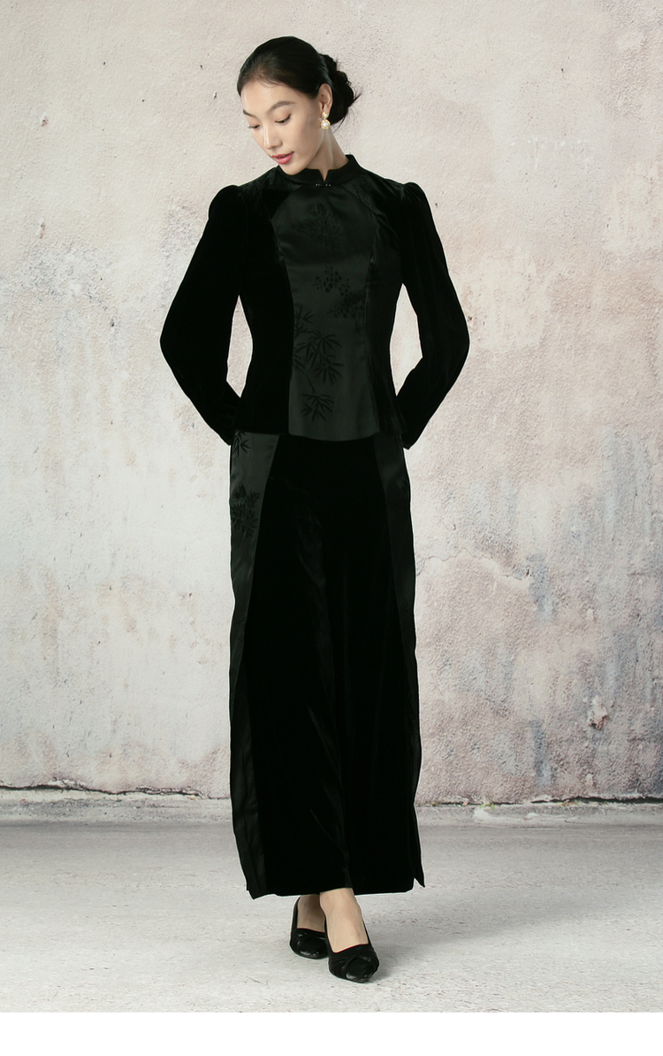 吉祥衣家新中式国风夏新款高端气质显瘦修身黑色女装寒雪未消裤子
