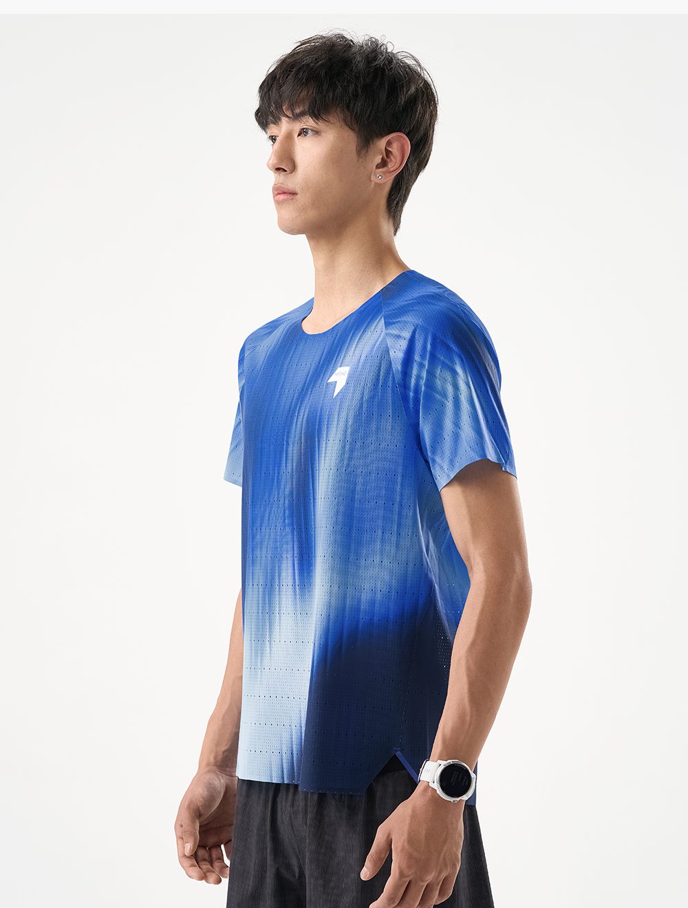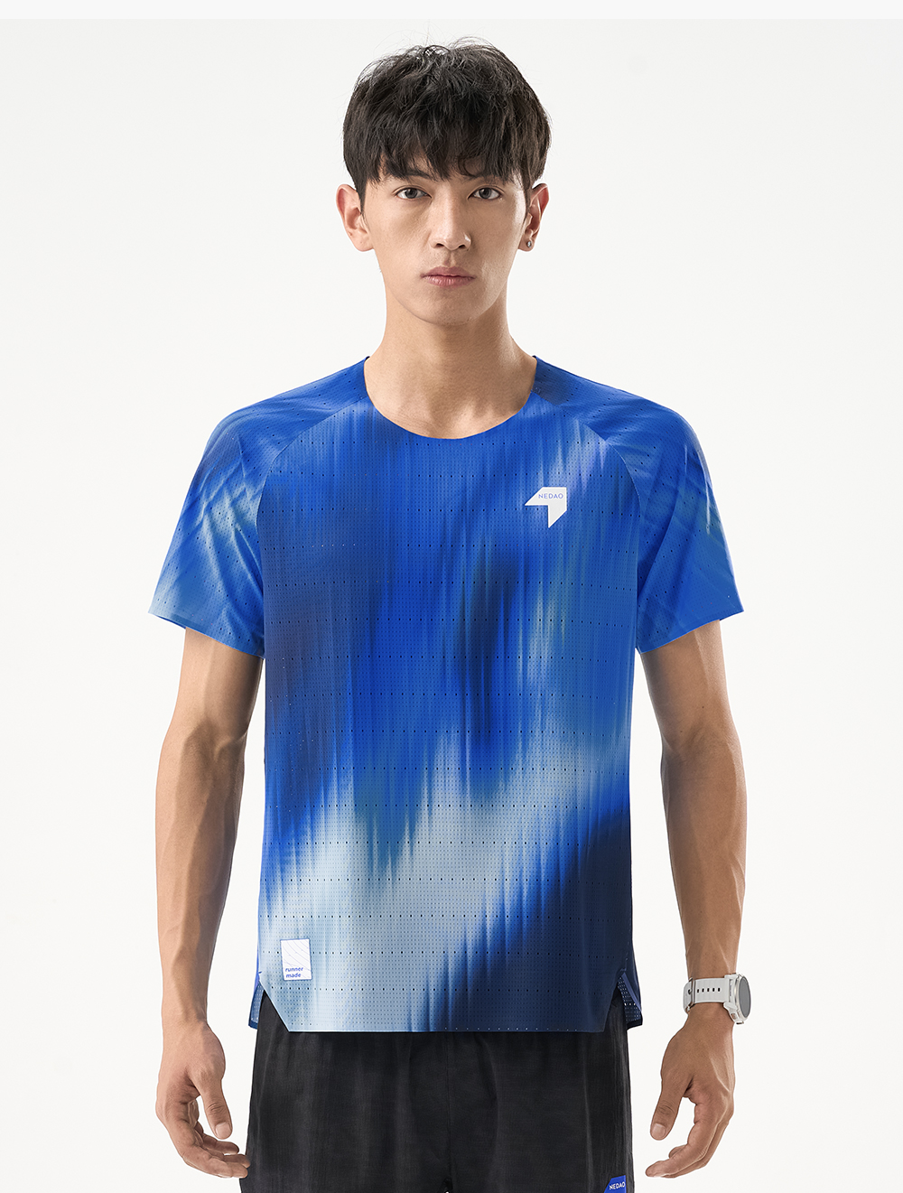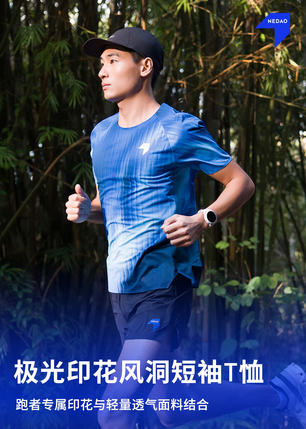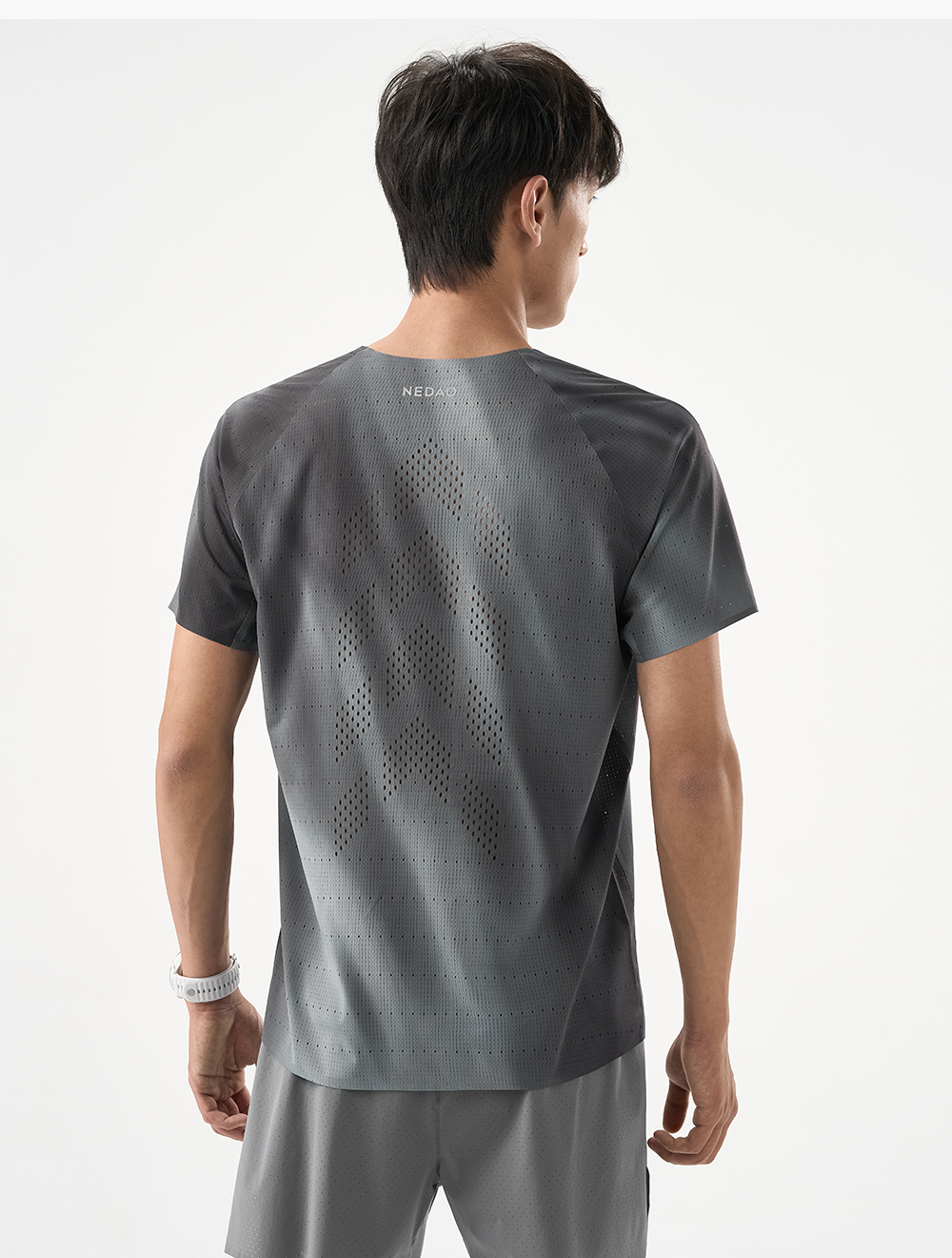 内道极光印花风洞短袖T恤马拉松跑步男款新款透气风洞短袖T