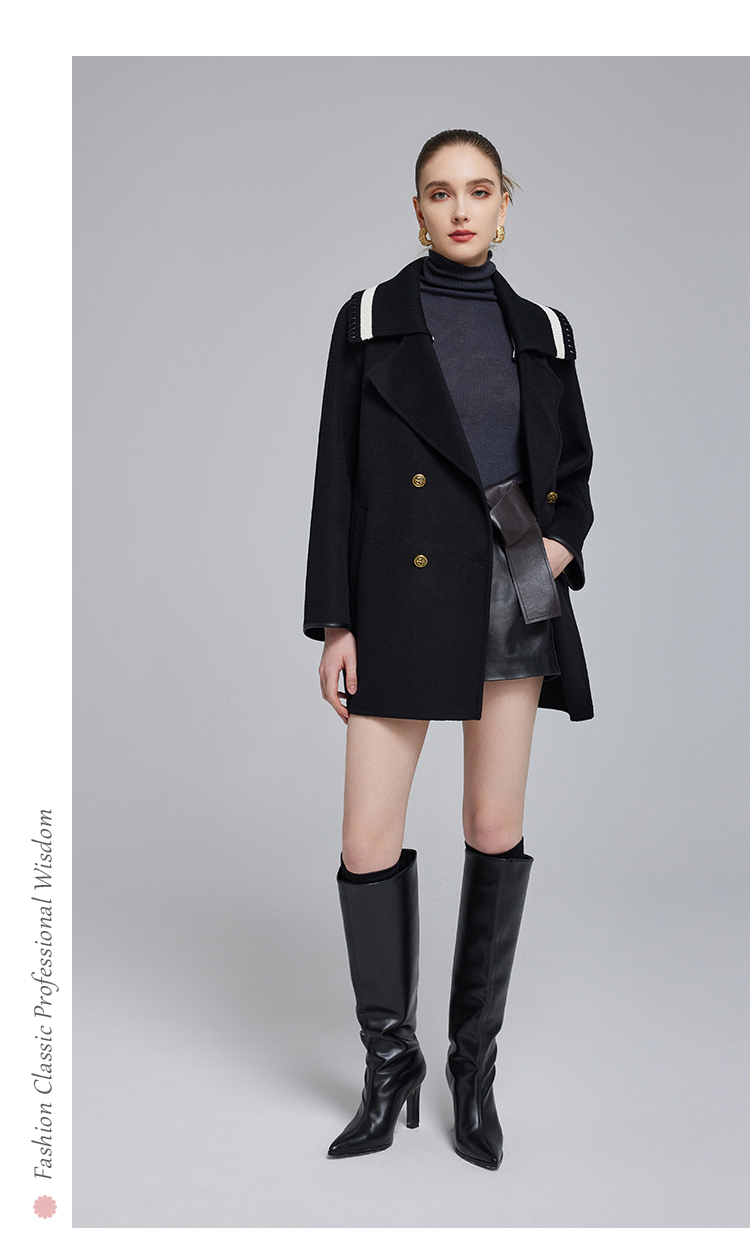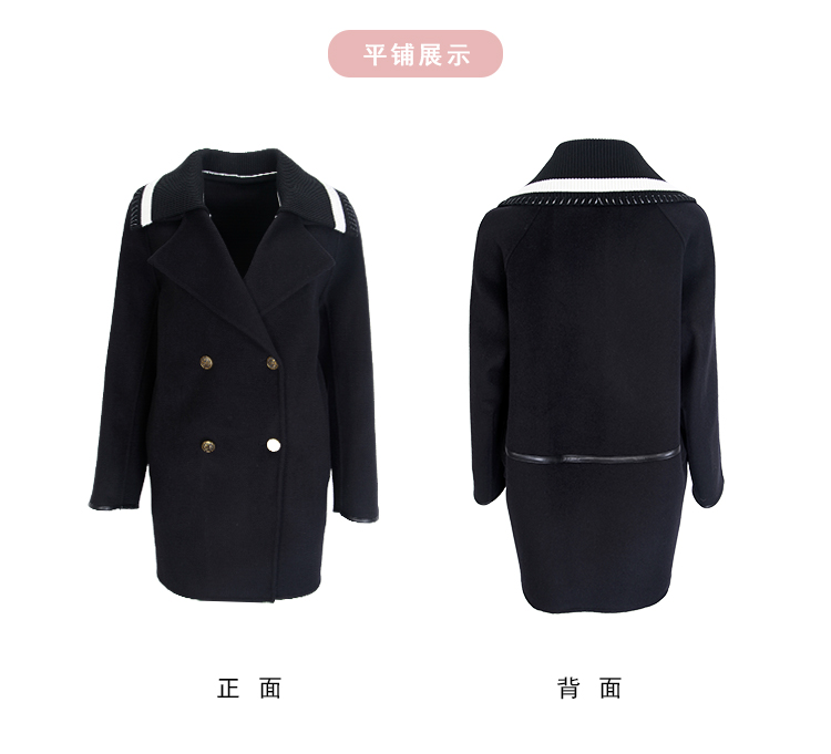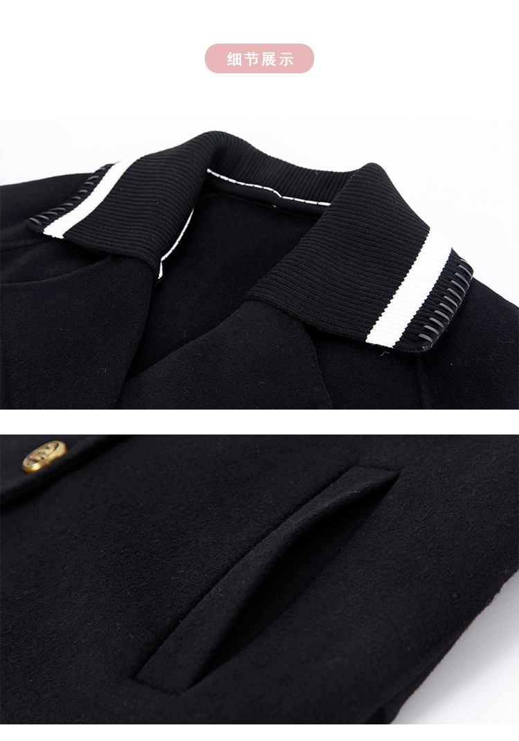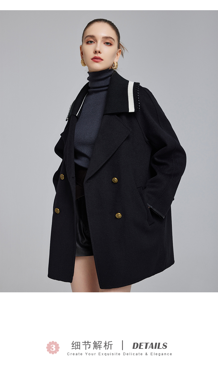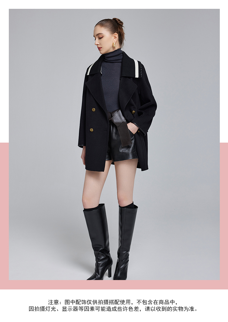 NH932斯尔丽23冬季新款可脱卸针织撞色领子显高减龄双面呢大衣女