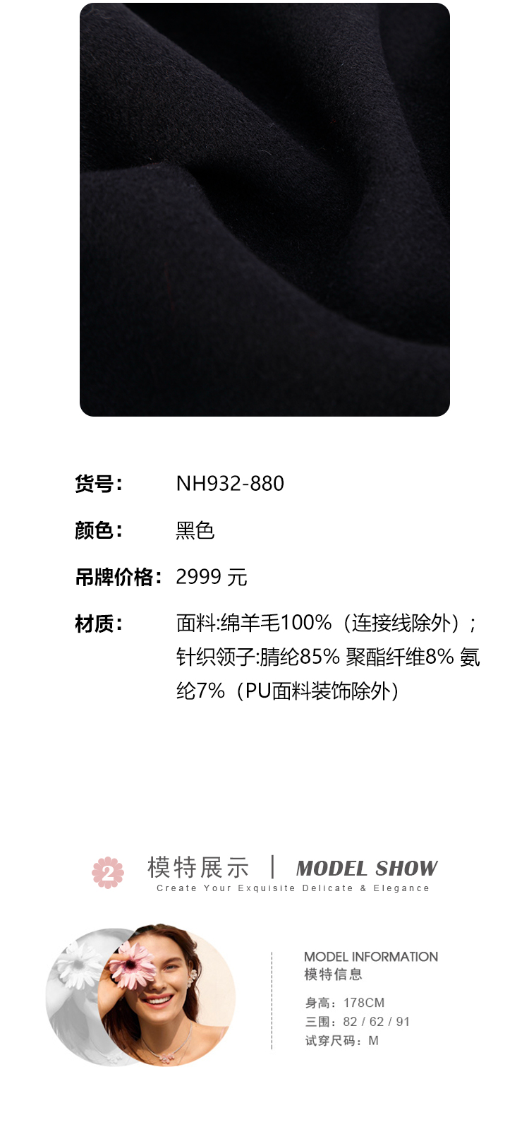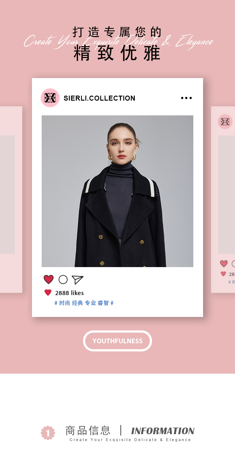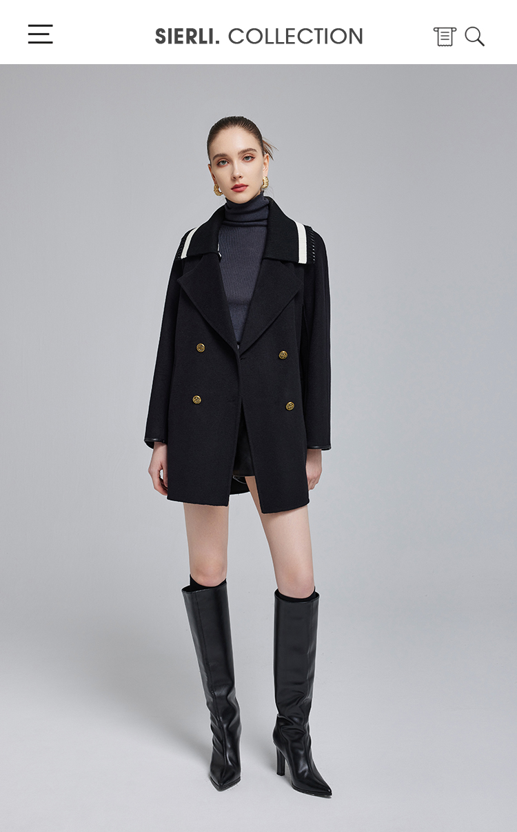NH932斯尔丽23冬季新款可脱卸针织撞色领子显高减龄双面呢大衣女