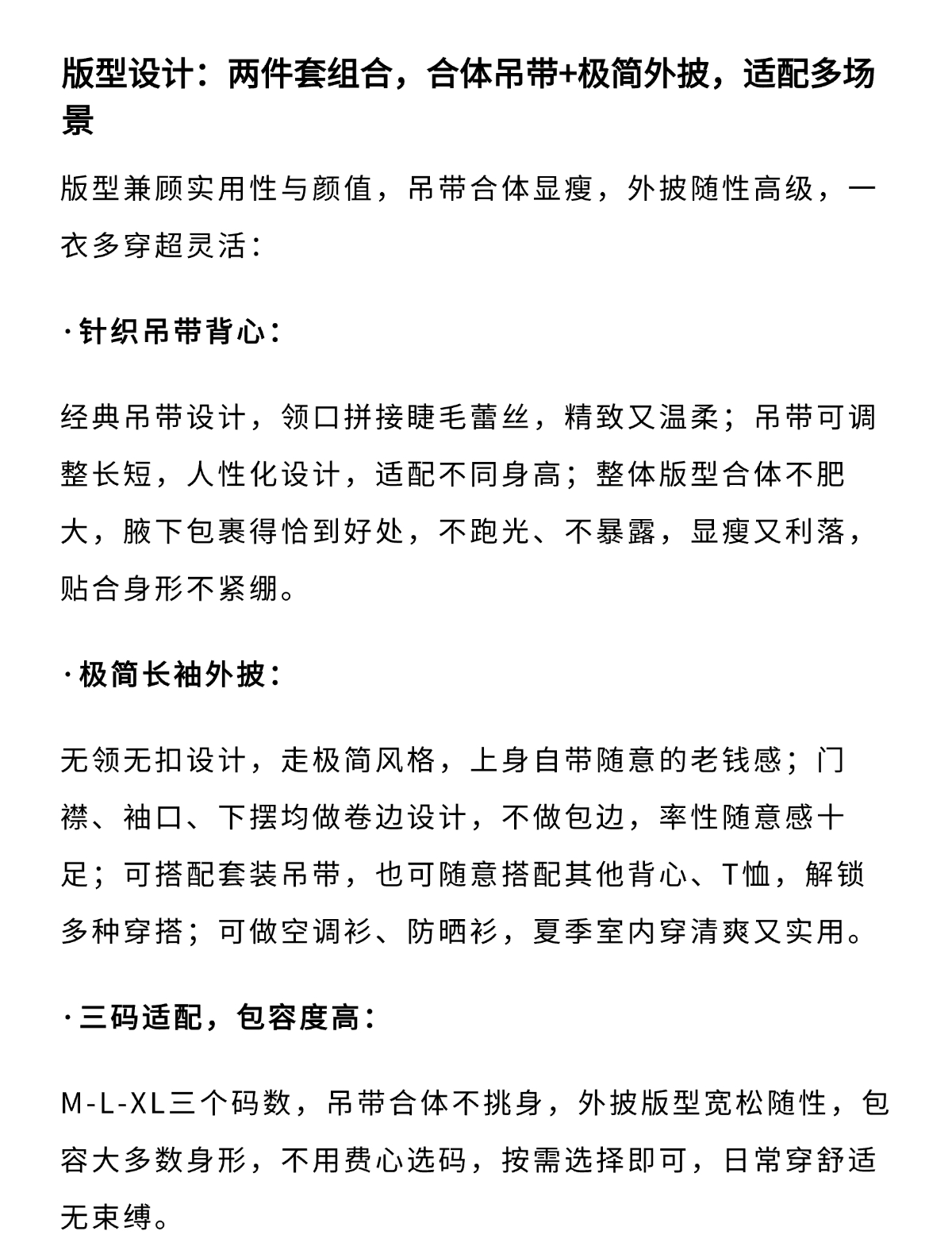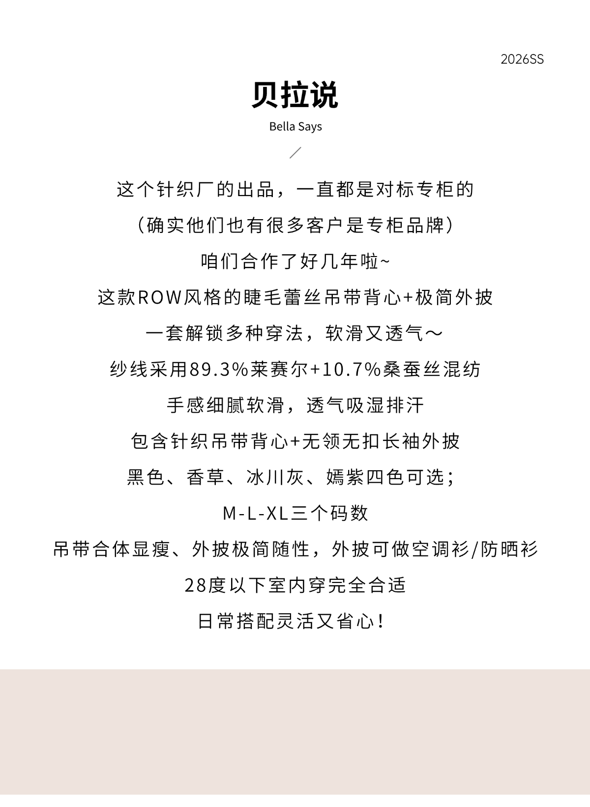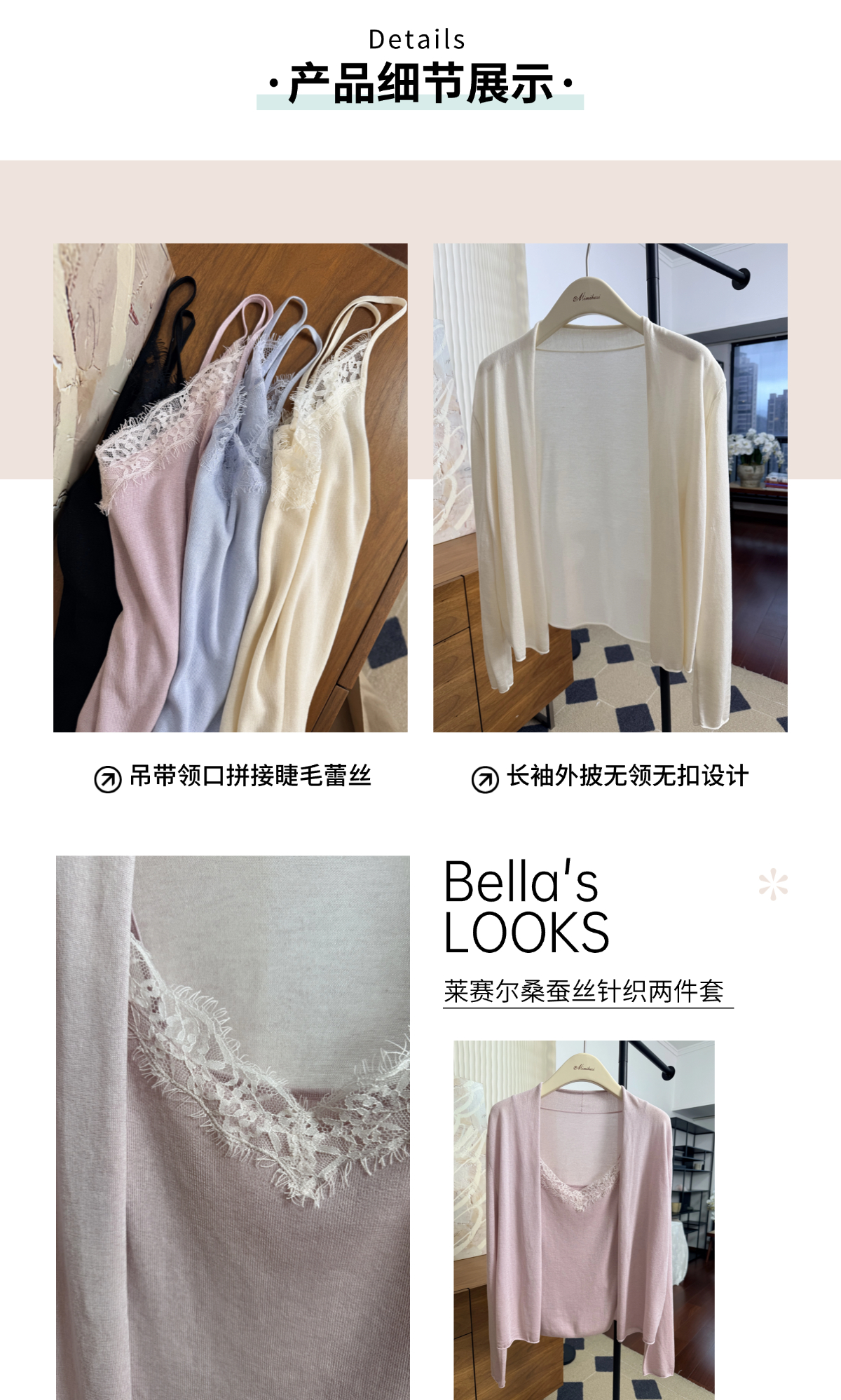 【贝拉推荐】自由切换 莱赛尔桑蚕丝针织两件套 ROW风格睫毛蕾丝吊带+长袖极简外披 空调衫+防晒衫 手感好到爆!专柜品质