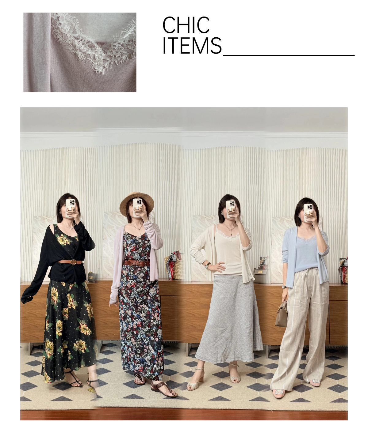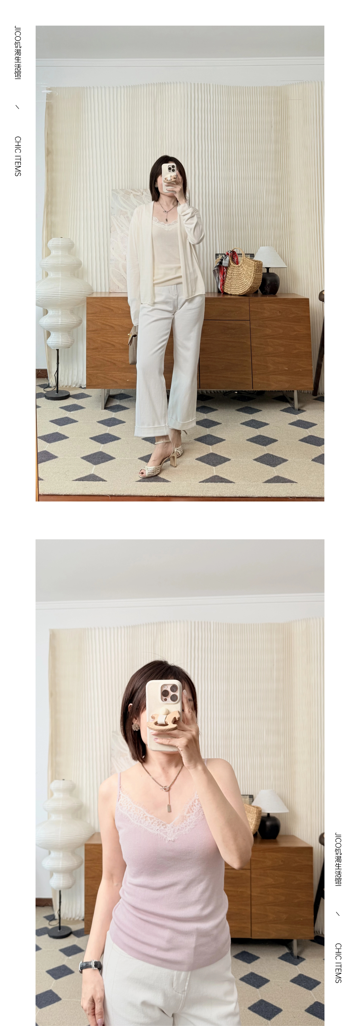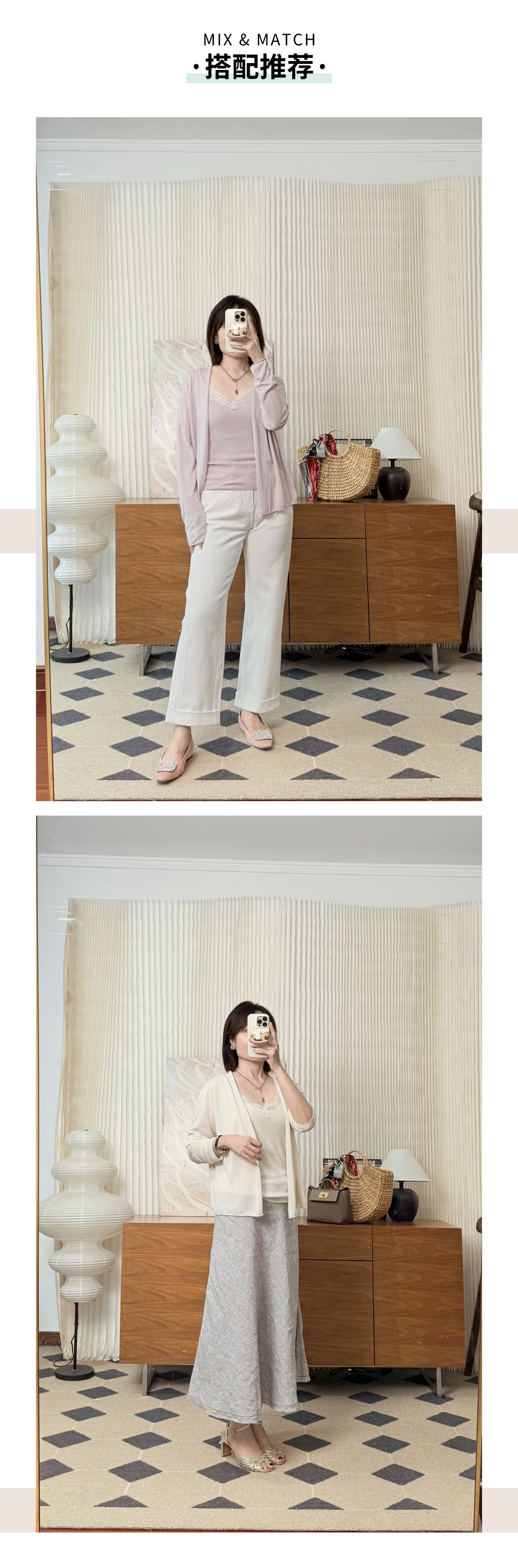 【贝拉推荐】自由切换 莱赛尔桑蚕丝针织两件套 ROW风格睫毛蕾丝吊带+长袖极简外披 空调衫+防晒衫 手感好到爆!专柜品质