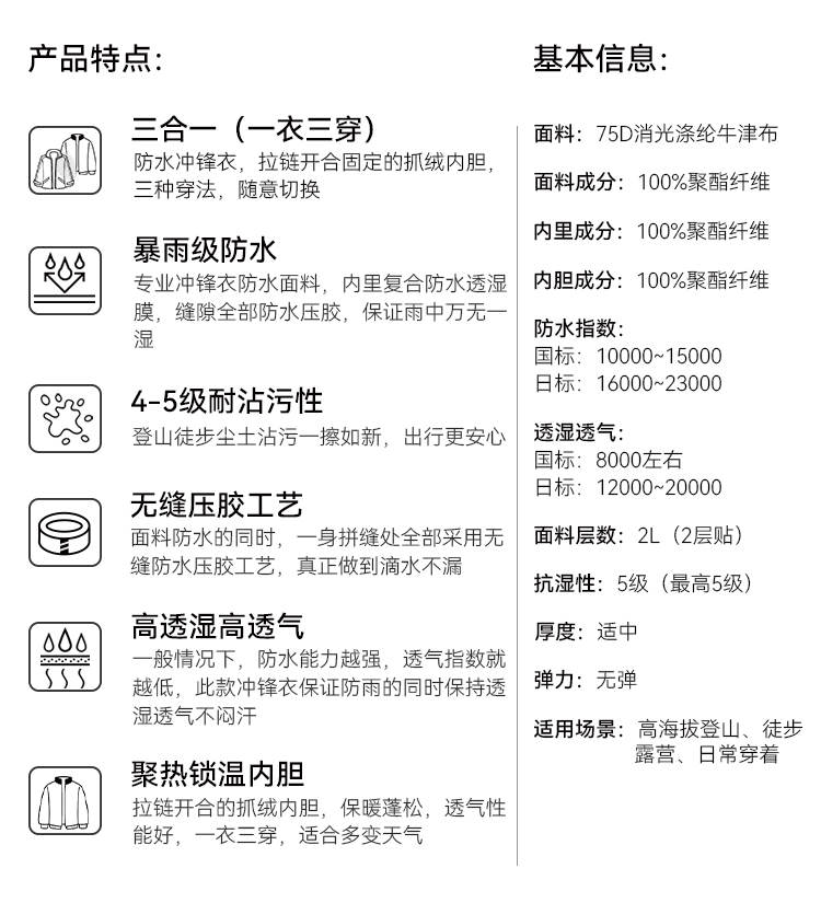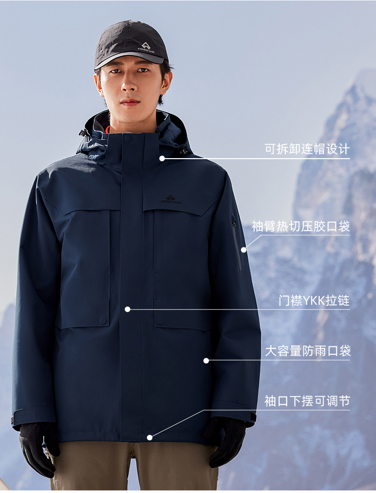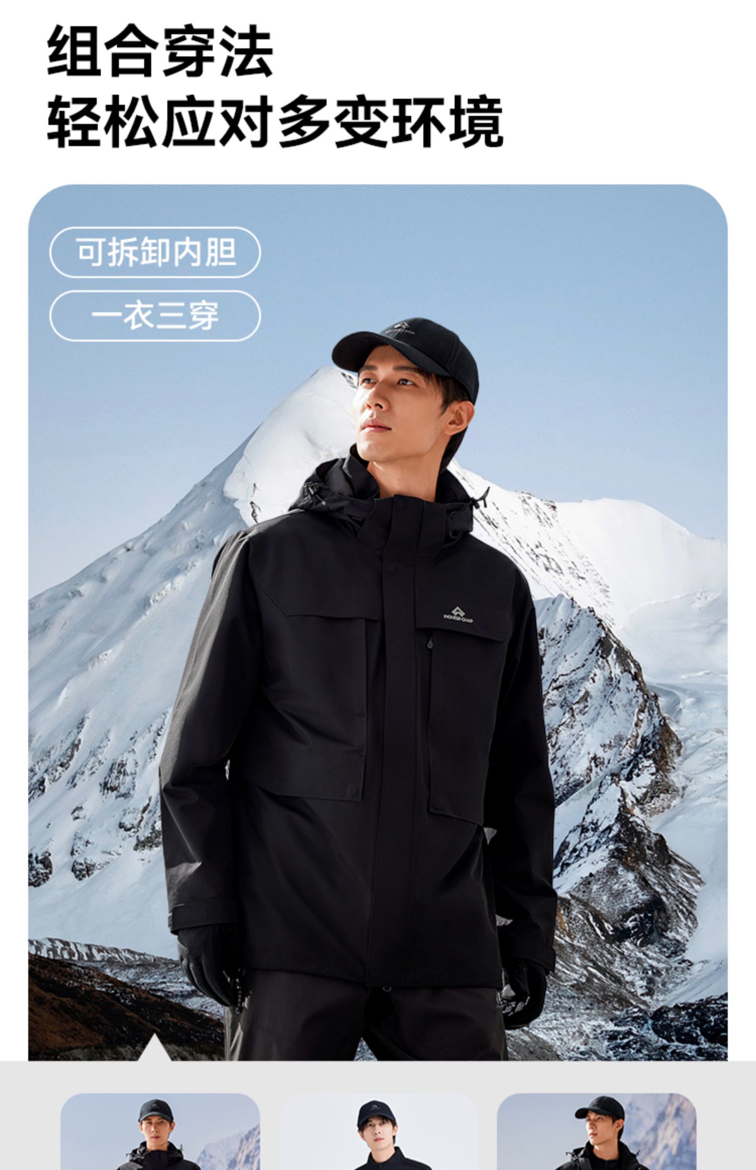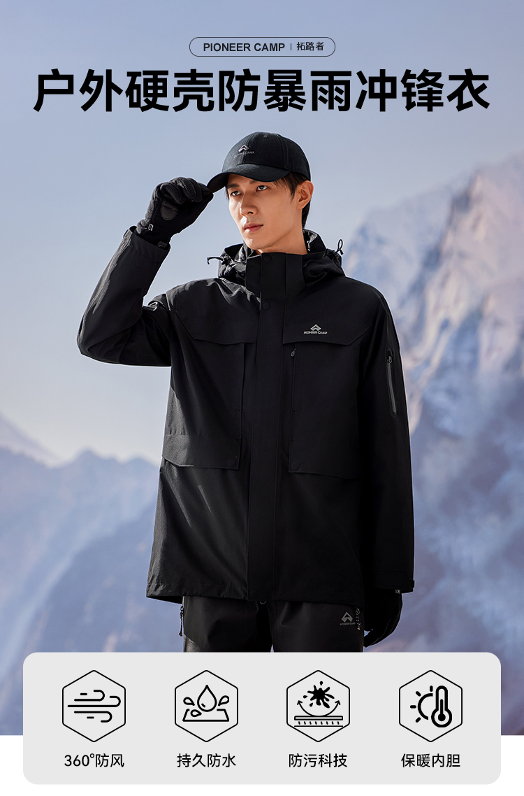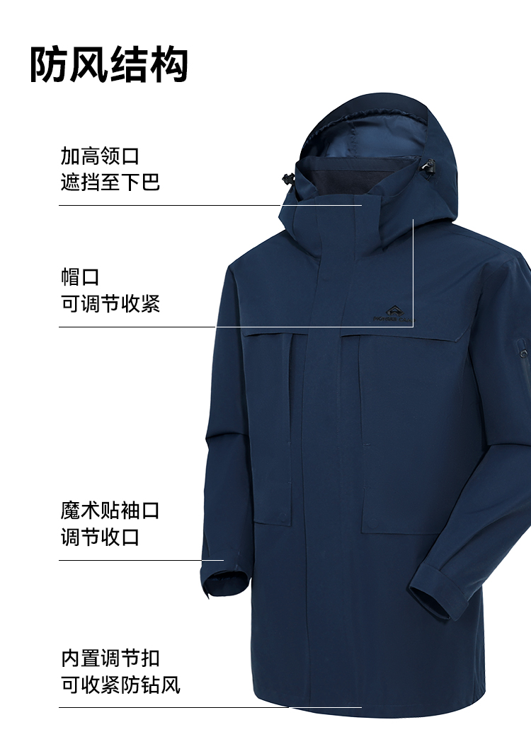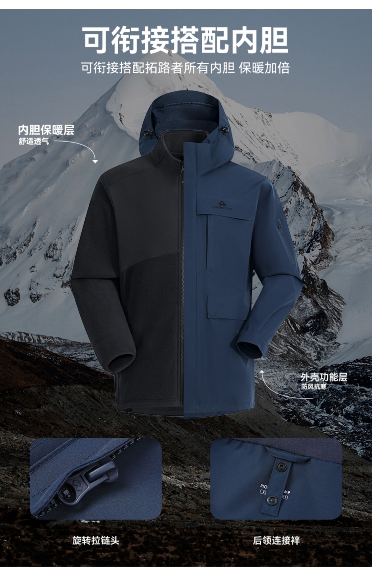 【朱雀中长款冲锋衣】拓路者户外登山服男24年冬季防风防水外套
