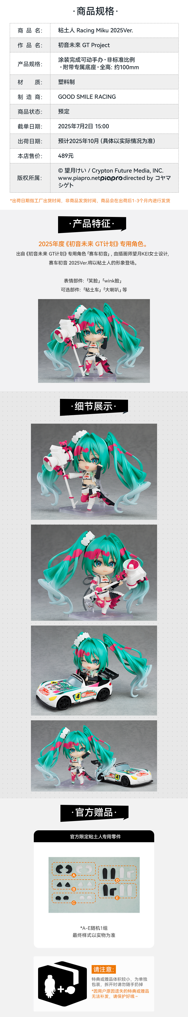 【GSC补款】粘土人 Racing Miku 2025Ver. 初音未來 GT Project