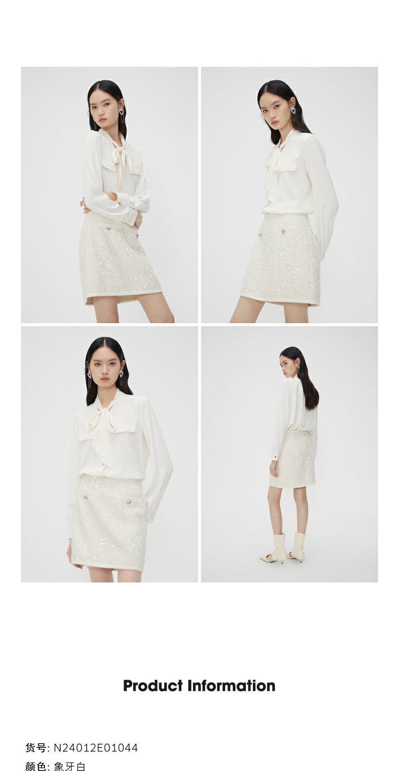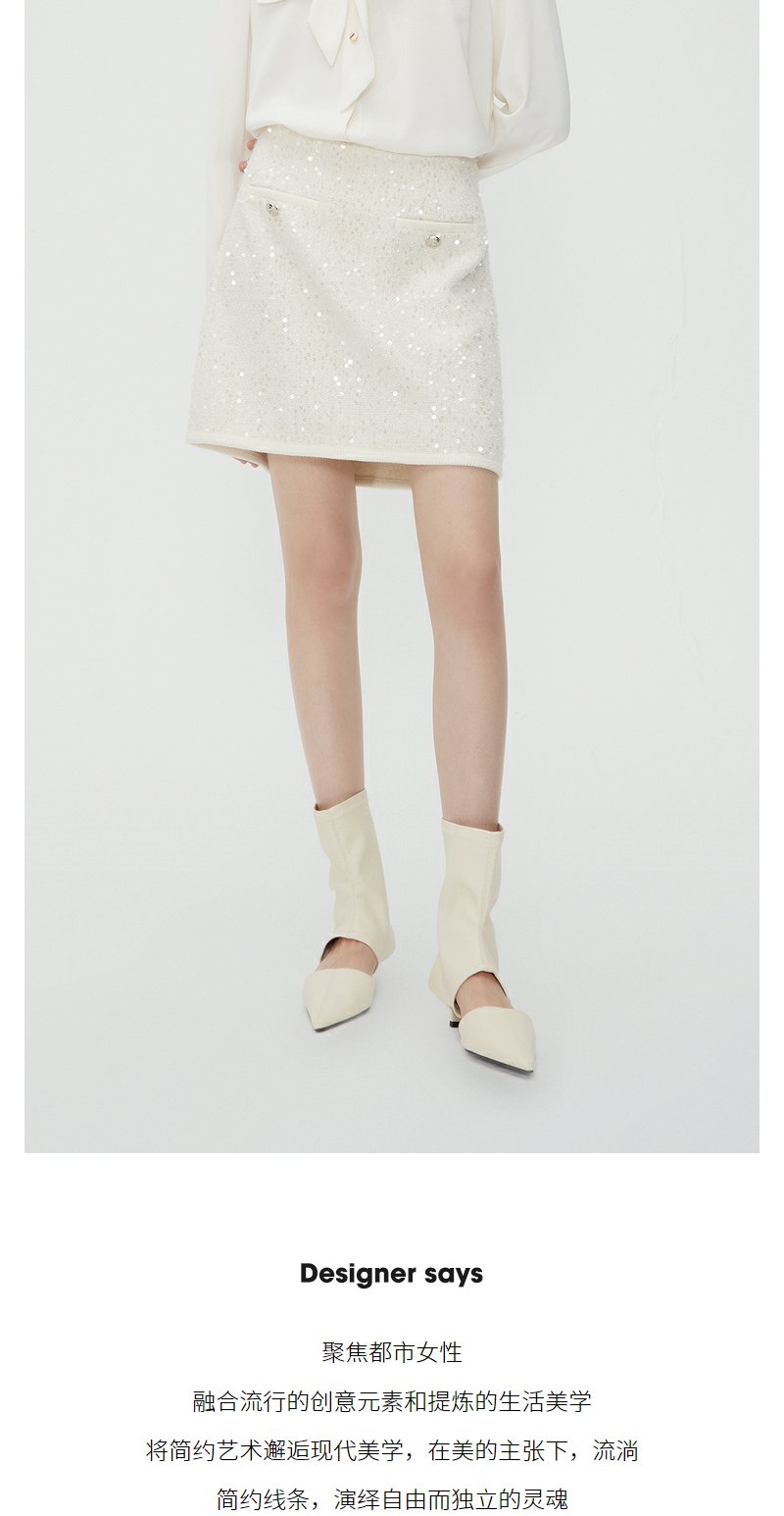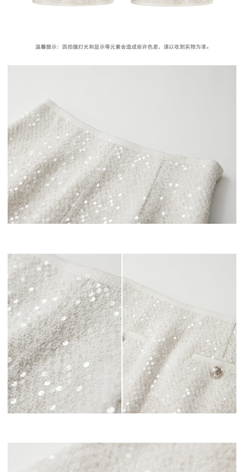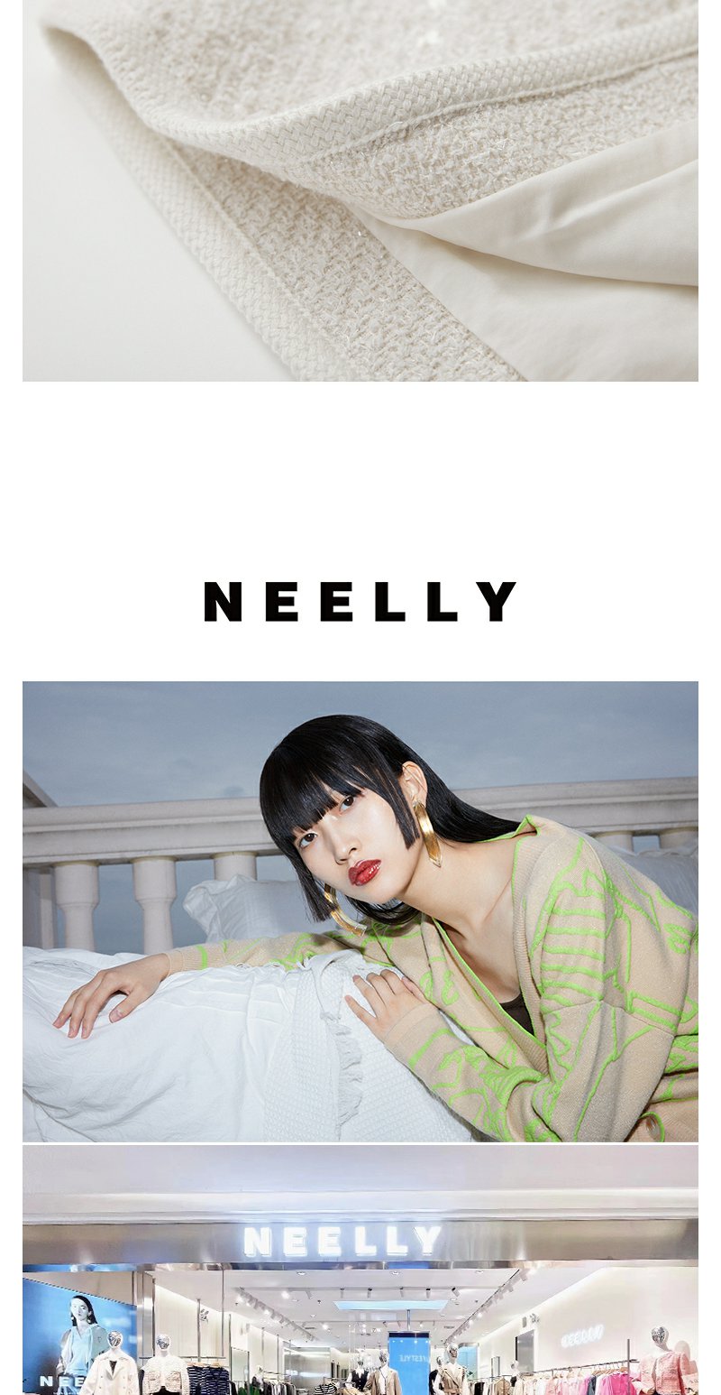 NEELLY纳俪商场同款春季超好看高腰亮片半身裙女百搭小香风A字裙N24012E01044