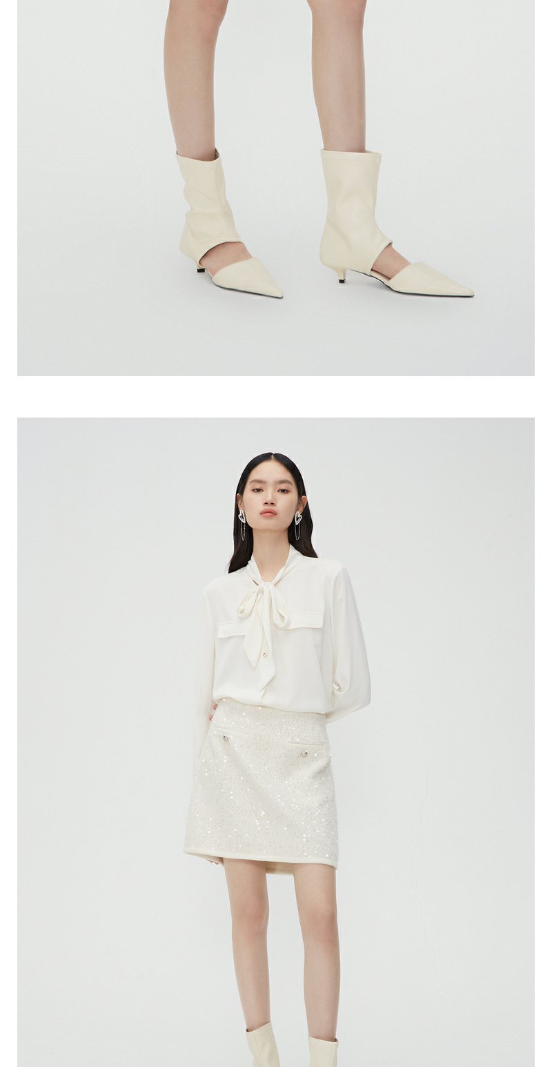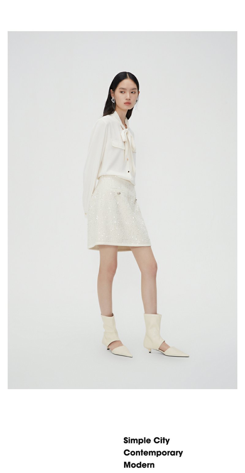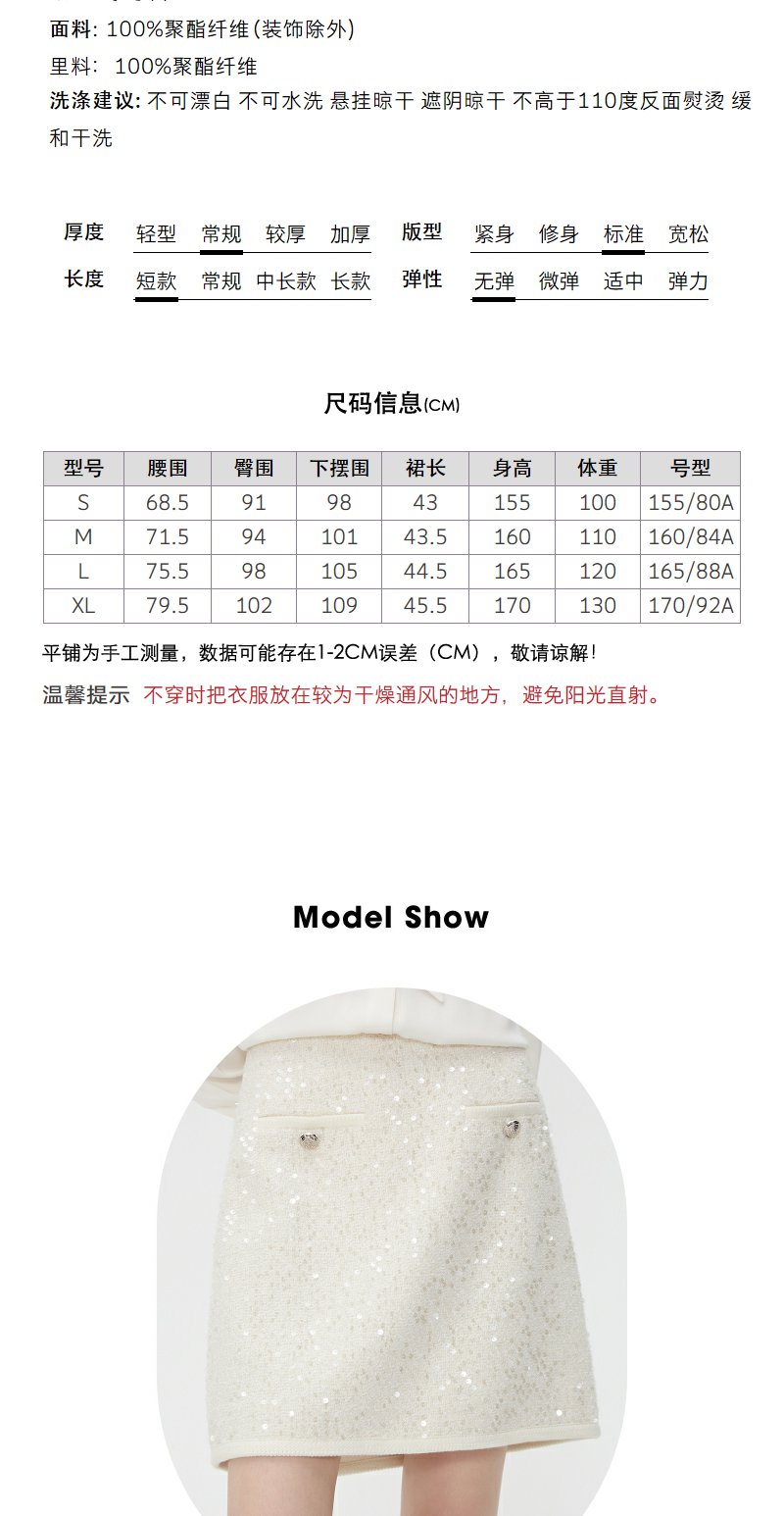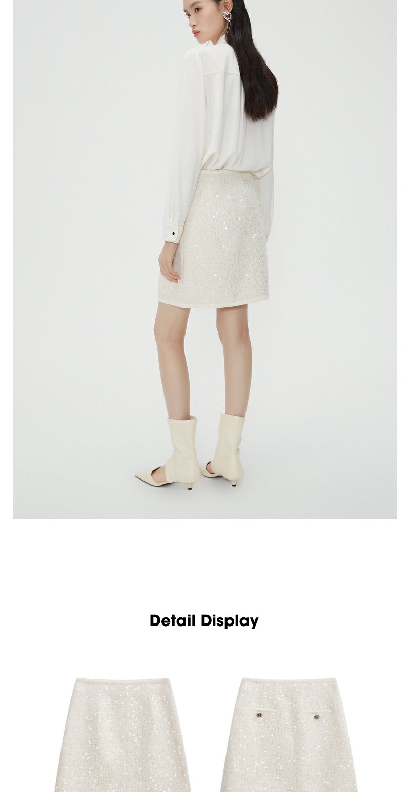 NEELLY纳俪商场同款春季超好看高腰亮片半身裙女百搭小香风A字裙N24012E01044