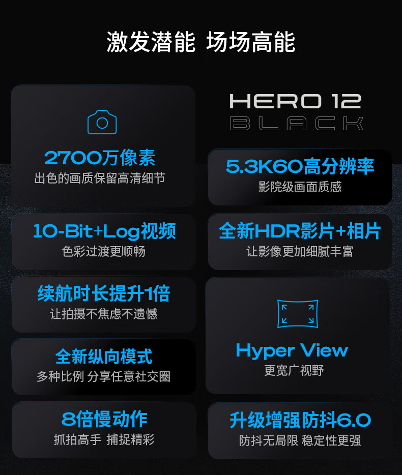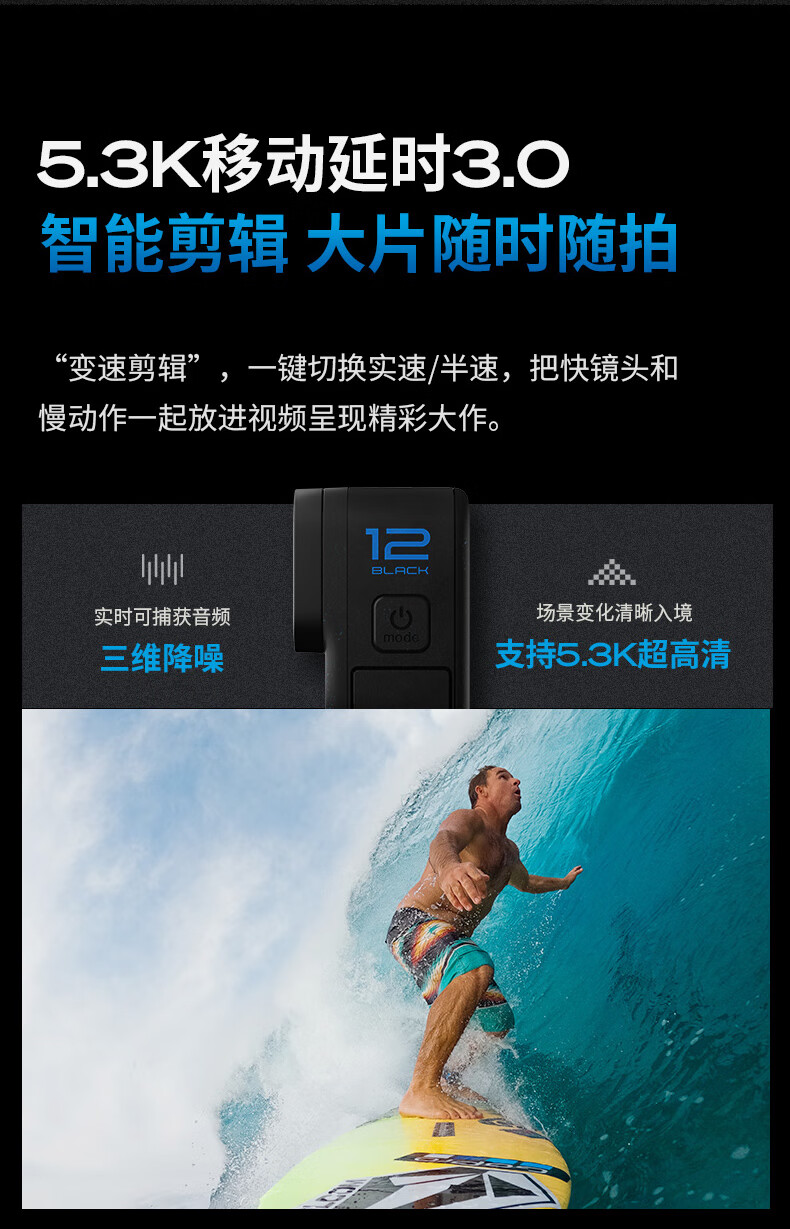 GoPro HERO12 Black 运动相机 户外摩托骑行 潜水防水防抖相机 Vlog数码运动摄像机 旅拍照相机