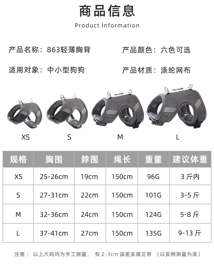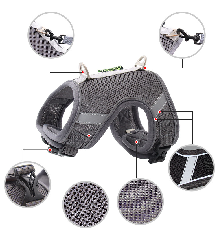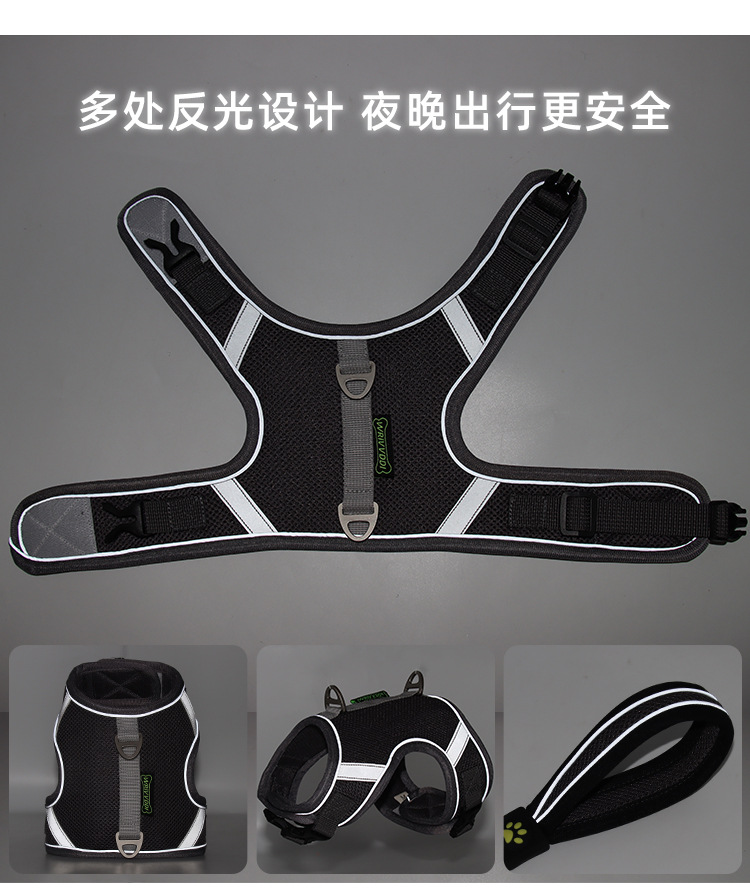 【特价清仓】宠物反光网布胸背带含牵引绳1.5米 夜间反光 双D扣网眼 舒适透气犬猫通用