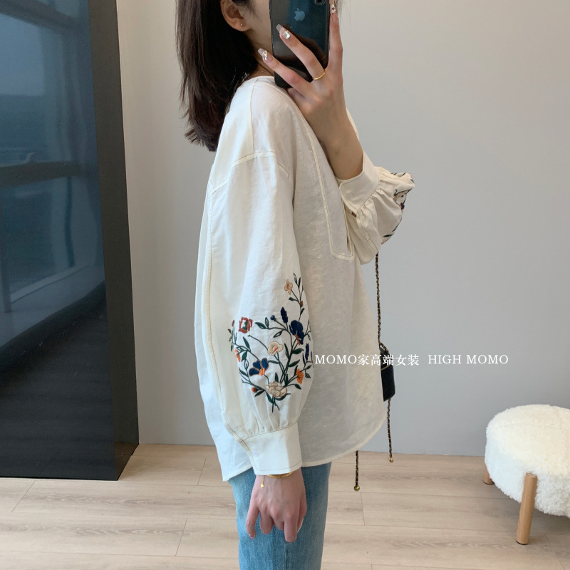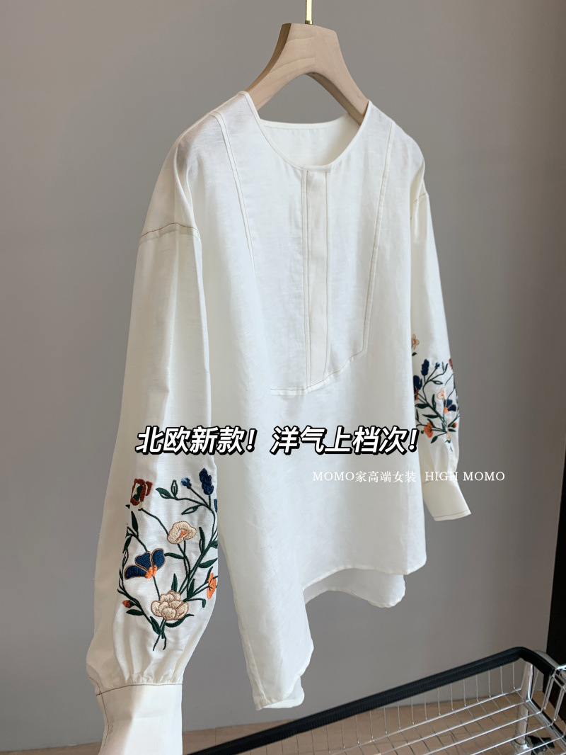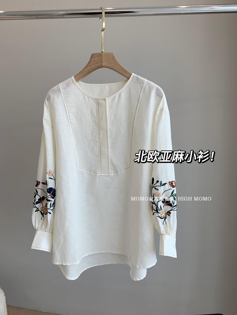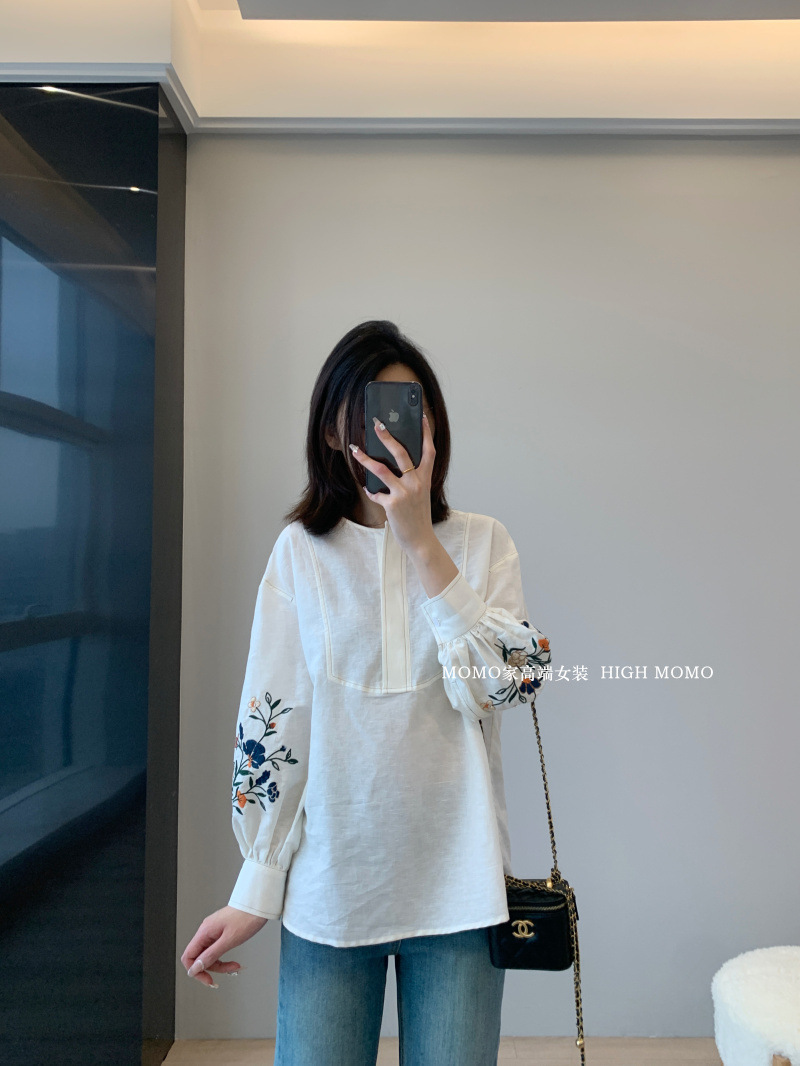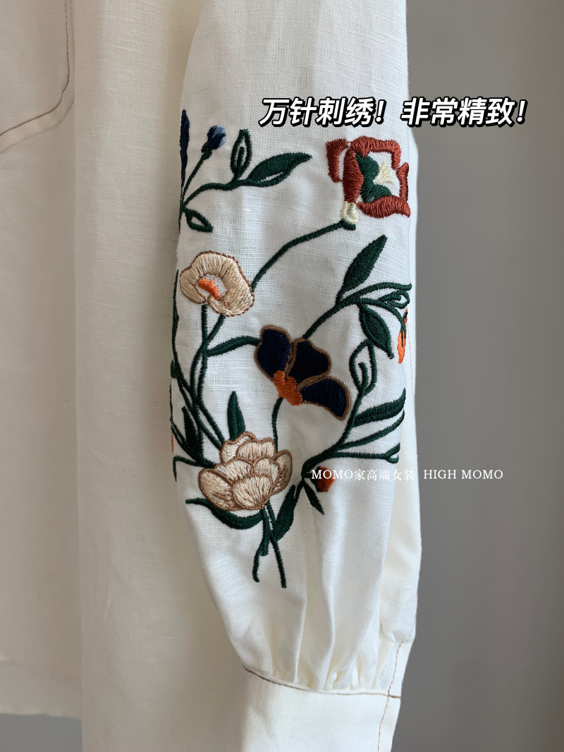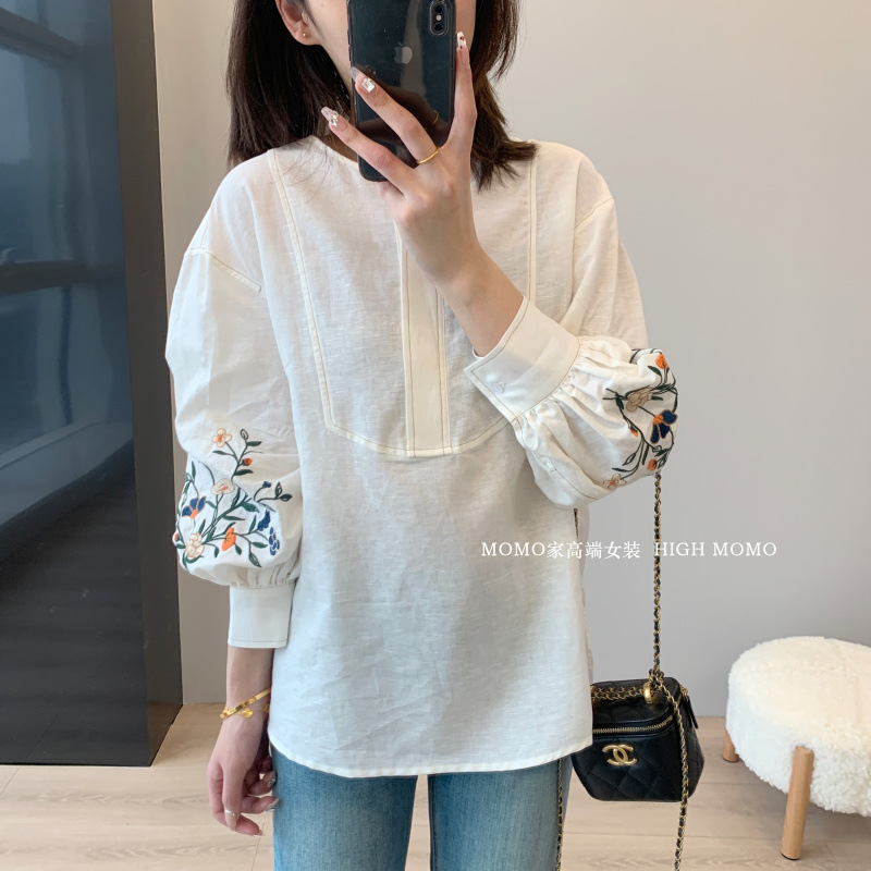 【风风同款 超多好评!好绝的版型 万针刺绣宽松复古苎麻衬衫】刺绣灯笼袖衬衫