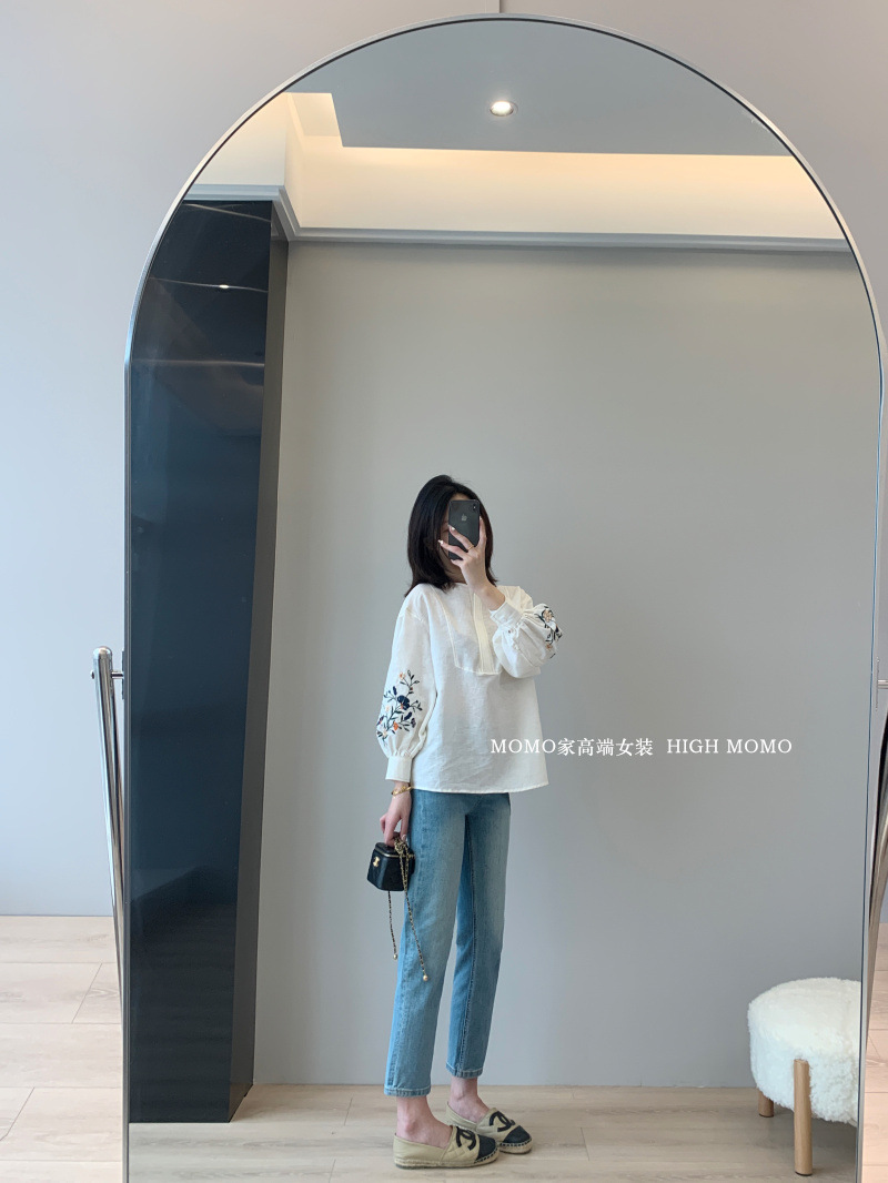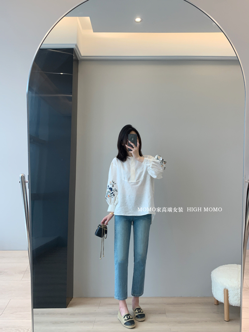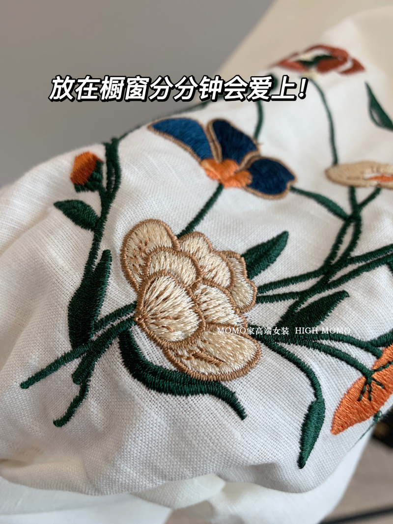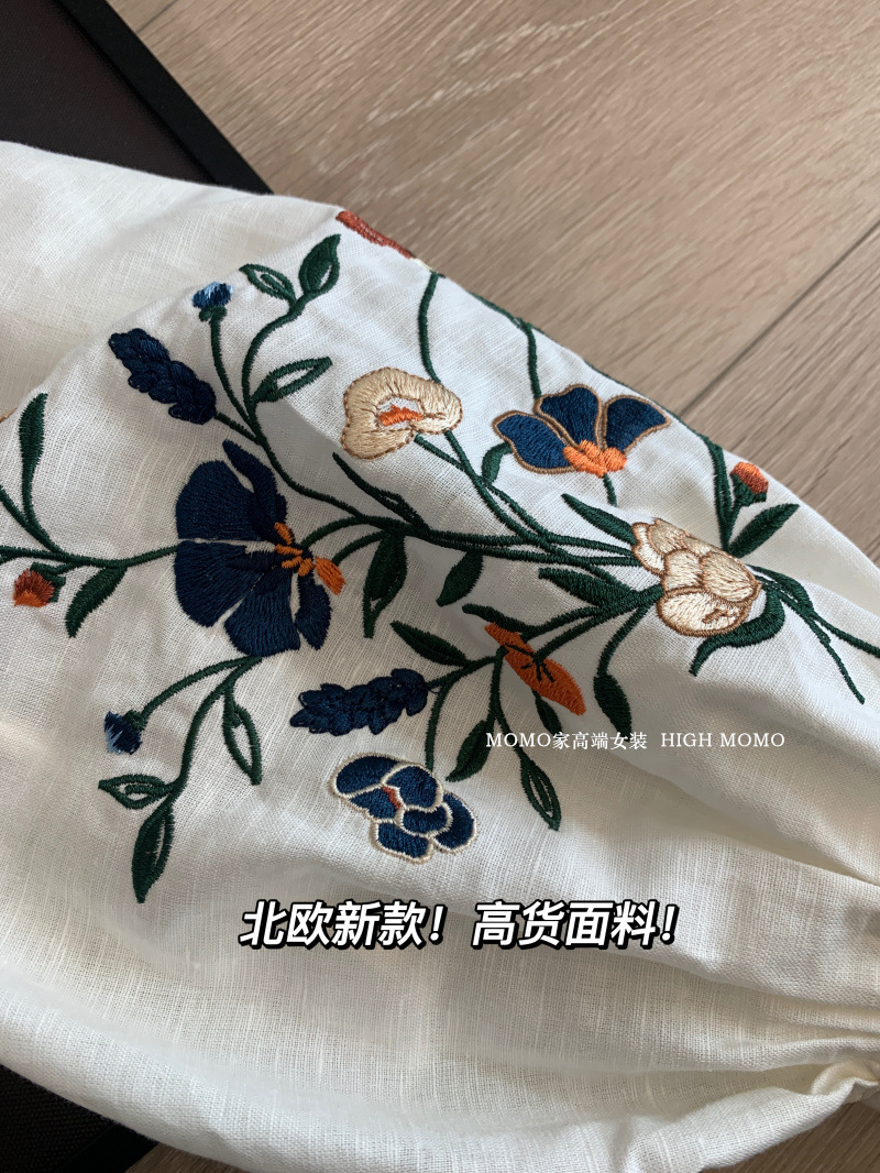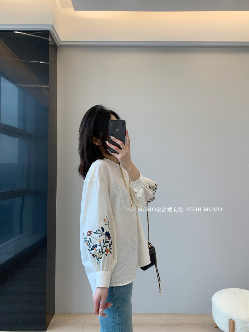 【风风同款 超多好评!好绝的版型 万针刺绣宽松复古苎麻衬衫】刺绣灯笼袖衬衫