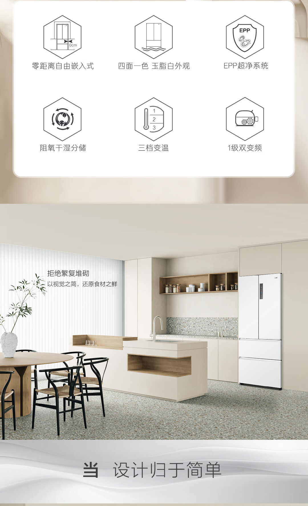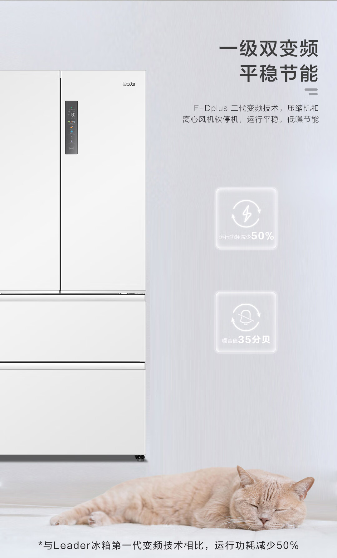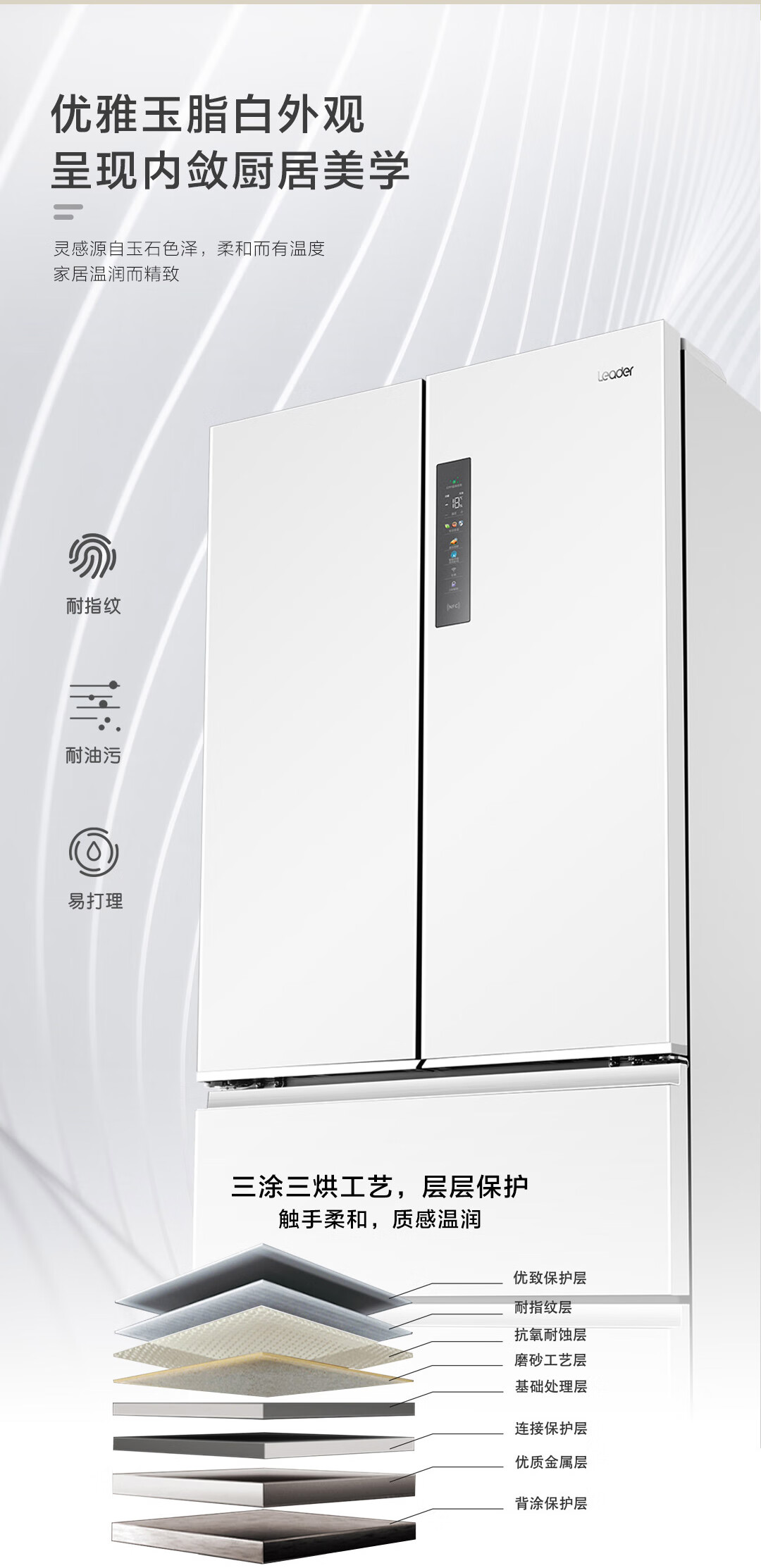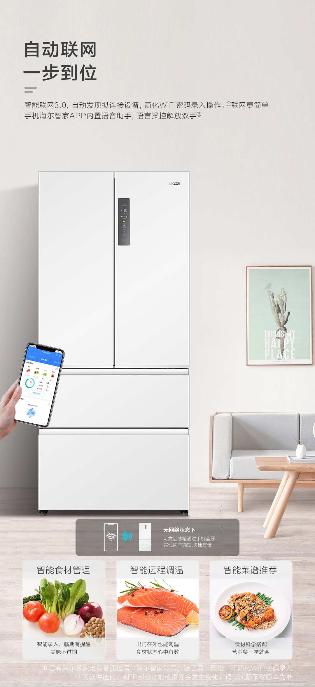 Leader 海尔智家出品501升一级风冷白色法式多门家用以旧换新嵌入式【陈哲远冰箱】BCD-501WGLFD4DW9U1