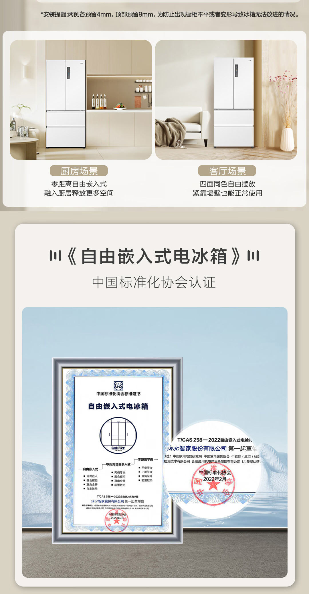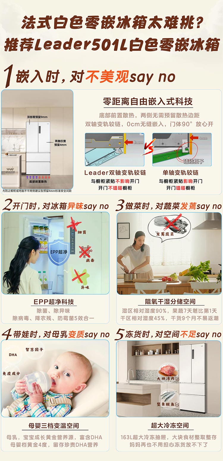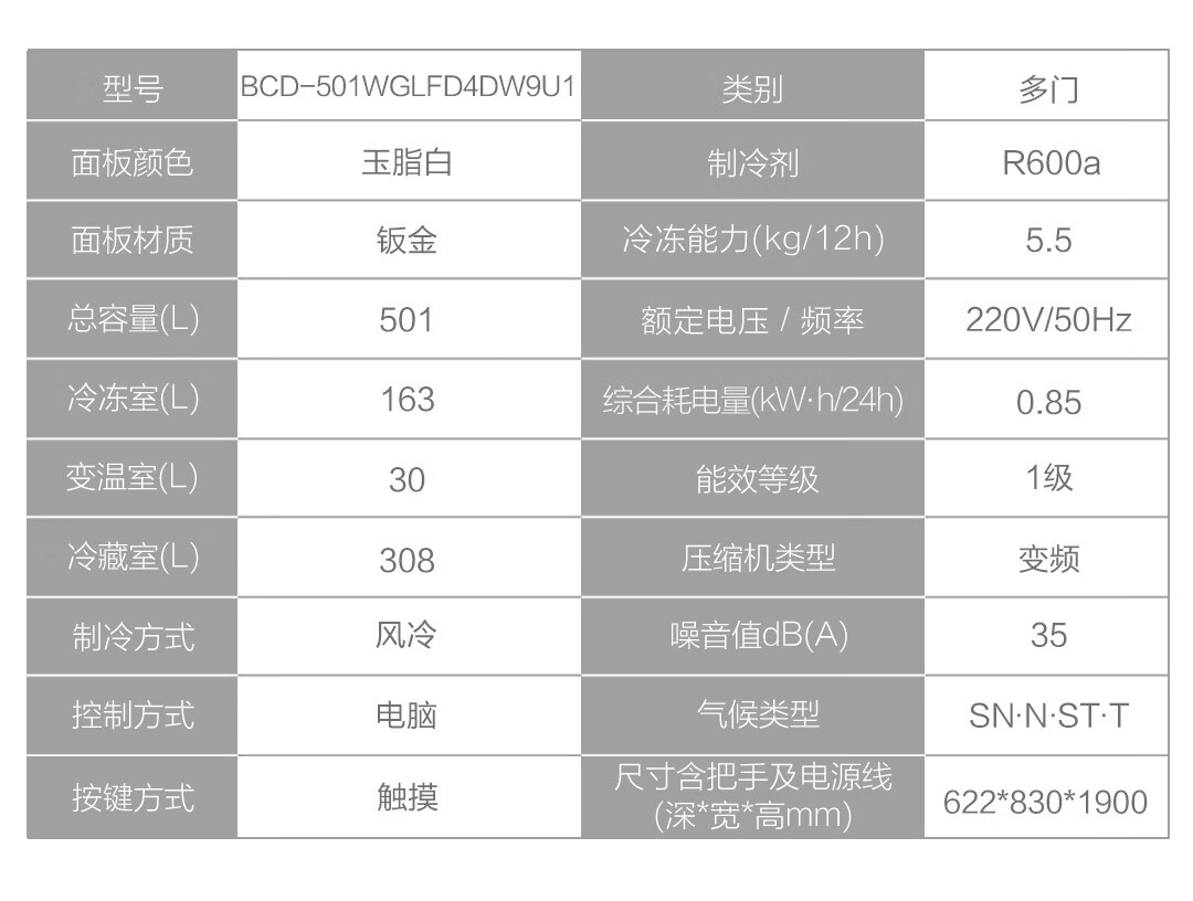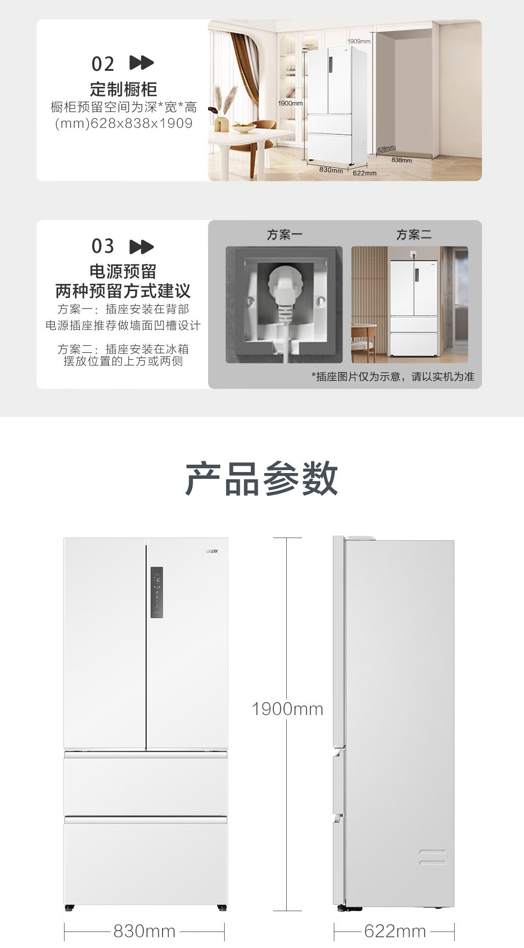 Leader 海尔智家出品501升一级风冷白色法式多门家用以旧换新嵌入式【陈哲远冰箱】BCD-501WGLFD4DW9U1