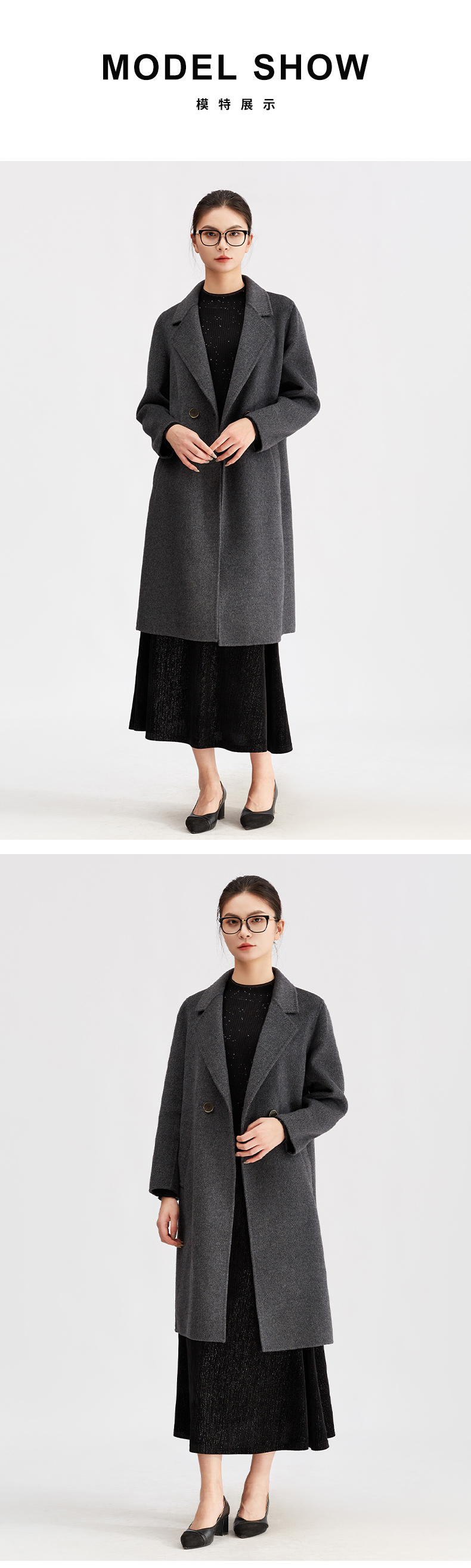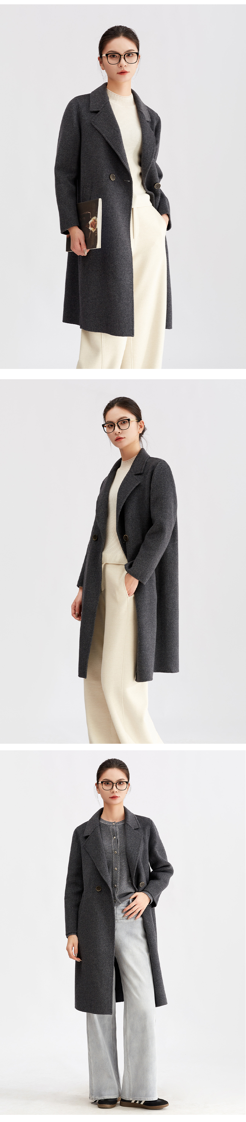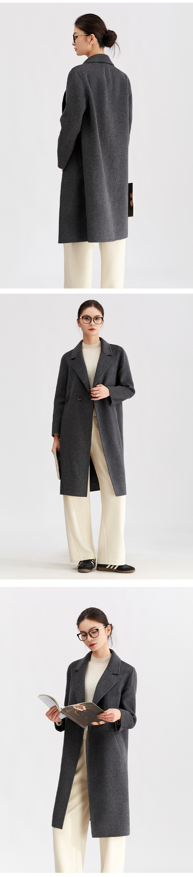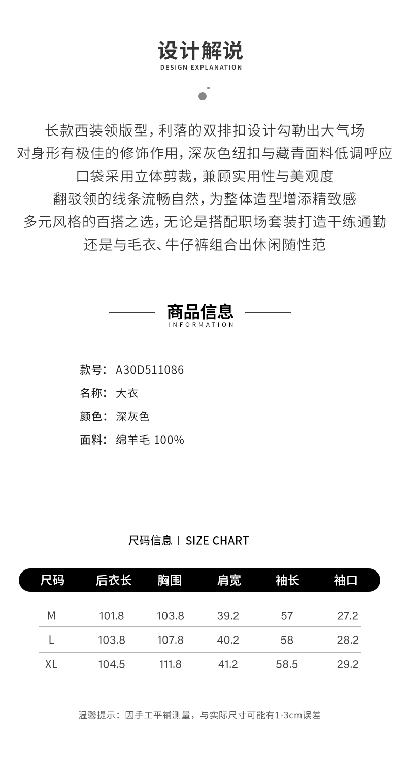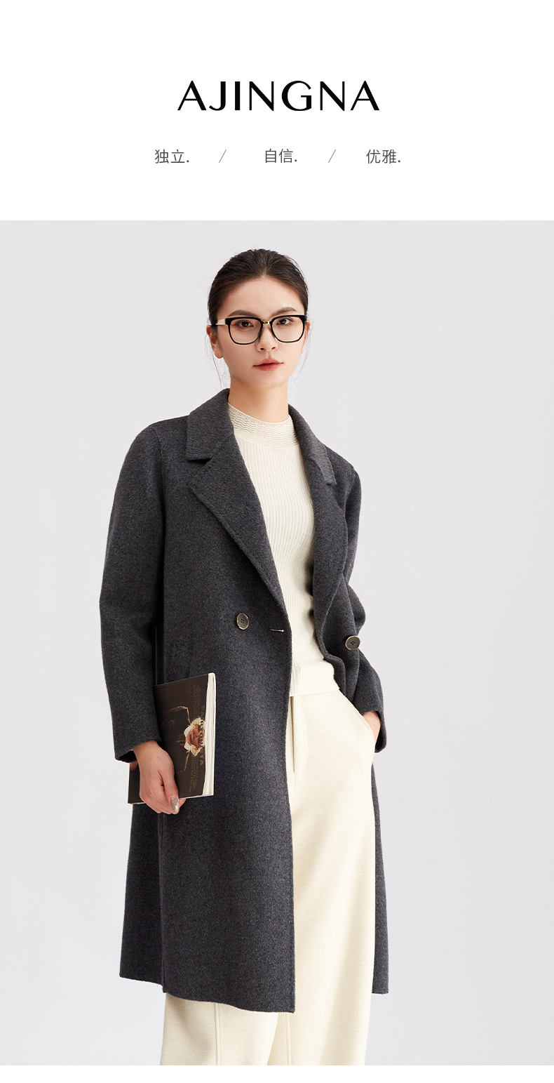【商场同款】阿菁娜冬季新款长款双排扣羊毛呢子大衣西装领通勤休闲两穿A30D511086
