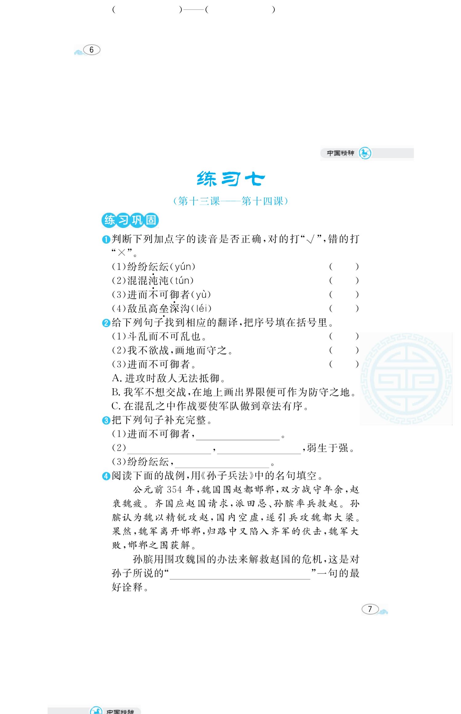 中国精神 六年级下册 6年级下册fb中华优秀传统文化教育读本