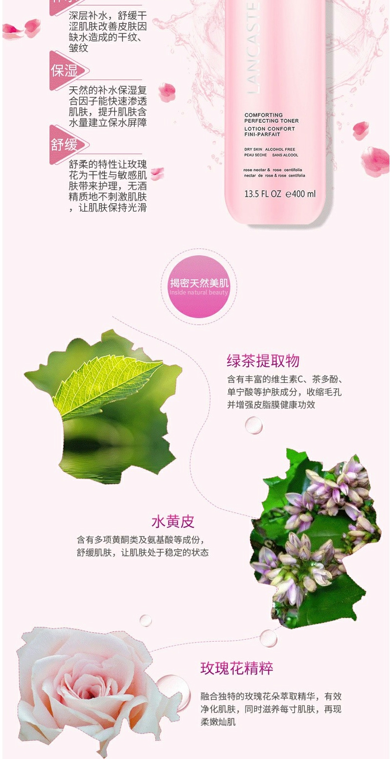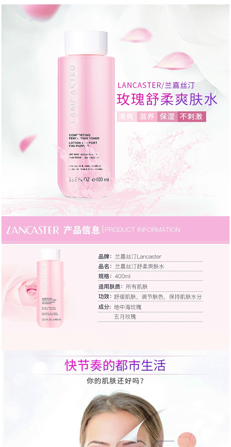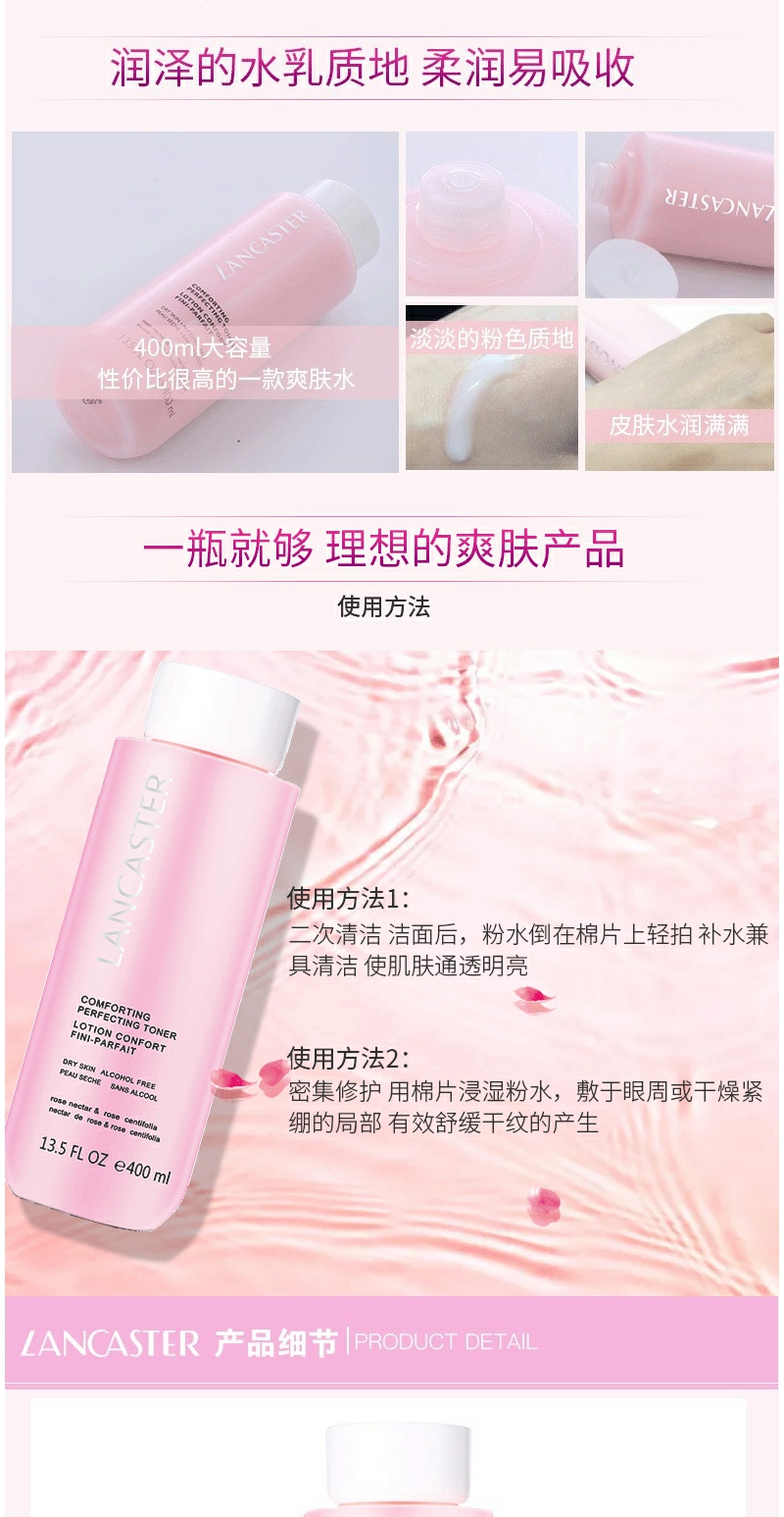 【YZ】LANCASTER兰嘉丝汀粉水舒柔爽肤水玫瑰水补水保湿舒缓400ml