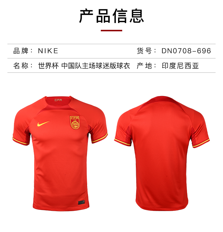 NIKE/耐克 AS CHN M NK DF STAD JSY SS HM 2022世界杯 中国队主场球衣 球迷版