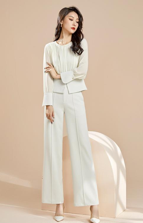 百姿 直筒阔腿裤2023秋季新款西装裤垂感宽松裤子高腰长裤92002