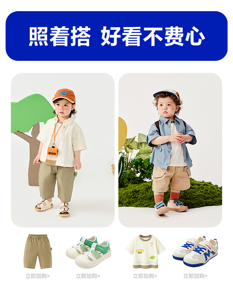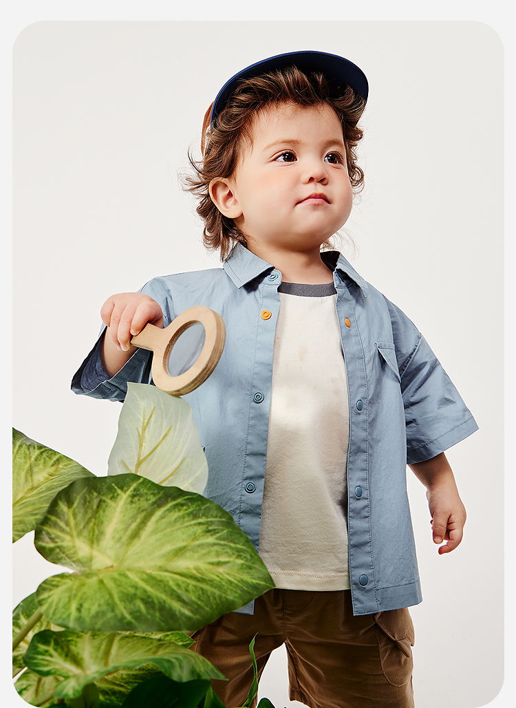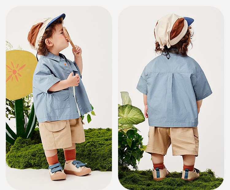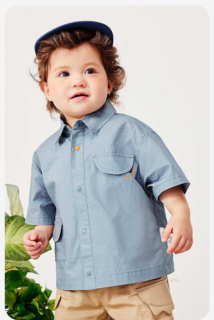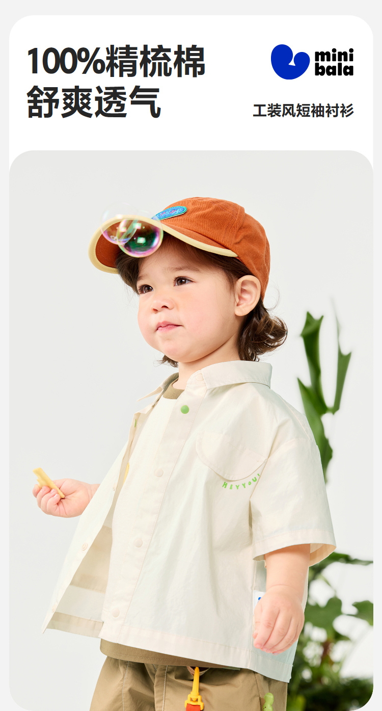 【纯棉】迷你巴拉男童工装风短袖衬衫夏季新款宝宝轻薄上衣