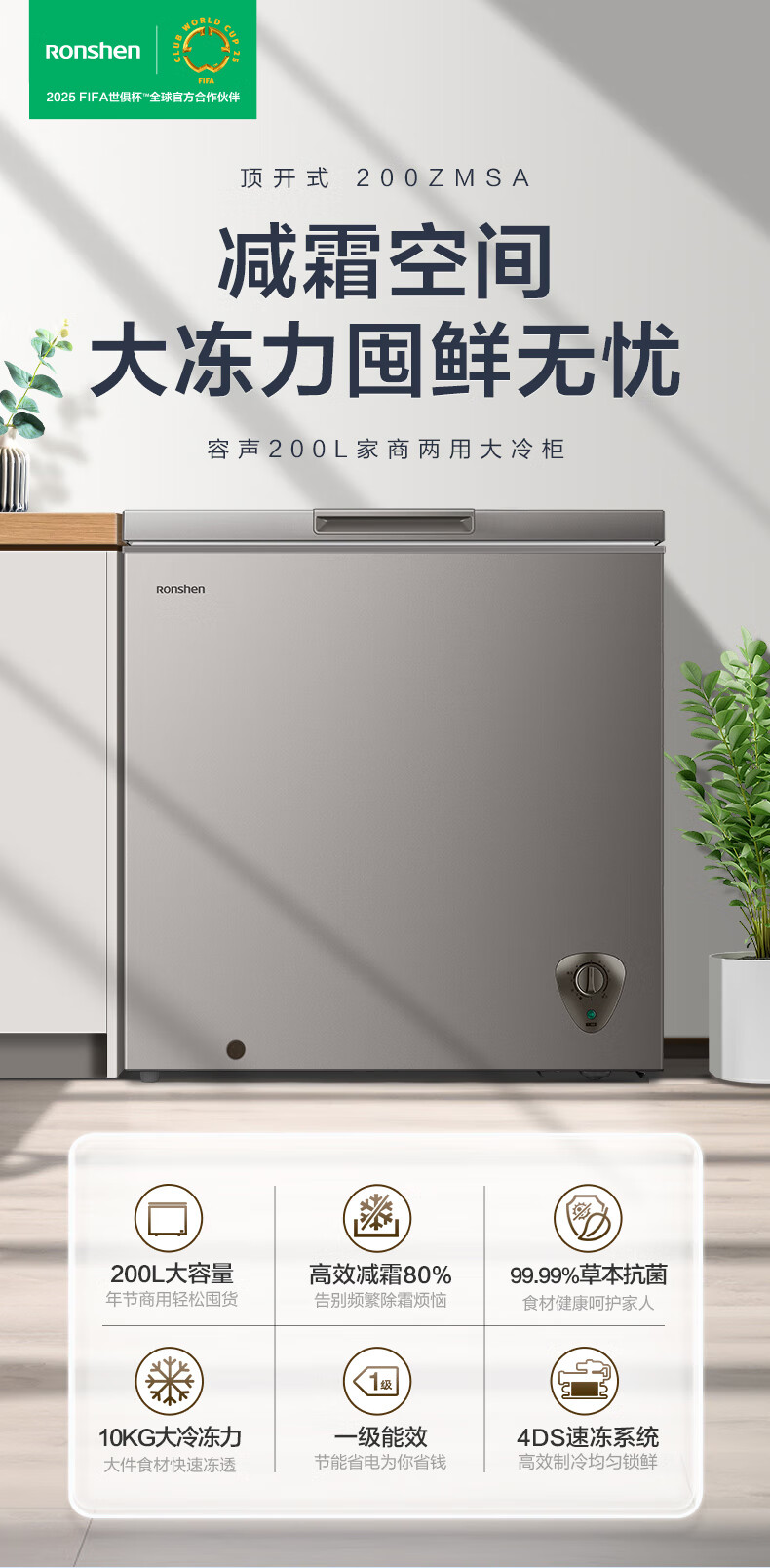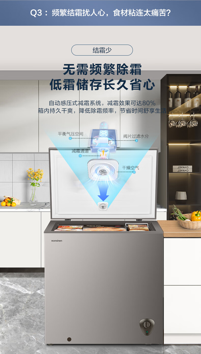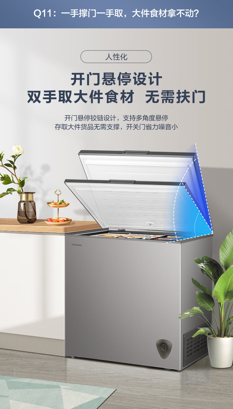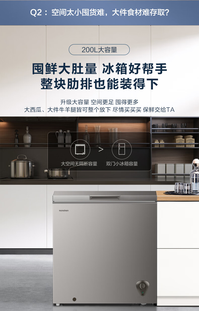 容声(Ronshen)200升 减霜80%冰柜 家用一级能效 冷藏冷冻 囤货 顶开门冷柜BD/BC-200ZMSA