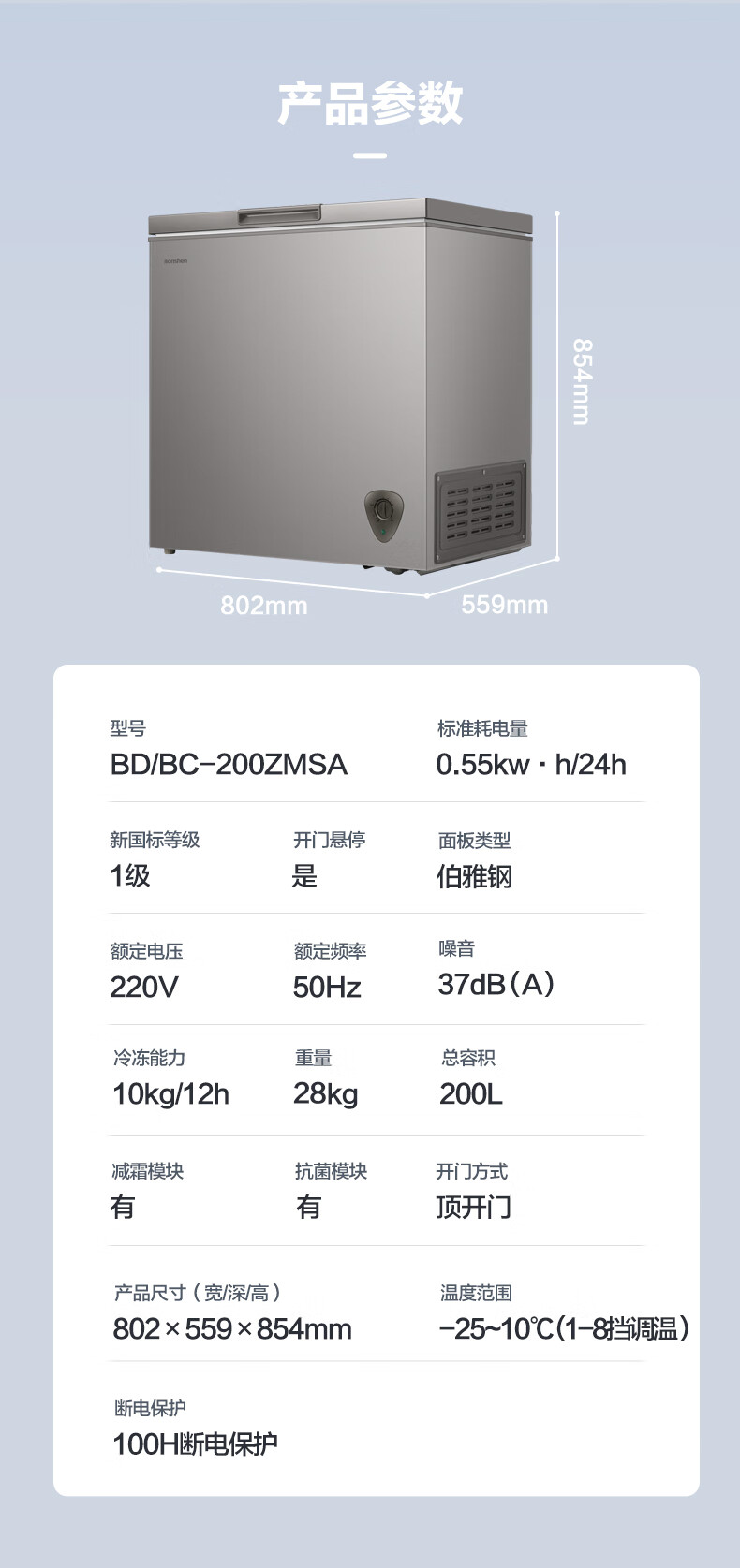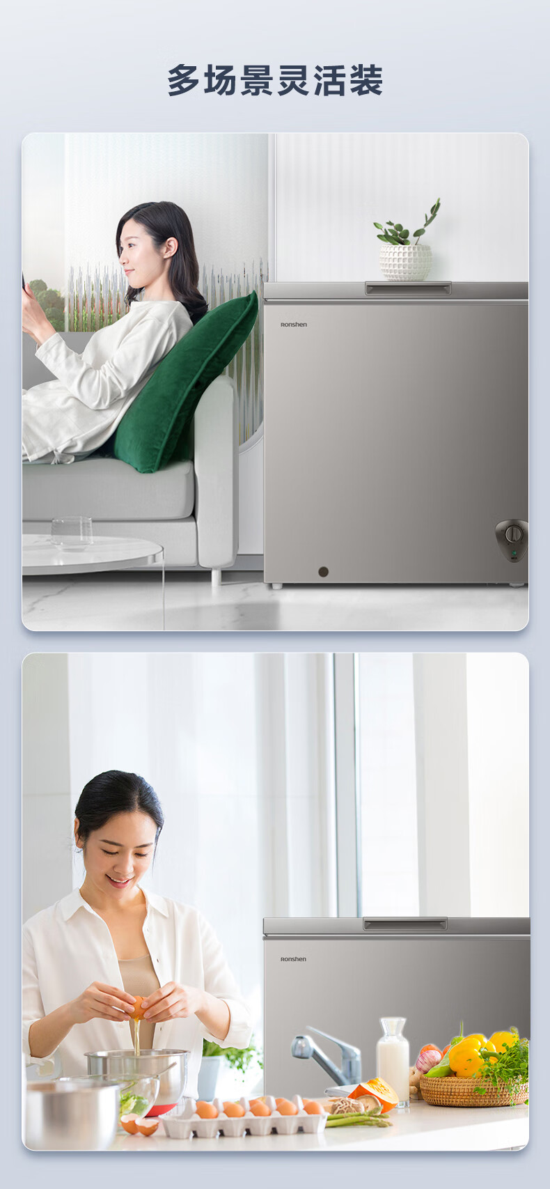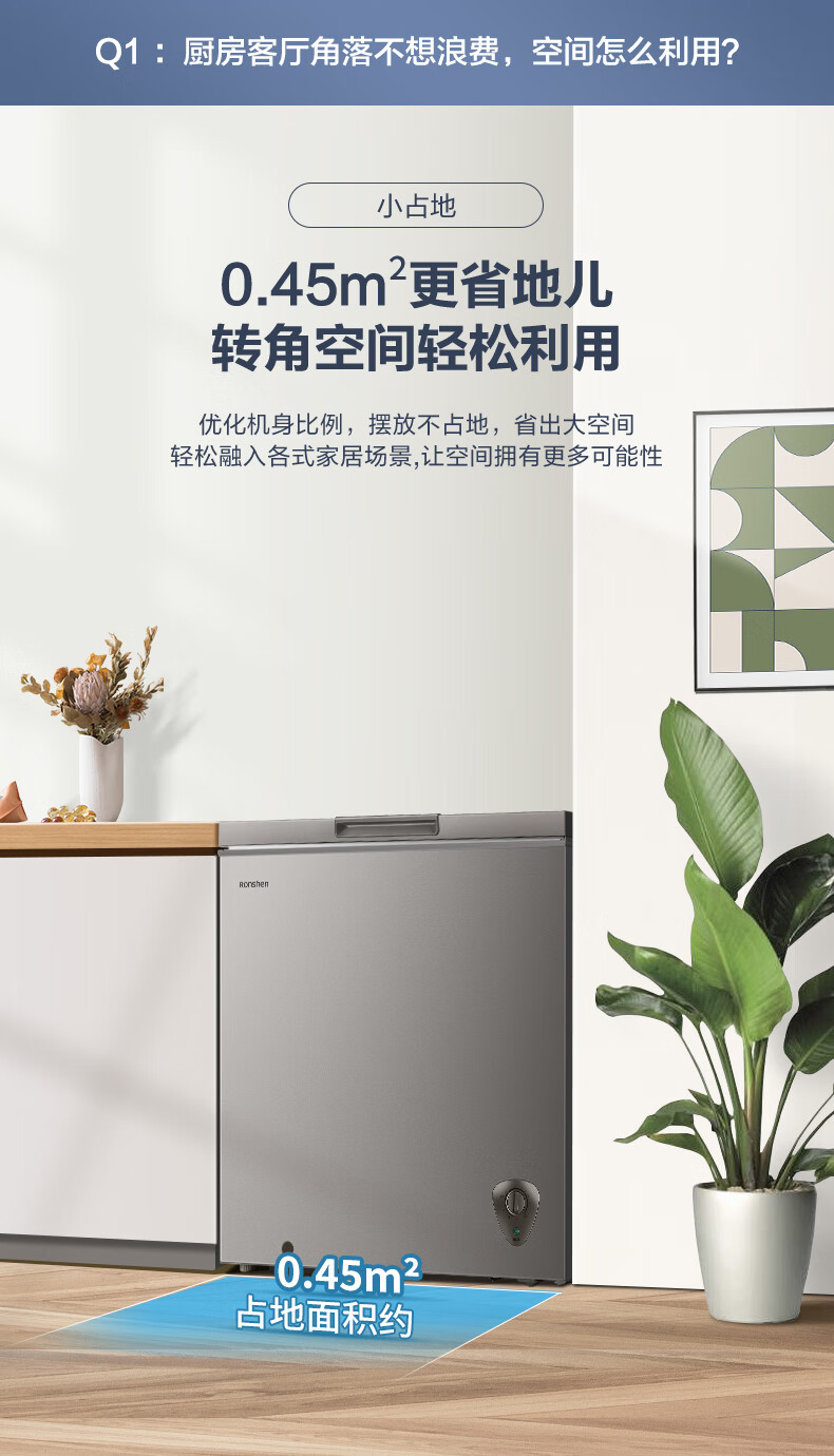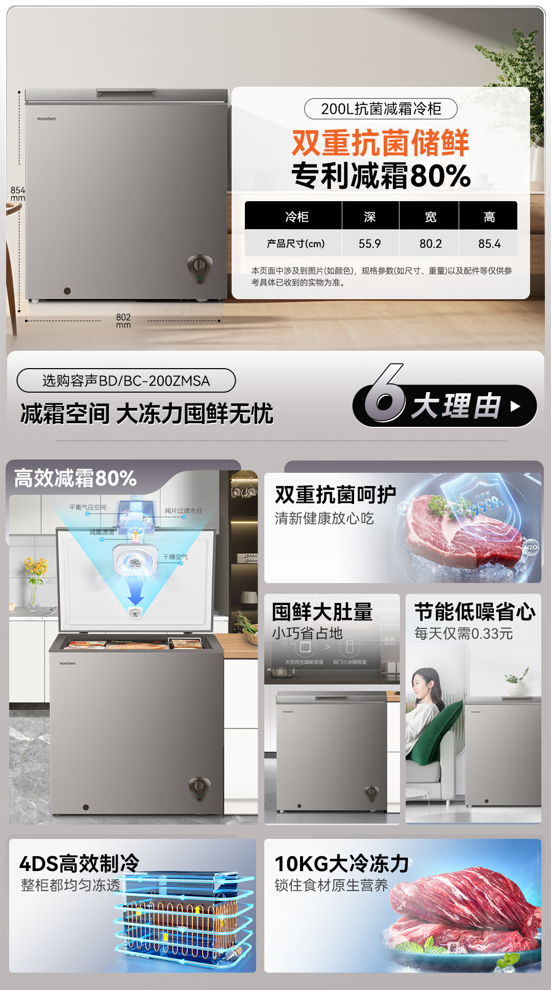 容声(Ronshen)200升 减霜80%冰柜 家用一级能效 冷藏冷冻 囤货 顶开门冷柜BD/BC-200ZMSA