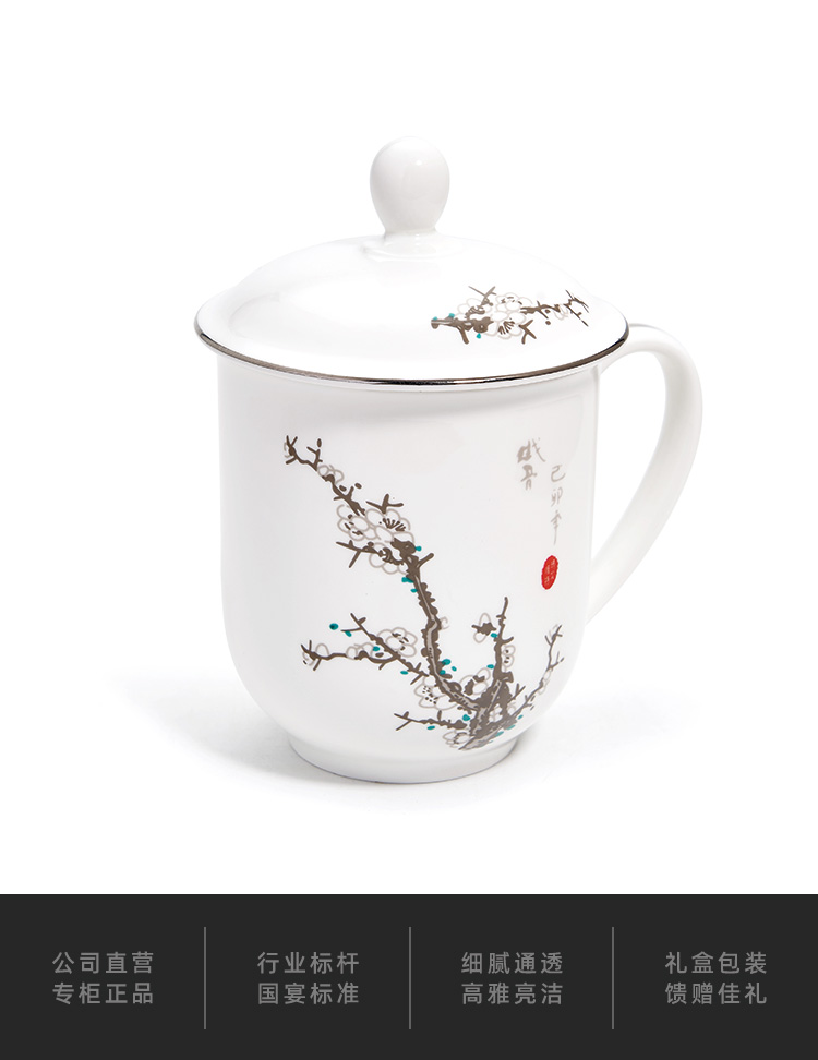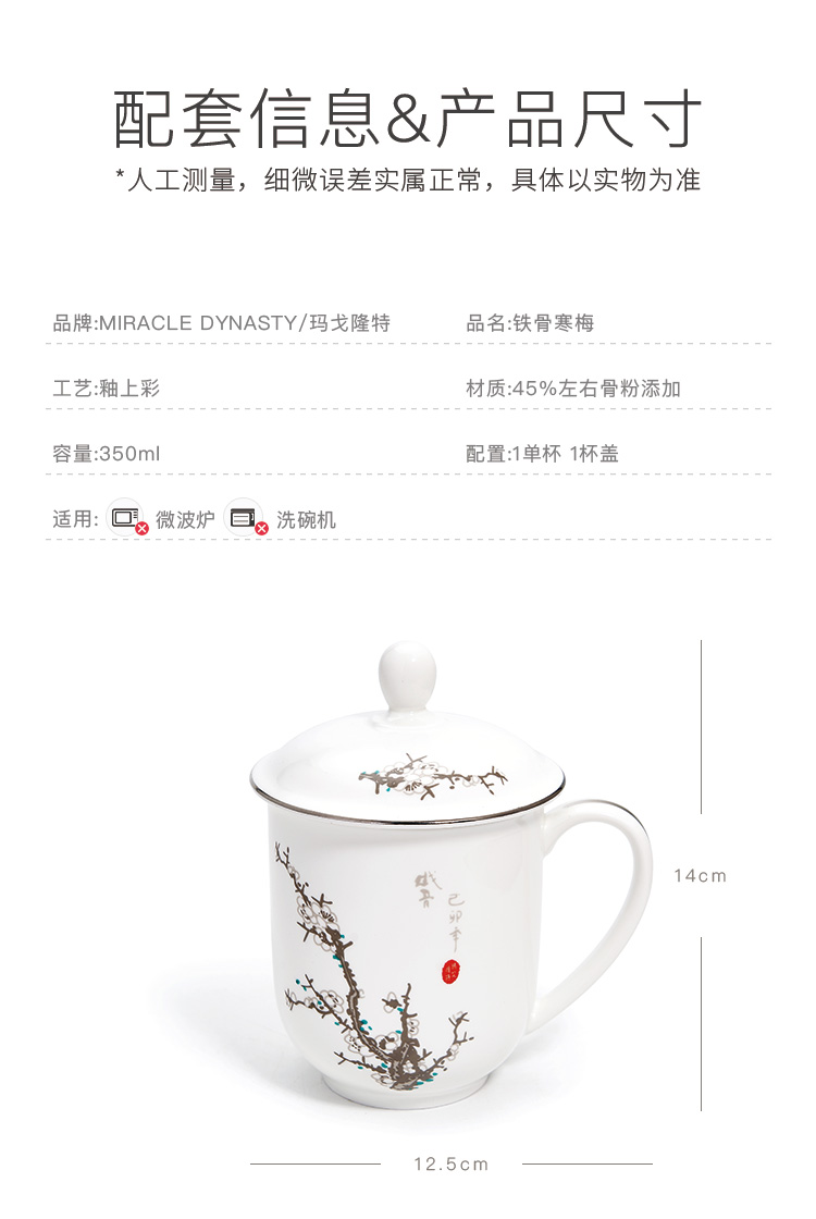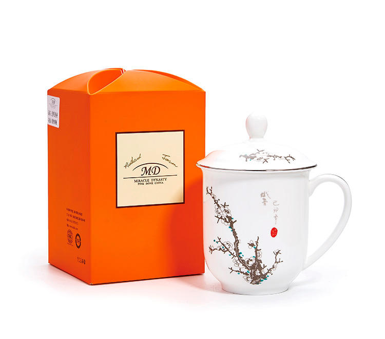 【玛戈隆特】B7F 骨瓷茶杯会议茶杯会务杯 会议室家用旅行办公中国风 礼盒礼品包装 铁骨寒梅会务杯 铁骨寒梅