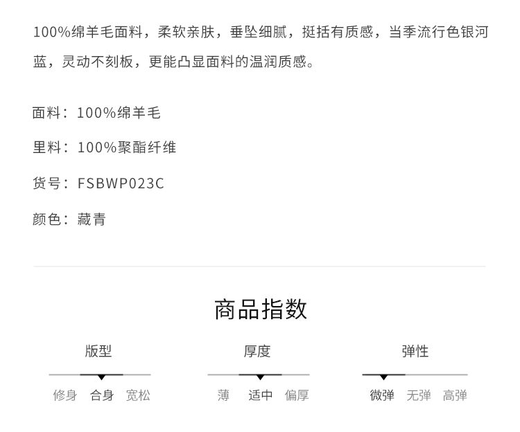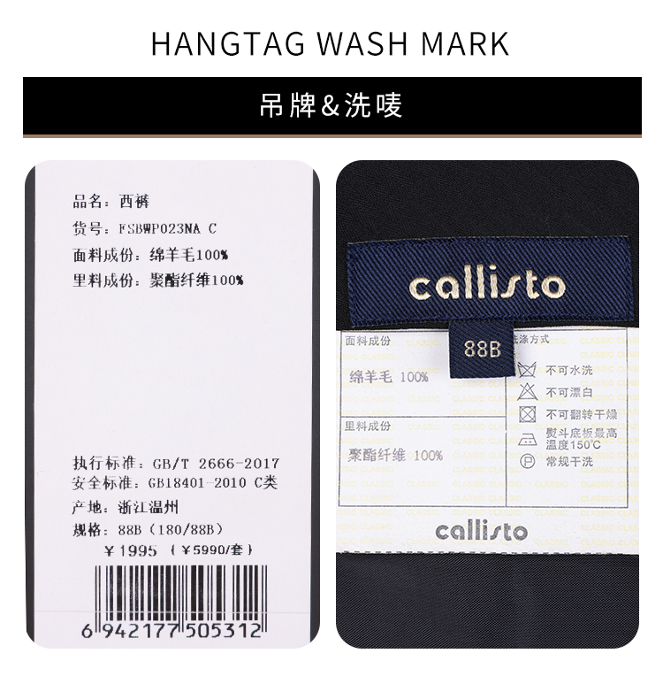 callisto藏青全绵羊毛西裤 FSBWP023C NA