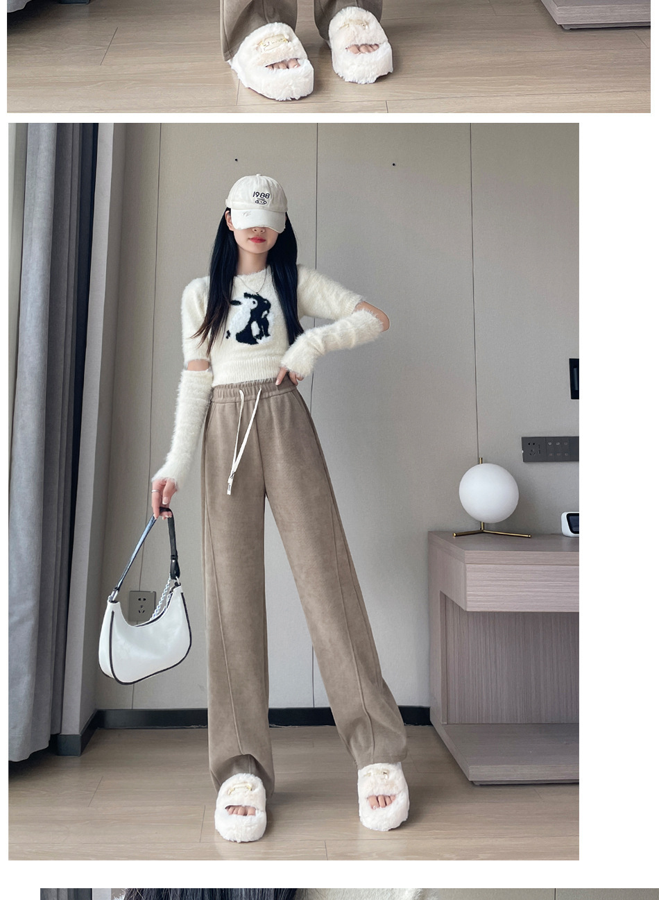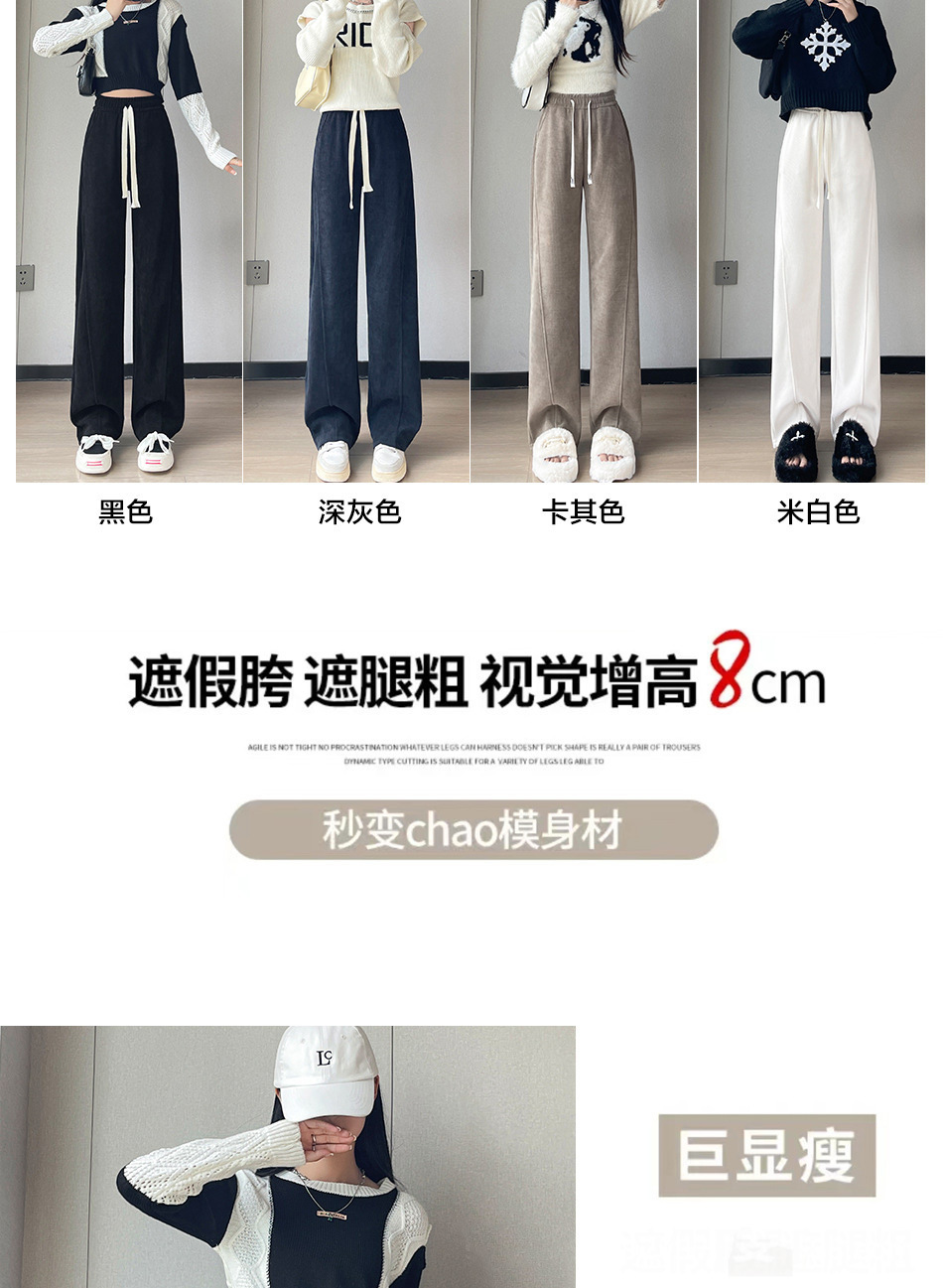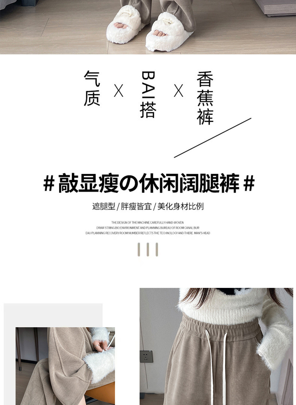 秋季阔腿裤休闲裤、高腰显瘦、宽松垂感托地裤子-36