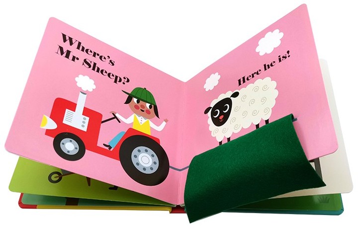五幅精美的插图展示了一群友好的野生动物躲在明亮的毡帽后面。最后一页还有一面镜子!一本适合与小朋友分享的好书。Nosy Crow出版的幼幼翻书书,贴心设计,翻页面积大,宝宝从哪个角度都可以翻,选用不织布材质,不织布比起纸张更有厚度,指头有施力点,让孩子不费力地一页一页翻下去。书末,更有惊奇设计---可爱的你在哪呢?翻开不织布,是镜子,宝宝在镜子里呀!