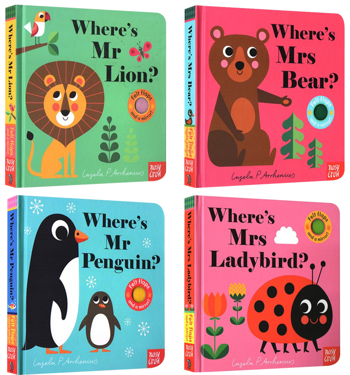 亲亲小手翻翻书 全4册 英文原版 Where's Mr Mrs Lion/Bear/Penguin/Ladybird 纸板触摸翻翻书 幼儿感官发展 早教认知绘本