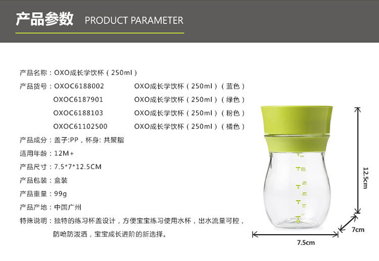 OXOtot奥秀成长学饮杯250ML(绿色)OXOC6187901