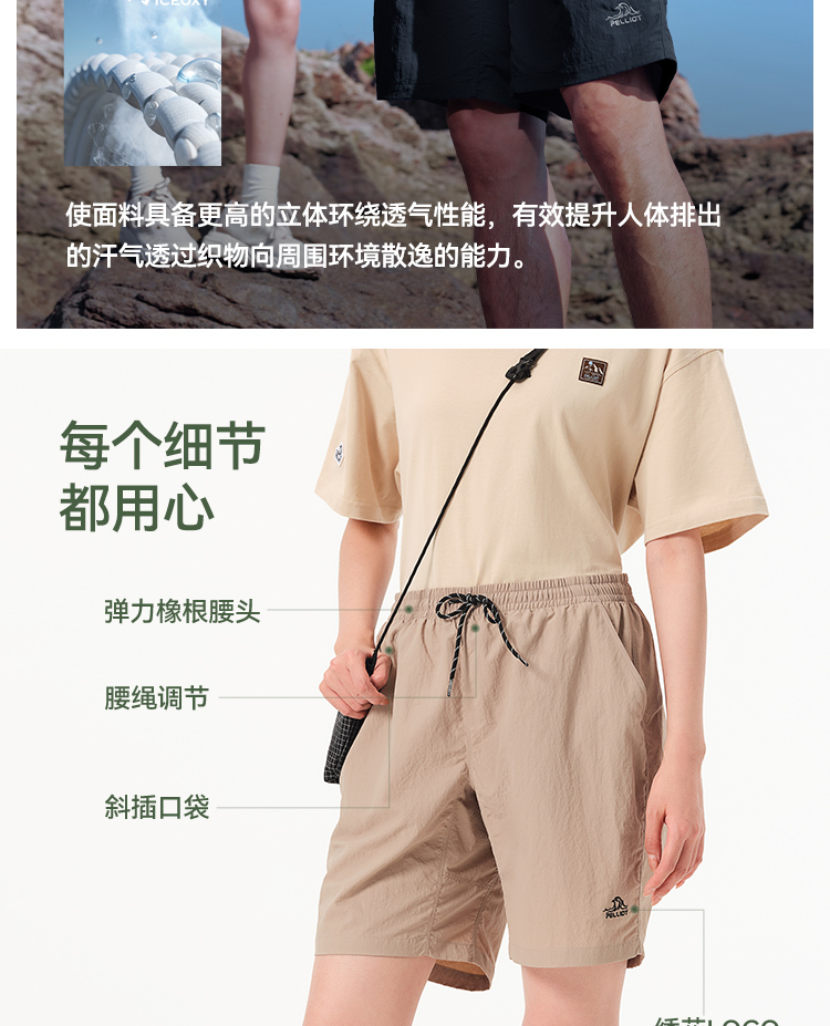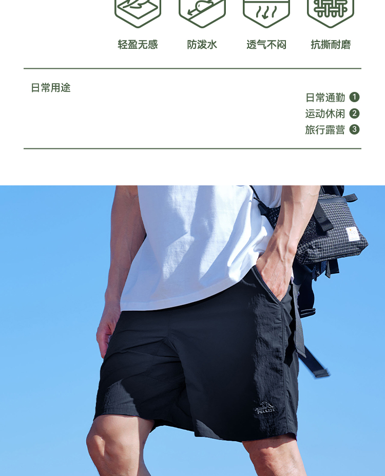 【山系】伯希和户外攀岩短裤男夏季新款透气休闲运动短裤女五分裤