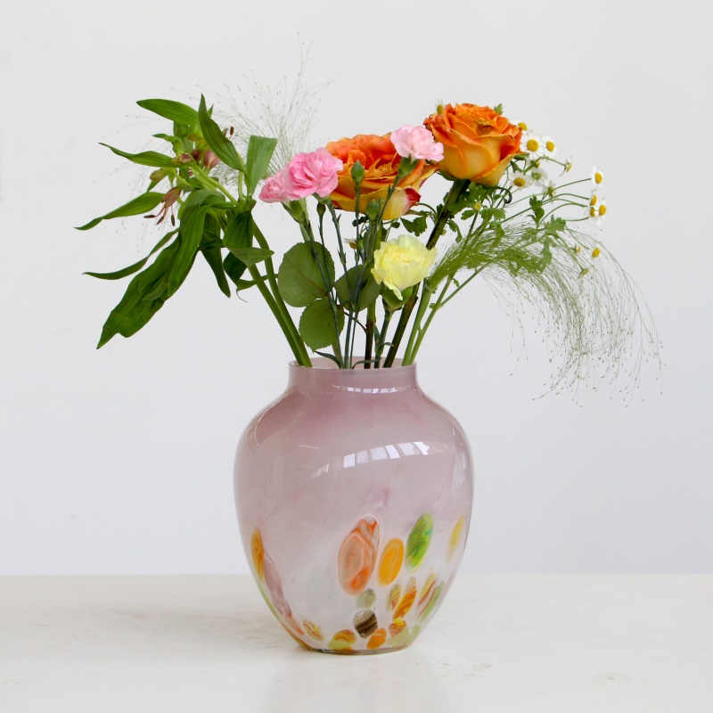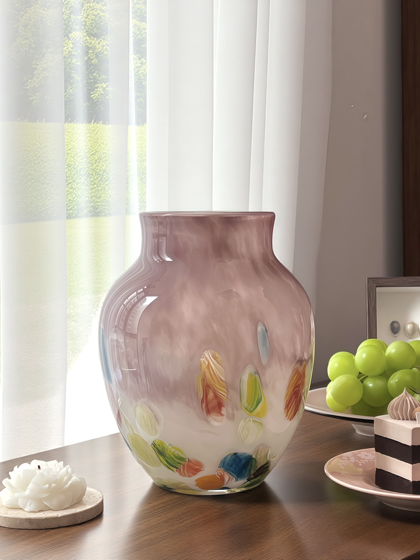 中古风彩色渐变波点玻璃花瓶法式高级感玄关客厅艺术花器插花摆件