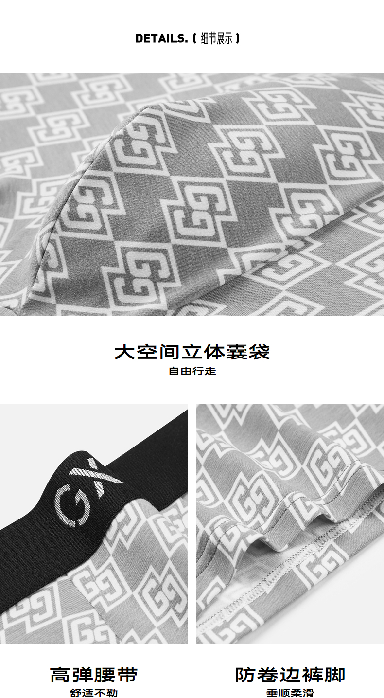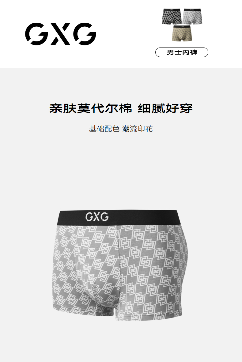 GXG男士内裤【单条装】莫代尔棉质内裤男透气抑菌印花短裤内裤潮