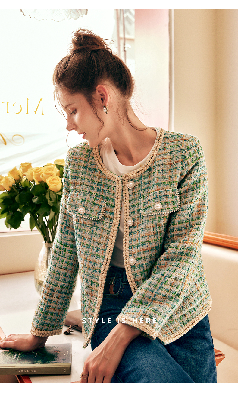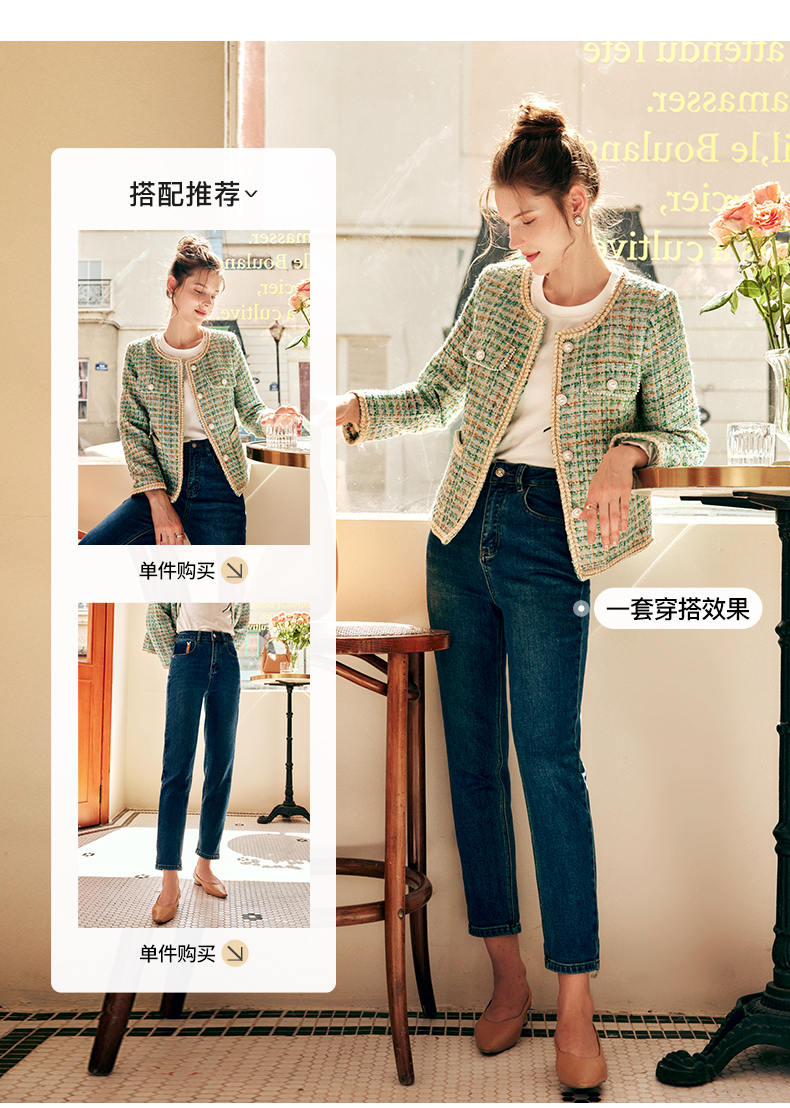 OLrain欧芮儿法式小香风短外套女秋季2022新款气质名媛粗花呢大衣