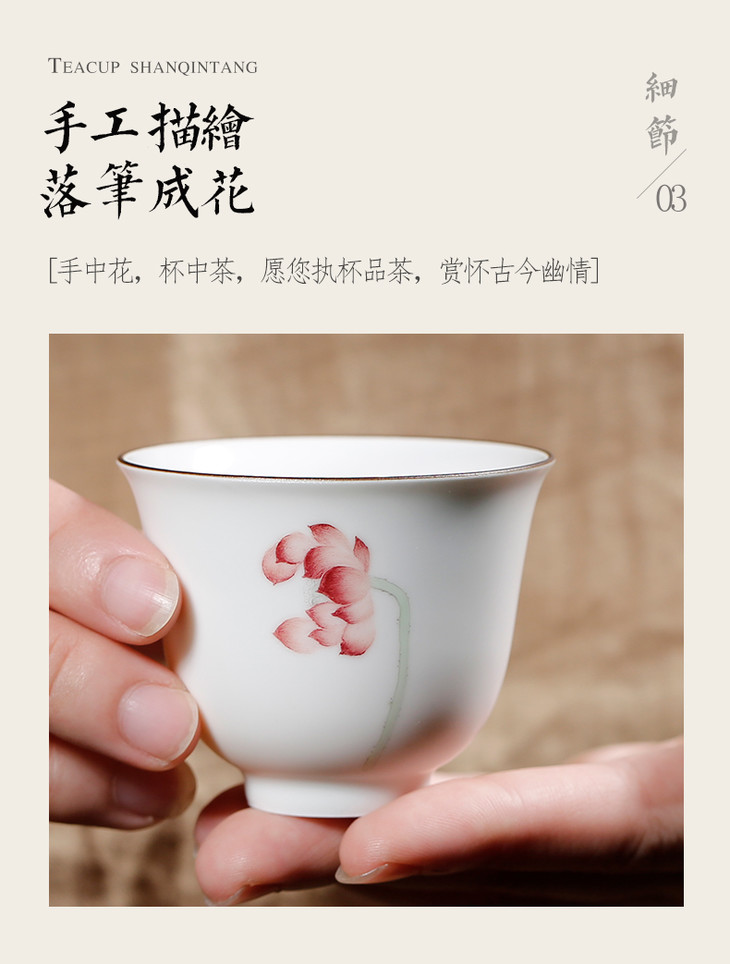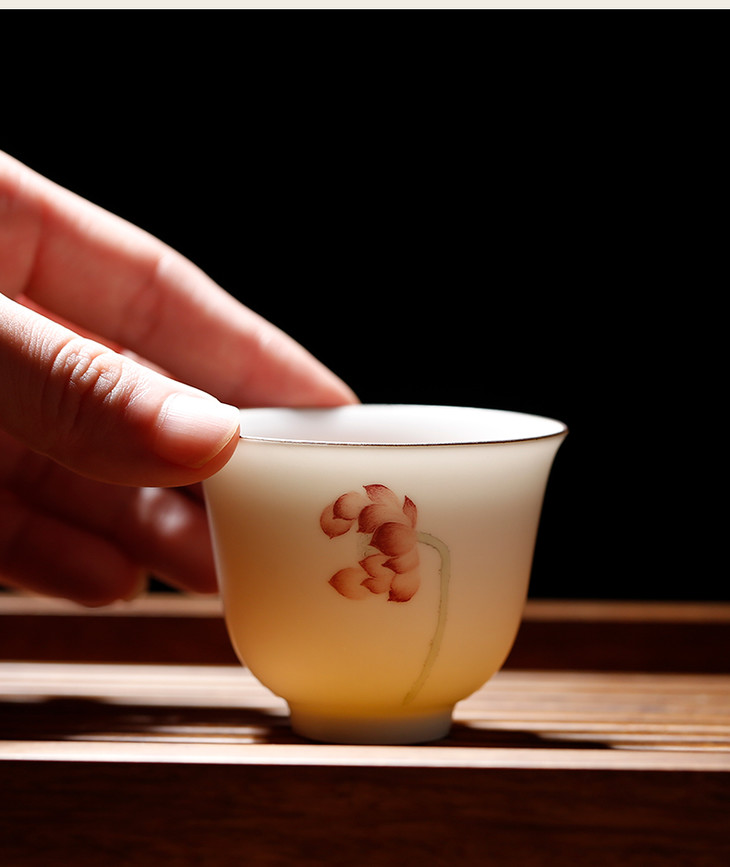 陶瓷功夫茶具.定窑白手绘单莲小茶杯