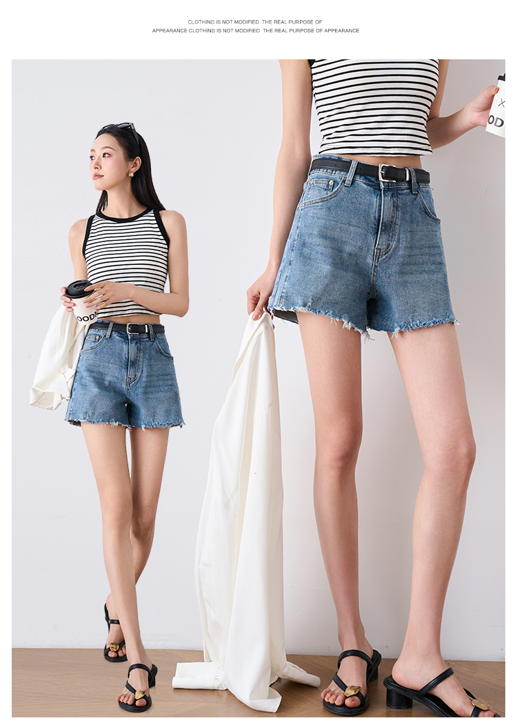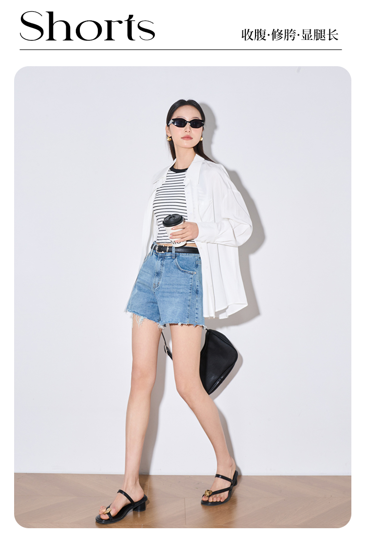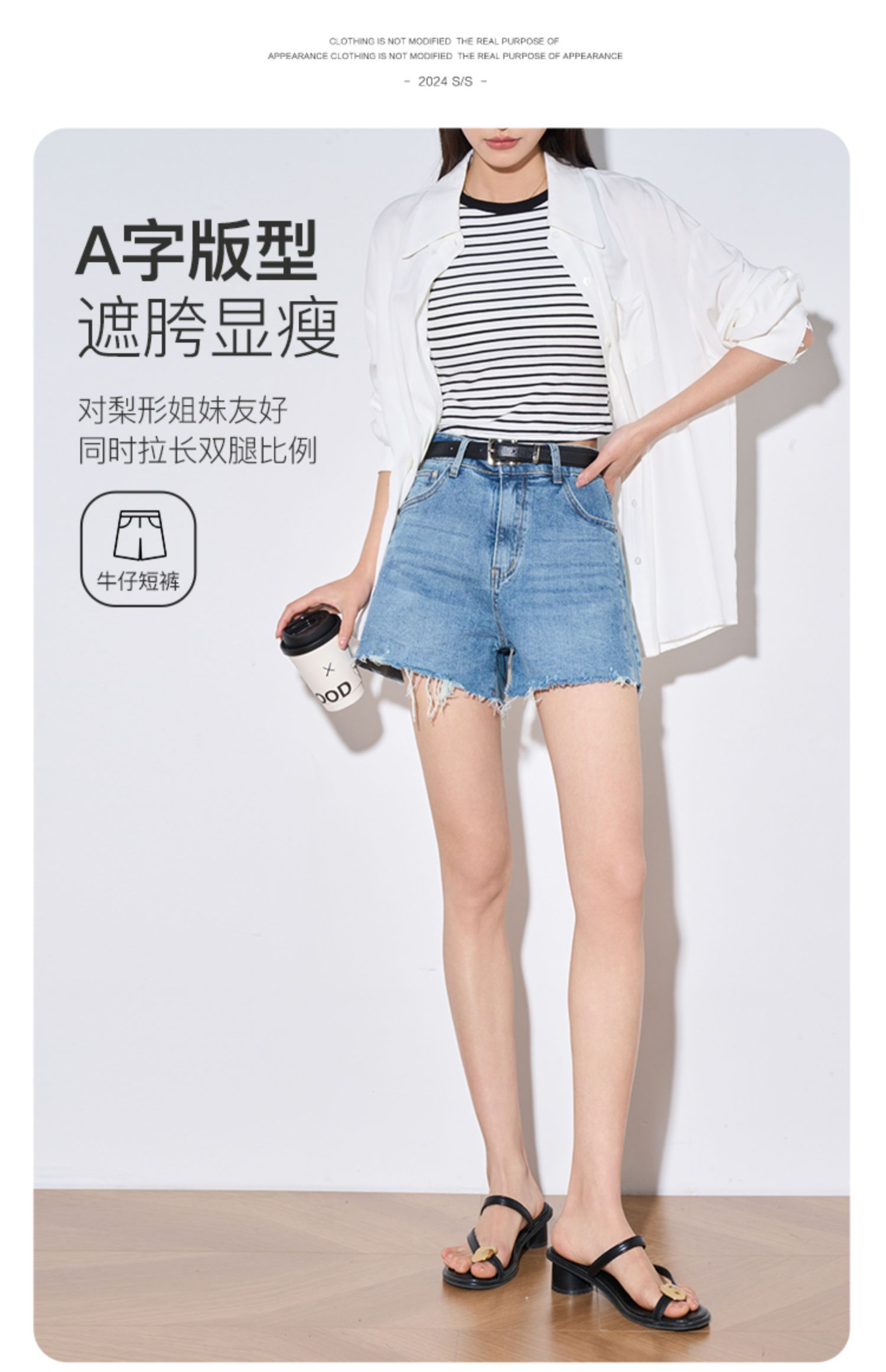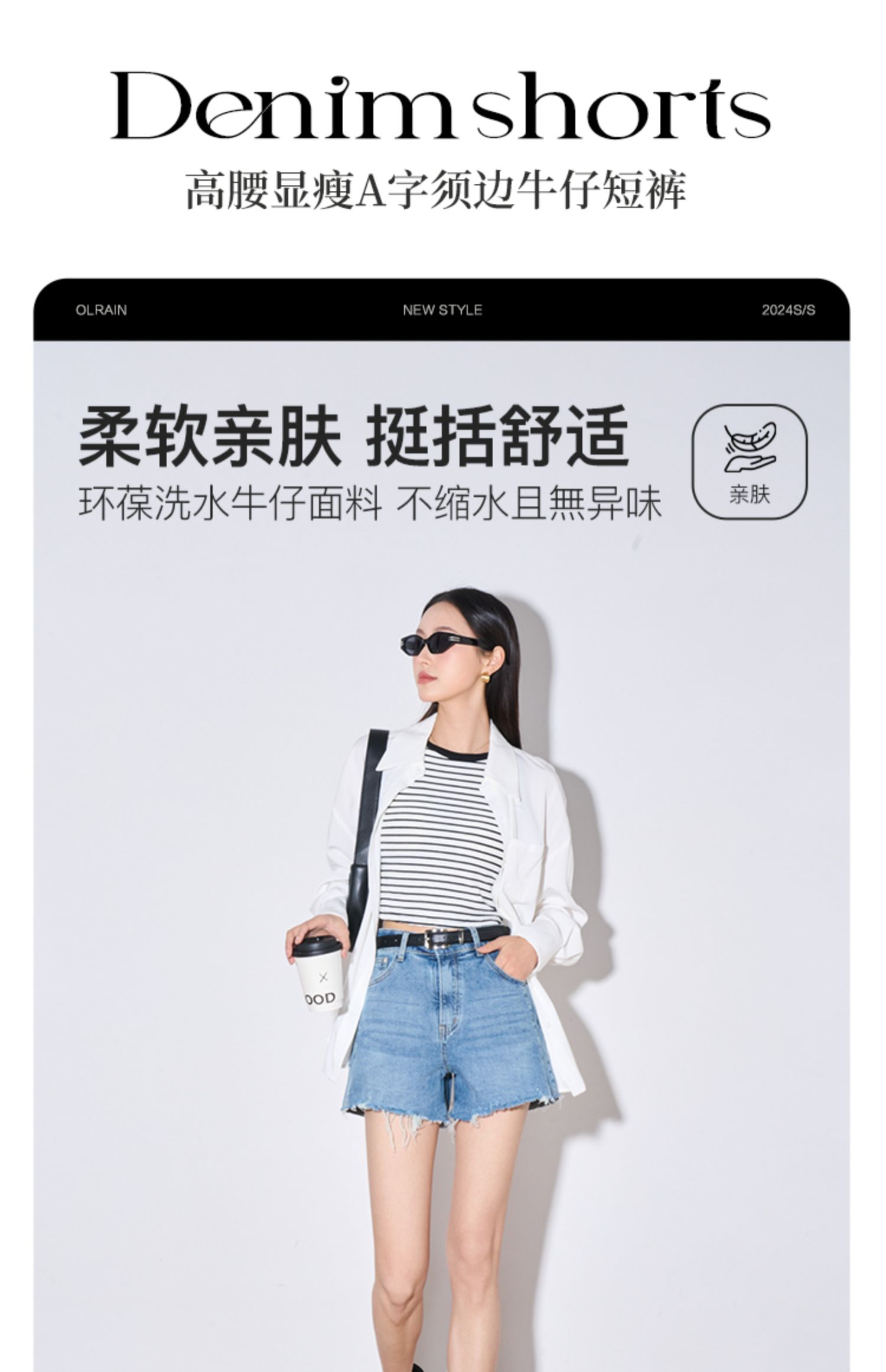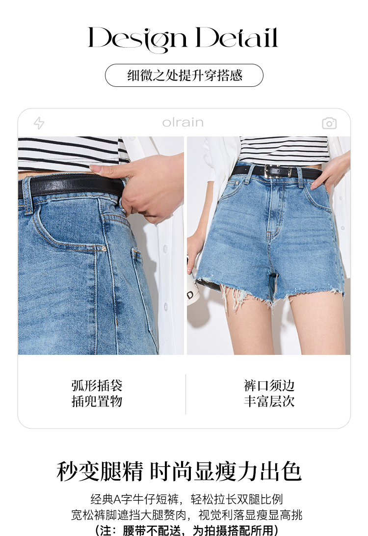 OLrain欧芮儿高腰牛仔裤女夏季2024年新款时尚休闲毛边A字短裤